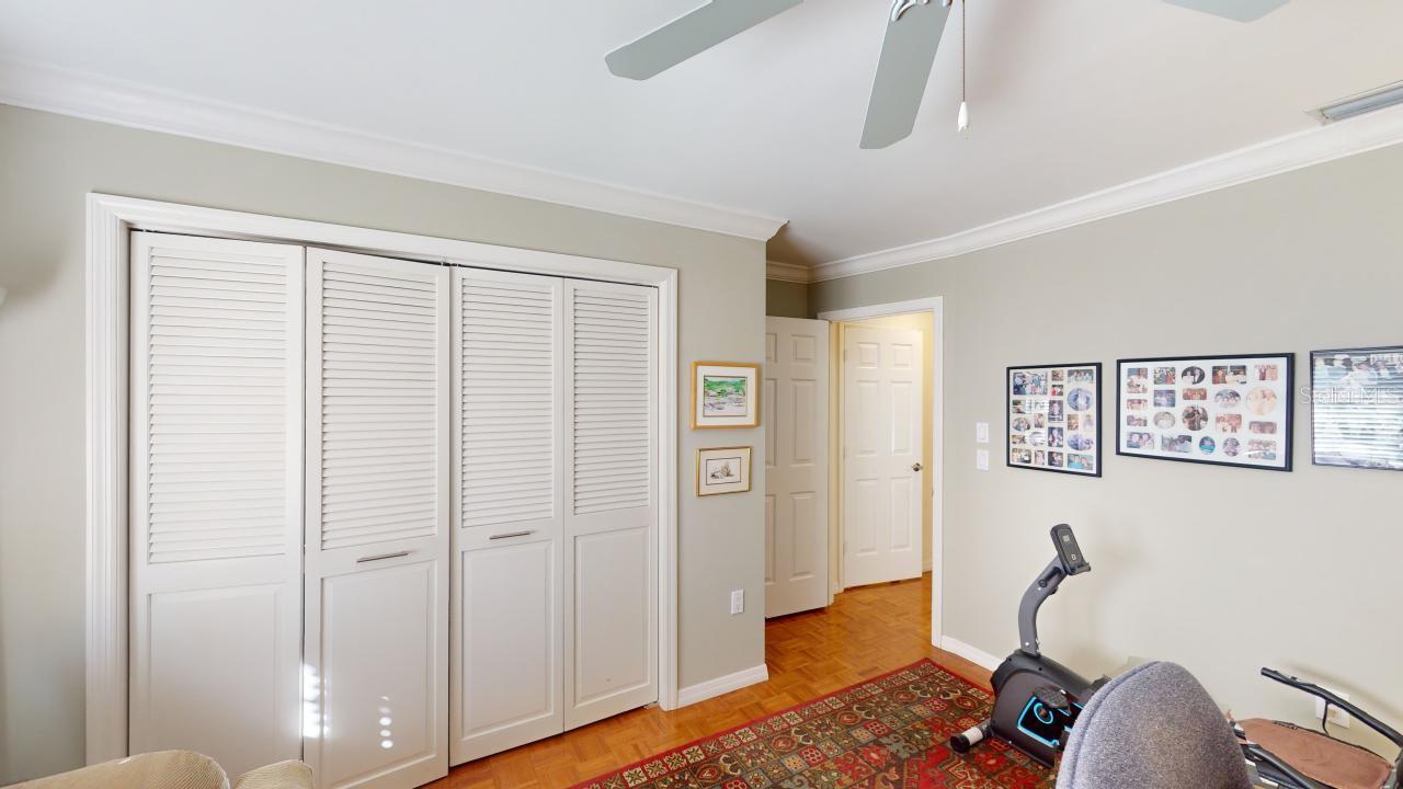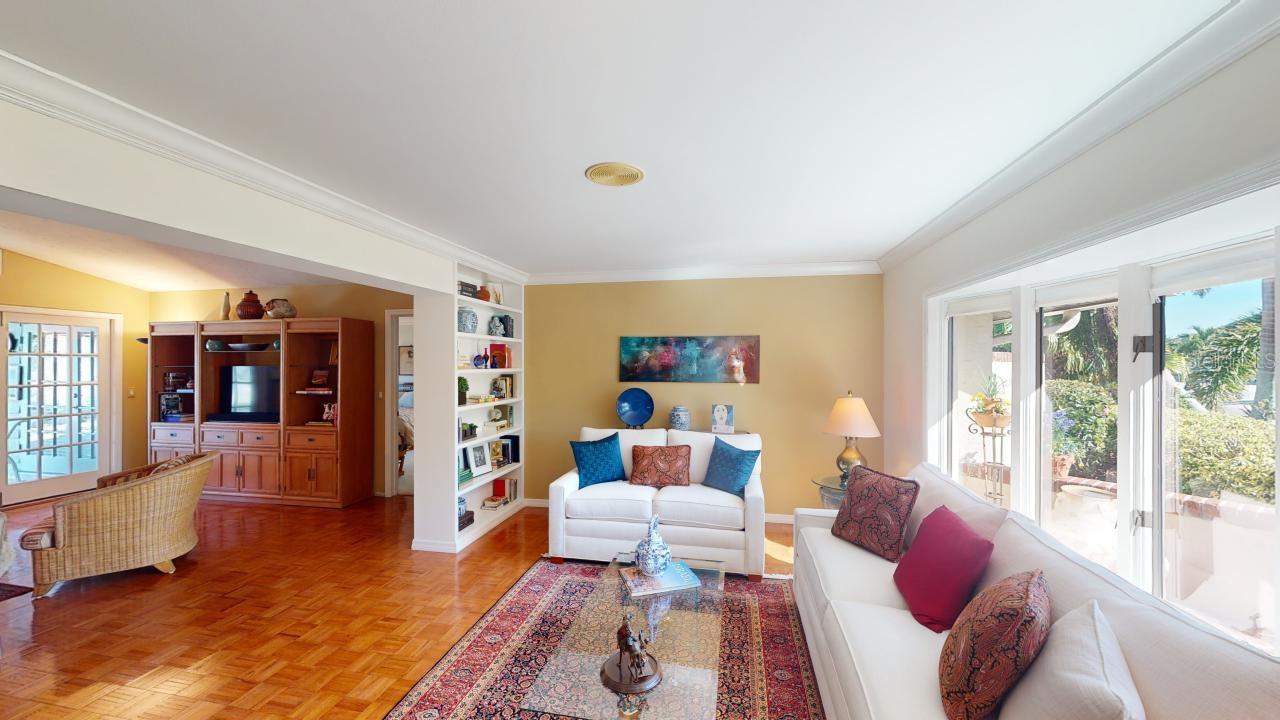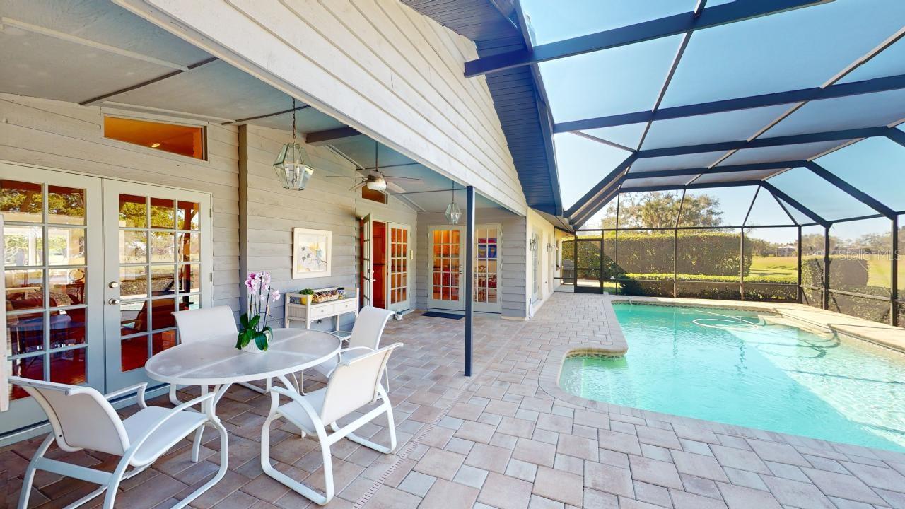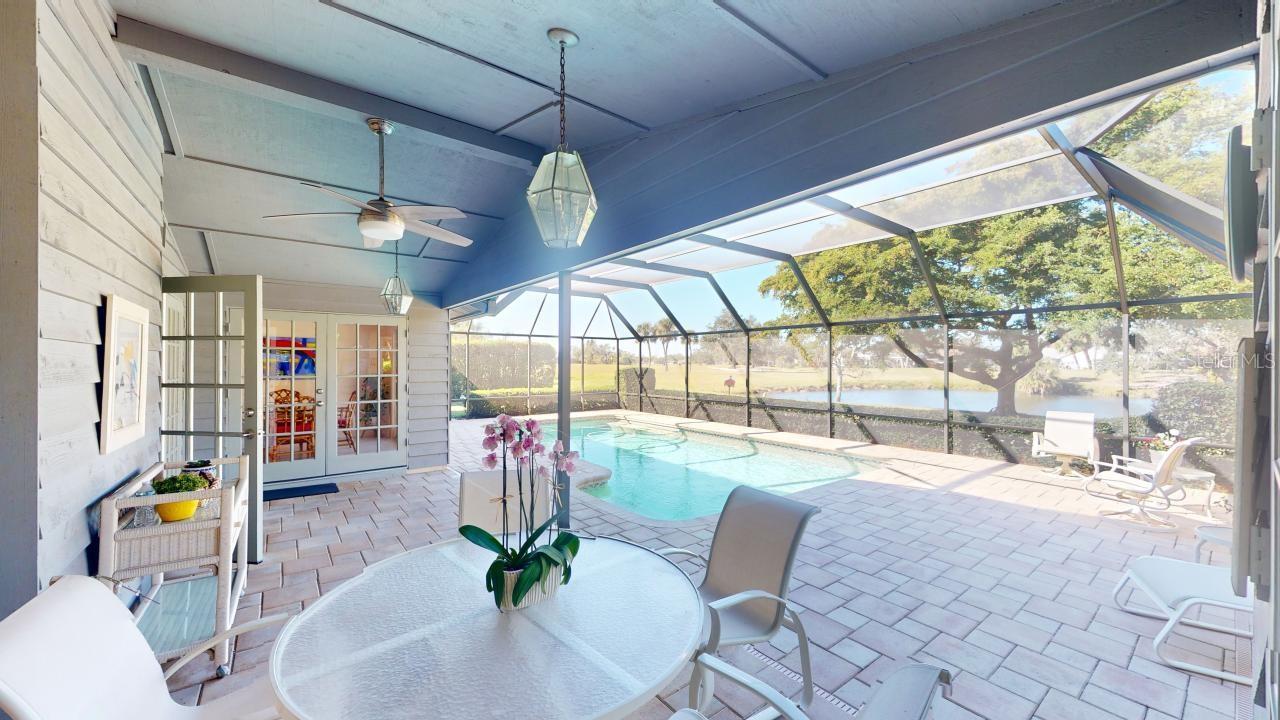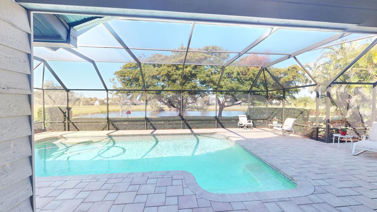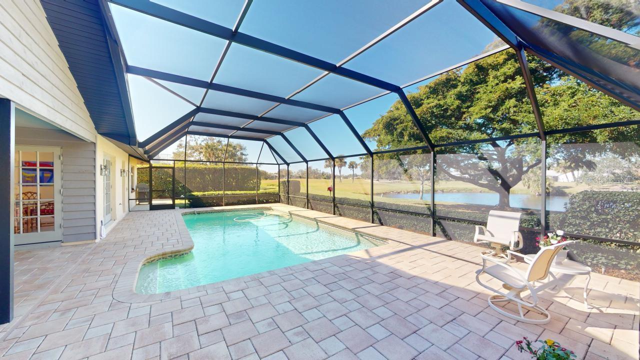 Under contract-accepting backup offers. NEW ROOF, Parquet floors, carpet, 2 car garage, In-ground pool, screened enclosure, golf course views, gated, Split bedroom plan, partial vaulted ceilings, 4 bedrooms, 2.5 baths, dining room, eat in kitchen, full living room and family room, Plenty of light, windows and open spaces. This home has been lovingly cared for and the NEW ROOF is being installed as we speak. Custom Murphy Bed.