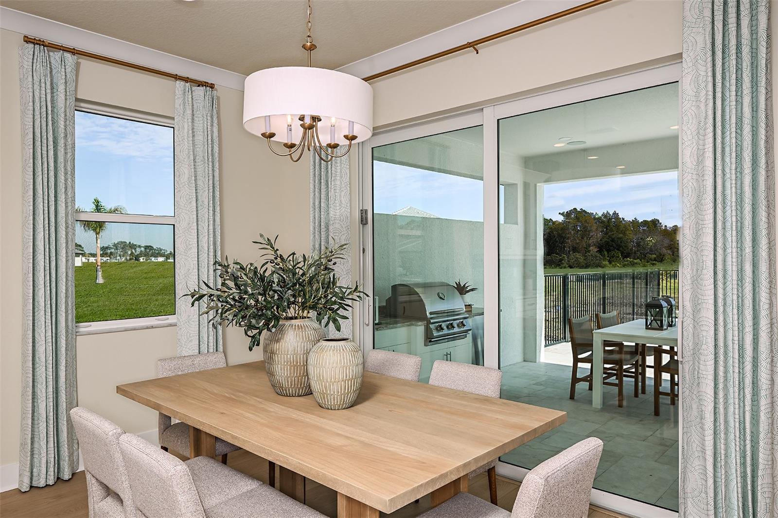 MODEL LEASEBACK OPPORTUNITY! Welcome home to the Calusa model home at Cassata Lakes with a pond view! With 4 bedrooms and 3 bathrooms, this POOL home is truly a sight to behold. Come take a look inside! This beautifully designed single-story home offers 2,195 square feet of well-appointed living space, featuring 4 bedrooms, 3 full bathrooms, and a 3-car garage with a 4-foot extension, providing ample storage and parking options. Perfectly blending style and functionality, this home is ideal for families and entertainers alike. As you enter, the inviting foyer greets you with an elegant tray ceiling, setting the tone for the rest of the home. The open-concept design seamlessly connects the kitchen, caf, and great room, creating a spacious and cohesive living area. The kitchen features modern appliances, ample cabinetry, and a large center island with quartz countertops that's perfect for meal preparation or casual dining. The owner's suite offers a luxurious retreat with a tray ceiling, a spacious walk-in closet, and a deluxe bathroom complete with a soaking tub, a separate walk-in shower, and dual vanities. The additional bedrooms are generously sized and situated near two full bathrooms, providing comfort and convenience for family or guests. Step outside to the expansive extended 27' x 14' lanai, an outdoor oasis featuring a built-in outdoor kitchen and a pool, perfect for relaxation and entertaining. Whether hosting a barbecue or enjoying a quiet evening swim, this space enhances your outdoor living experience. With thoughtful design and luxurious touches, this home offers everything you need for modern living.