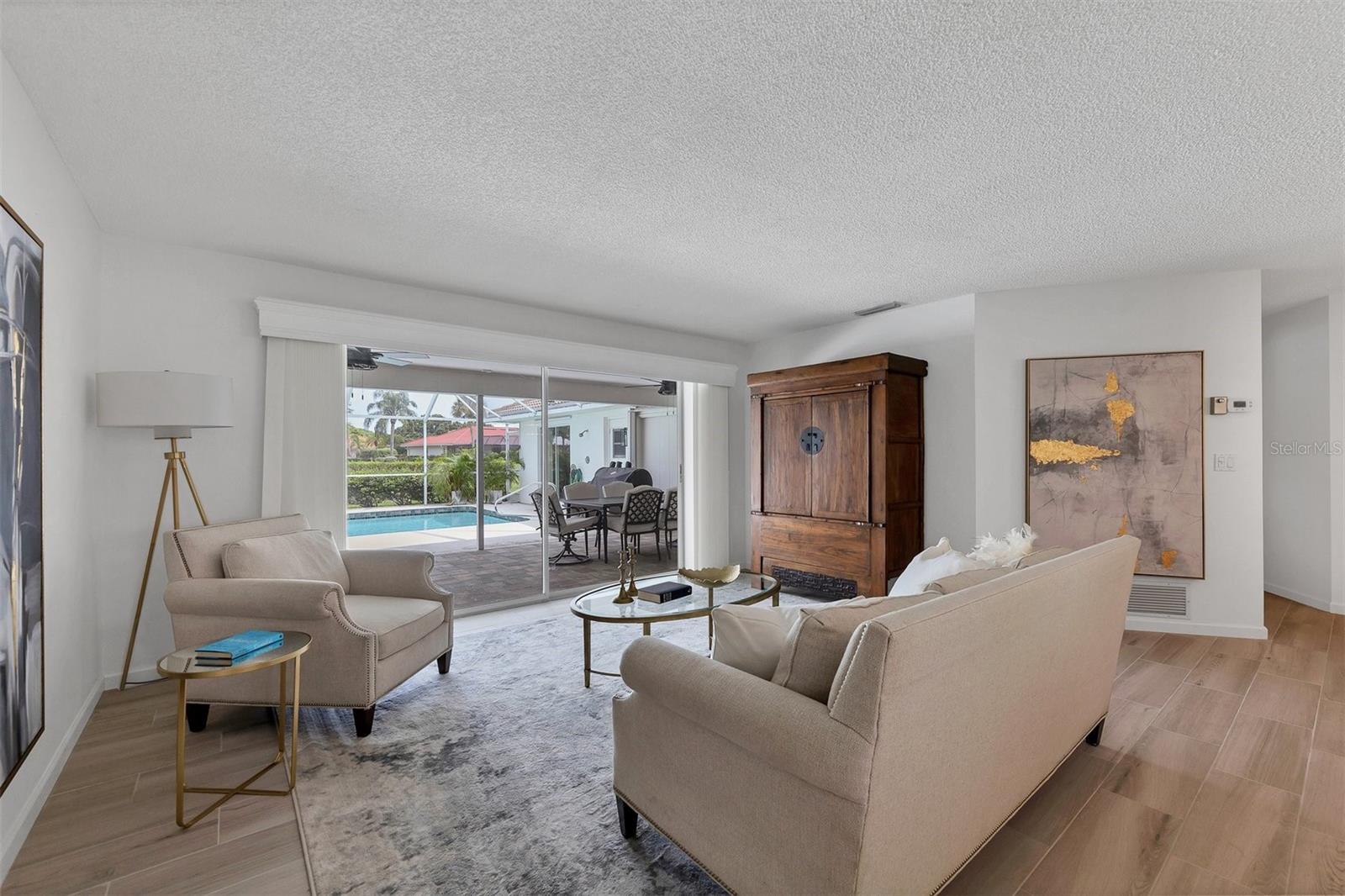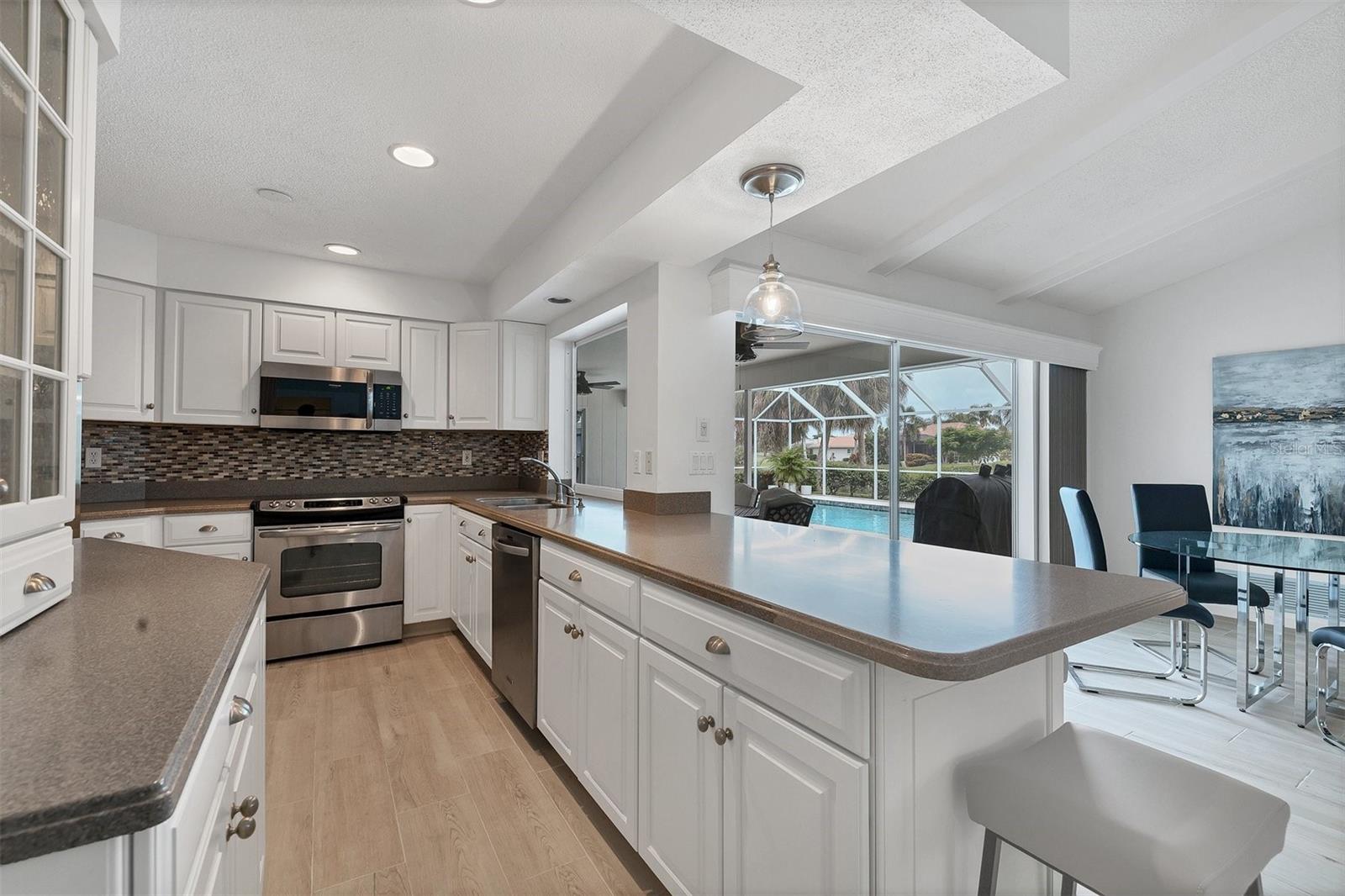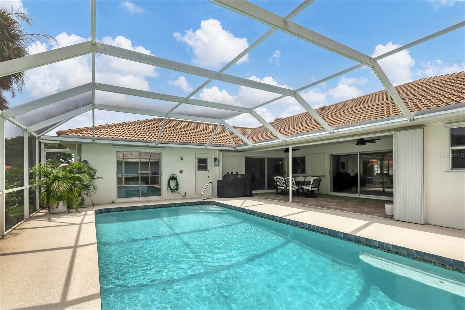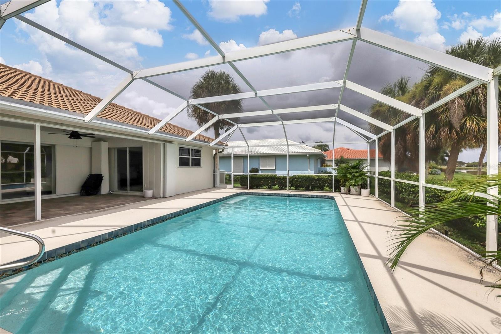 Updated, Split bedroom Floor Plan in the gated community of Waterford! 3 Bedrooms, 2 Bath Pool home. Open floor plan with large Family room with catheral ceilings overlooking the pool and water. Corner Lot. New Flooring thru-out, updated Baths, Stainless Steel Appliances, open kithen with breakfast bar and breakfast nook. Living room and Dining room. Walk in closets in Bedrooms. Master bedroom has a bonus room for in home office or reading room. Roof was replace in 2015, Pool resurfaced in 2017.Be part of this great community where the golf membership is voluntary. The waterford communtiy amenities include a heated pool and spa, clubhouse,fitness room and tennis courts.