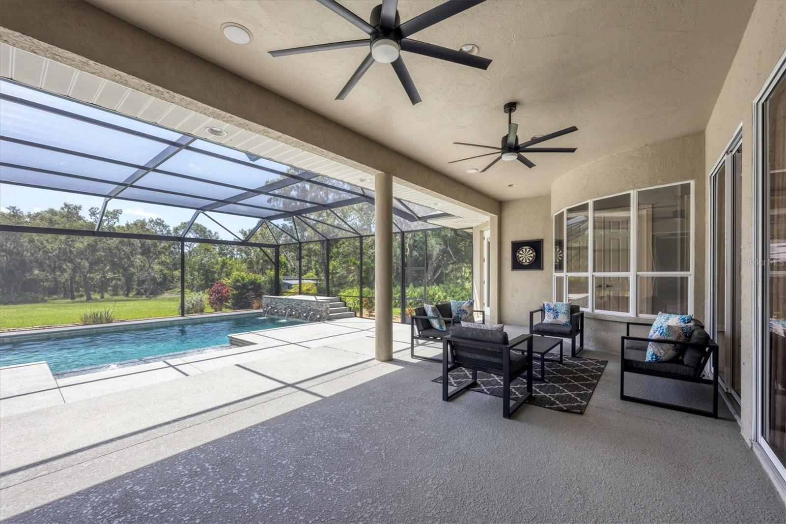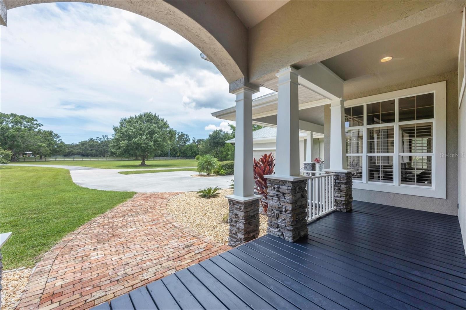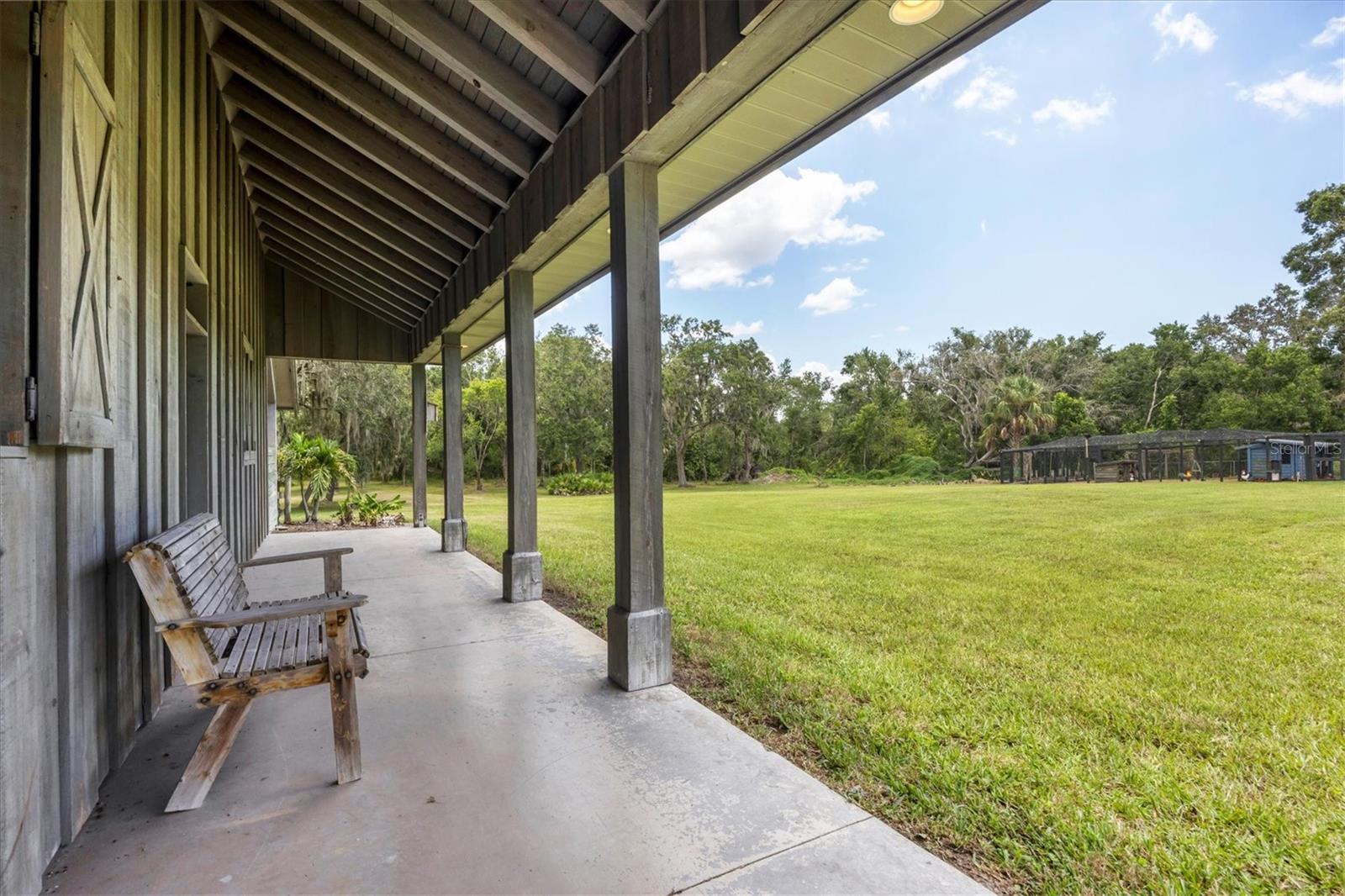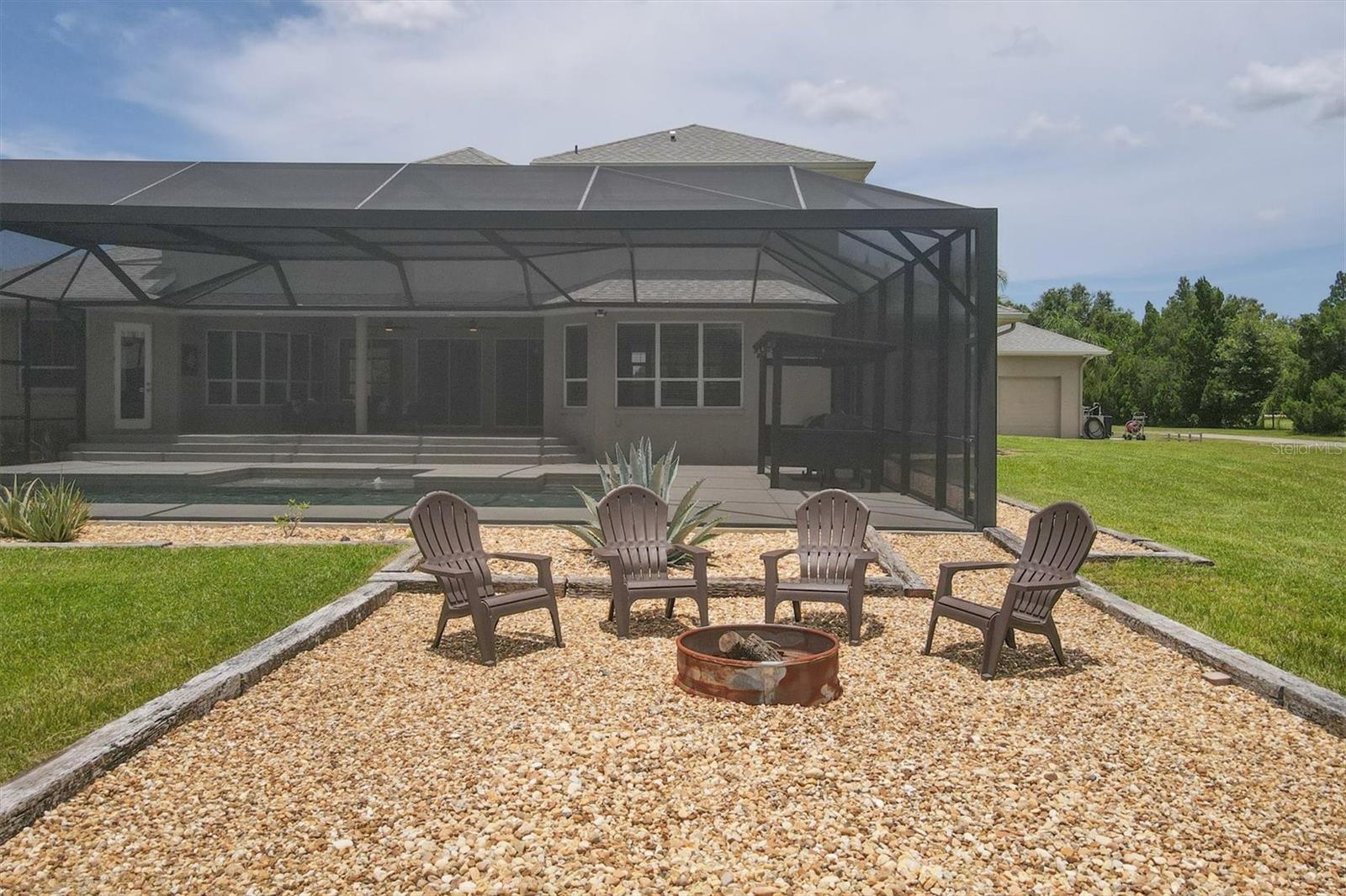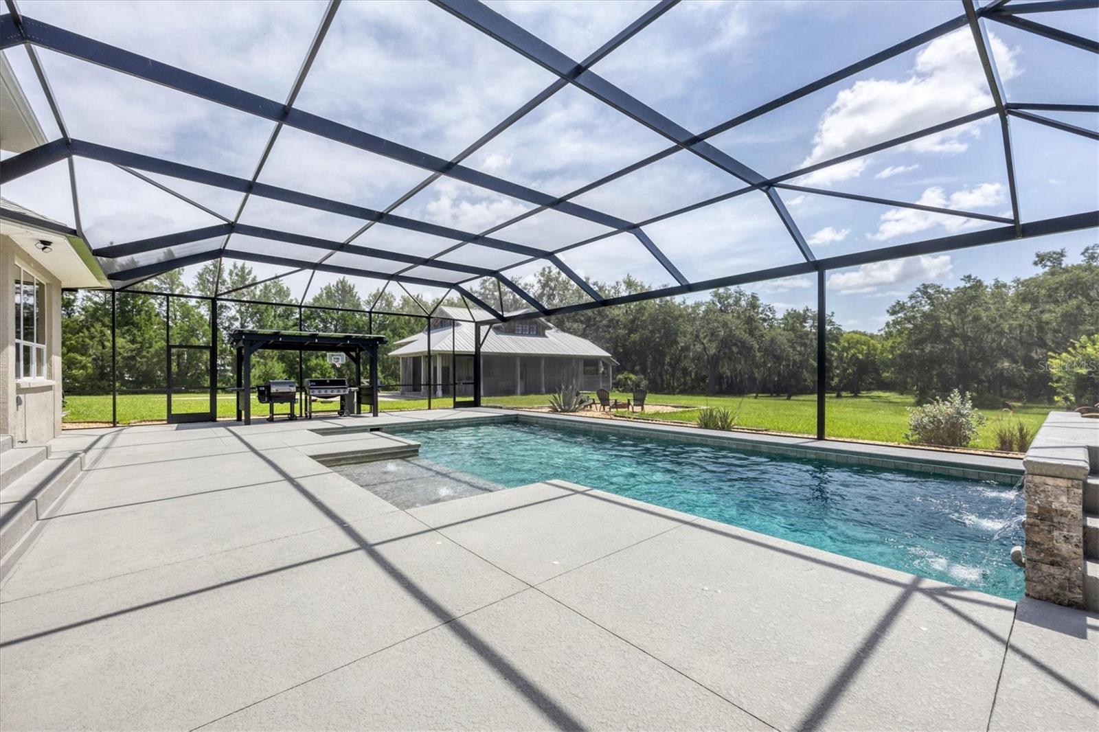 Private, Peaceful and Serene are three words to describe this picturesque Key West style home on 5.15 acres. A southern style porch greets you with an invitation to sit and stay a while. The home is very spacious and airy with 4 bedrooms, 3.5 baths and a flex room upstairs. The generous dining, kitchen and living area has beautiful views of the front and backyard pool bringing loads of light into the space. Moving outside to the expansive, covered patio, you'll see the large self cleaning, saltwater pool (2021) with panoramic screened enclosure (2022) perfect for entertaining on a warm day. Imagine yourself overlooking the pool while watching deer graze as you enjoy your morning coffee. Let's go inside...The owner's suite has easy access from the first floor through double doors and is roomy and comfortable. Plenty of storage and organization lines the walls of the main bedroom's walk in closet and continues to the en suite bath with built in drawers and shelving. The shower also has easy access and a separate soaker tub provides a private oasis to rest and relax. Coming from the owner's suite is an open living room area that's vaulted with a balcony and stair case to the second floor. Up the staircase you will find three bedrooms, the first with en suite bath updated in 2023 and an inviting window seat for guests to read and enjoy. Across the hall is another separate full bath also remodeled in 2022. Next door to the full bath, the second bedroom has a unique, elevated, built in desk area overlooking the front of the house and the third adjacent bedroom has a lovely view of the backyard and built in shelving. Walking down the hall and across the balcony you'll find a fourth room that could be a fifth bedroom, media room for movie nights, office or den. Mature trees adorn the property giving a quiet effect leading to a secluded space at the back of the property over a dry creek bed that flows during rainy season. The 31' x 40' block outbuilding is perfect to store your RV. Work benches and a half bath make the outbuilding a proper man cave! Available on separate contract or included for the right price is a Mahindra 2638 Tractor with approx. 200 hours, grapple and backhoe, a Gator all terrain vehicle with dump feature and John Deere zero turn mower to manage the property. Upstairs you'll find an air conditioned room adding extra usable square footage for your own private gym or tack room as this property is zoned for horses! Potential abounds as the all block outbuilding could also be made into a separate dwelling with modification. A 12' x 31' lean to at the back of the outbuilding is paved for easy animal care or storage. So much potential resides here and the heavy lifting has been done for you in the home with a newer roof (2018), 2 AC units with MERV 13 & UV lights (2020), landscaping (2021), new water heater (2023), new well pump (2023) Culligan water filtration system (2021), Rain Bird irrigation system (2023), asphalt driveway (2023), and new split AC unit for outbuilding (2022) . Ten minutes drive to State Road 75 and close to parks for recreation, exercise and fun this location is prime just 10 minutes drive to shopping and dining at the trendy University Town Center area and to Downtown Sarasota its a short 15 minute drive. With this property as your new home, you can have country privacy with a side of city!