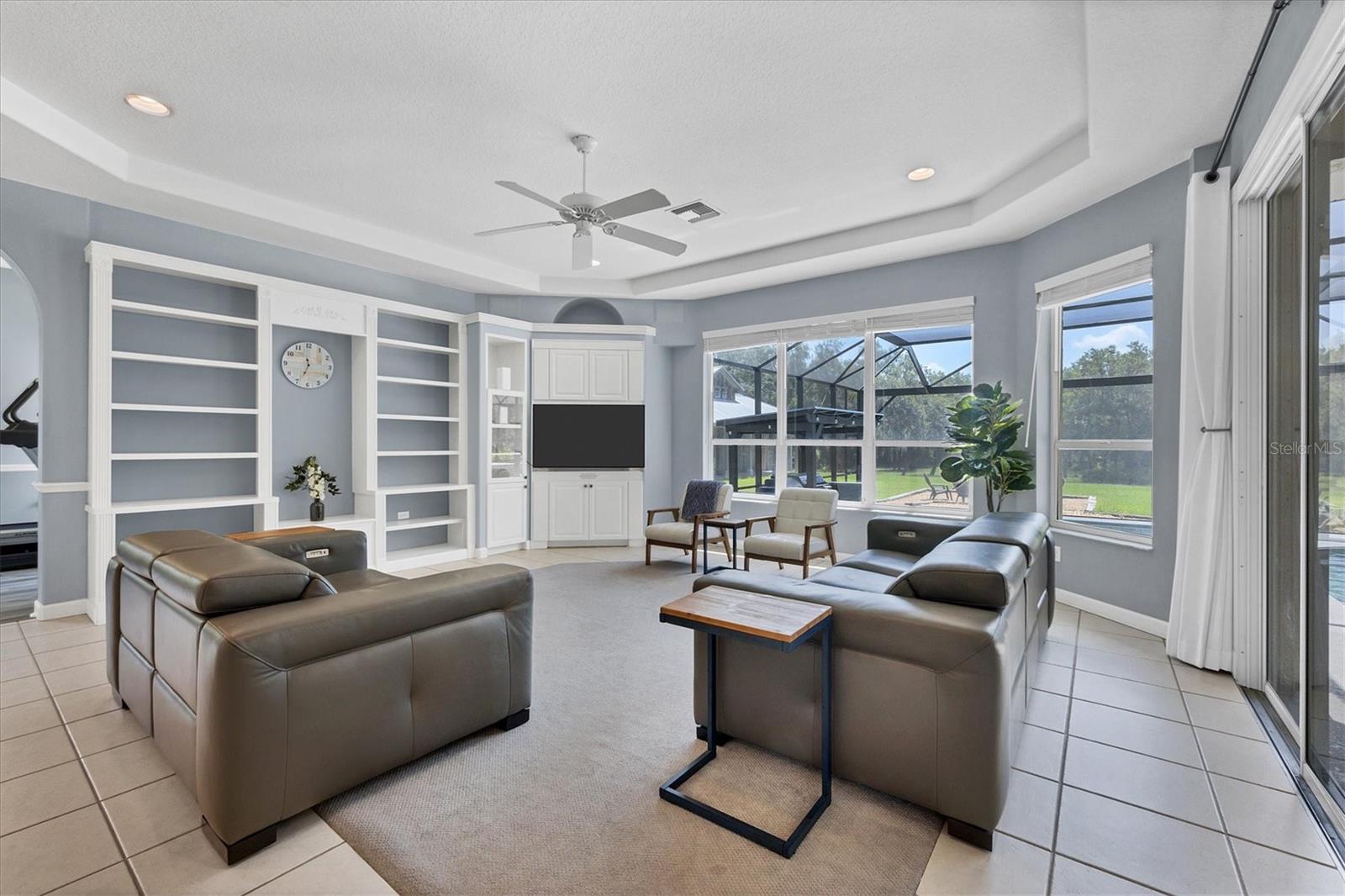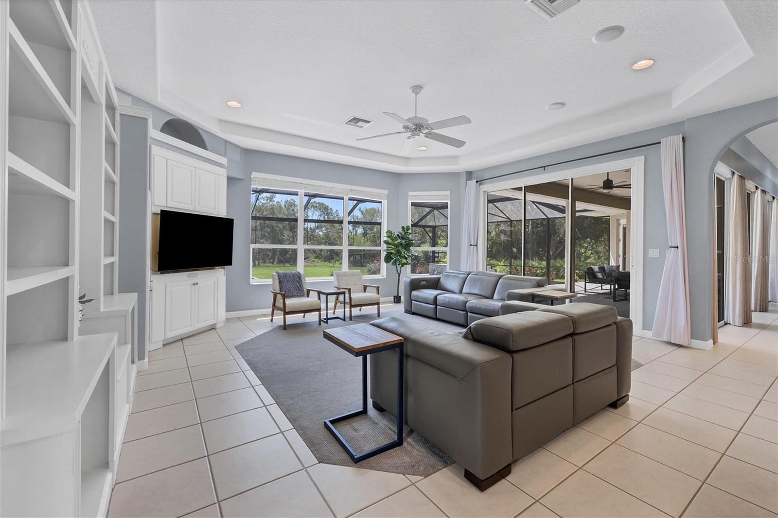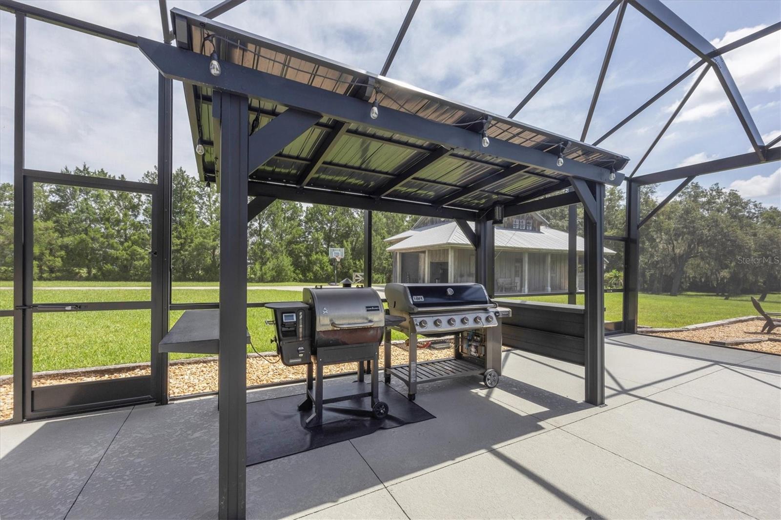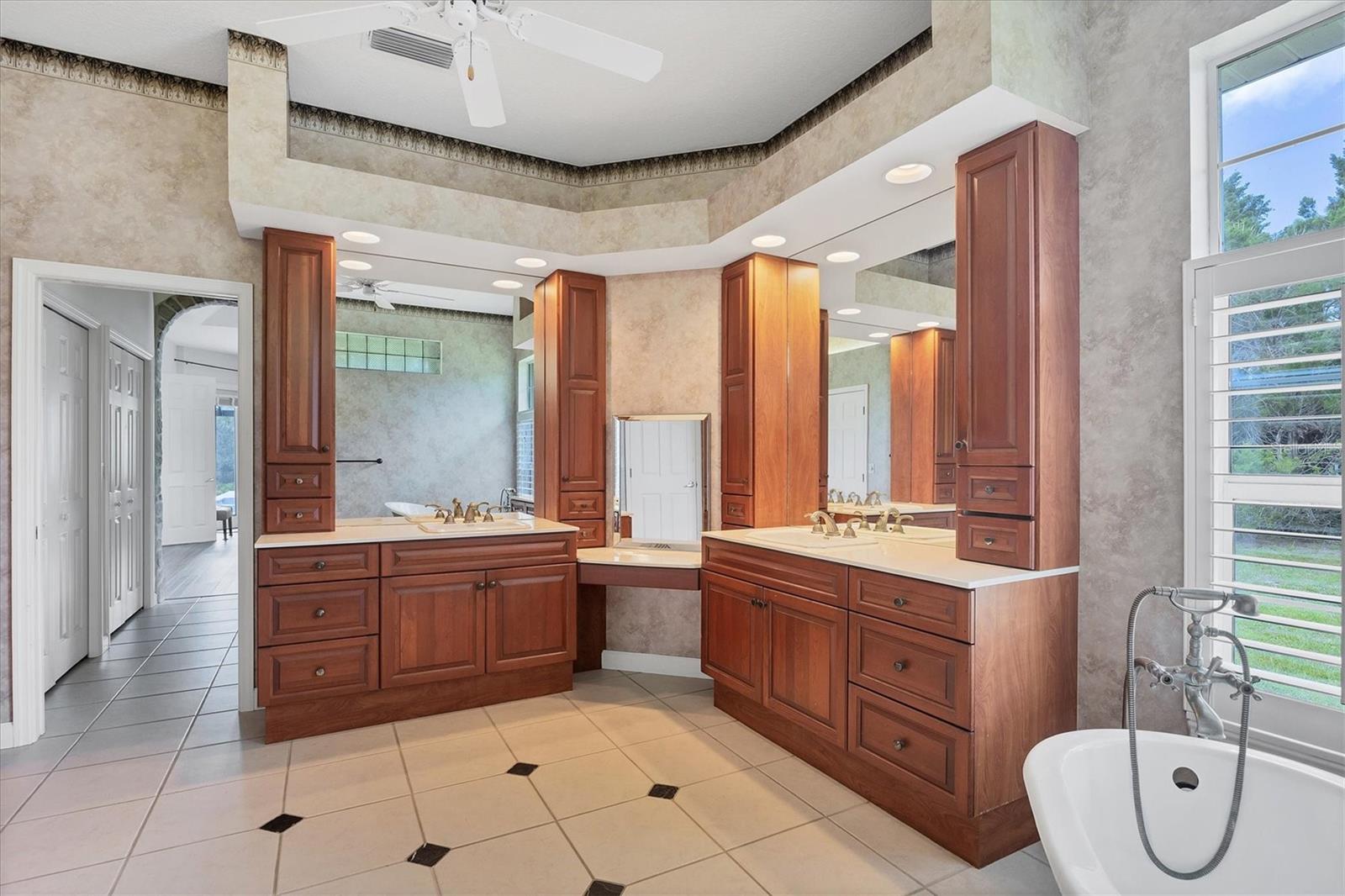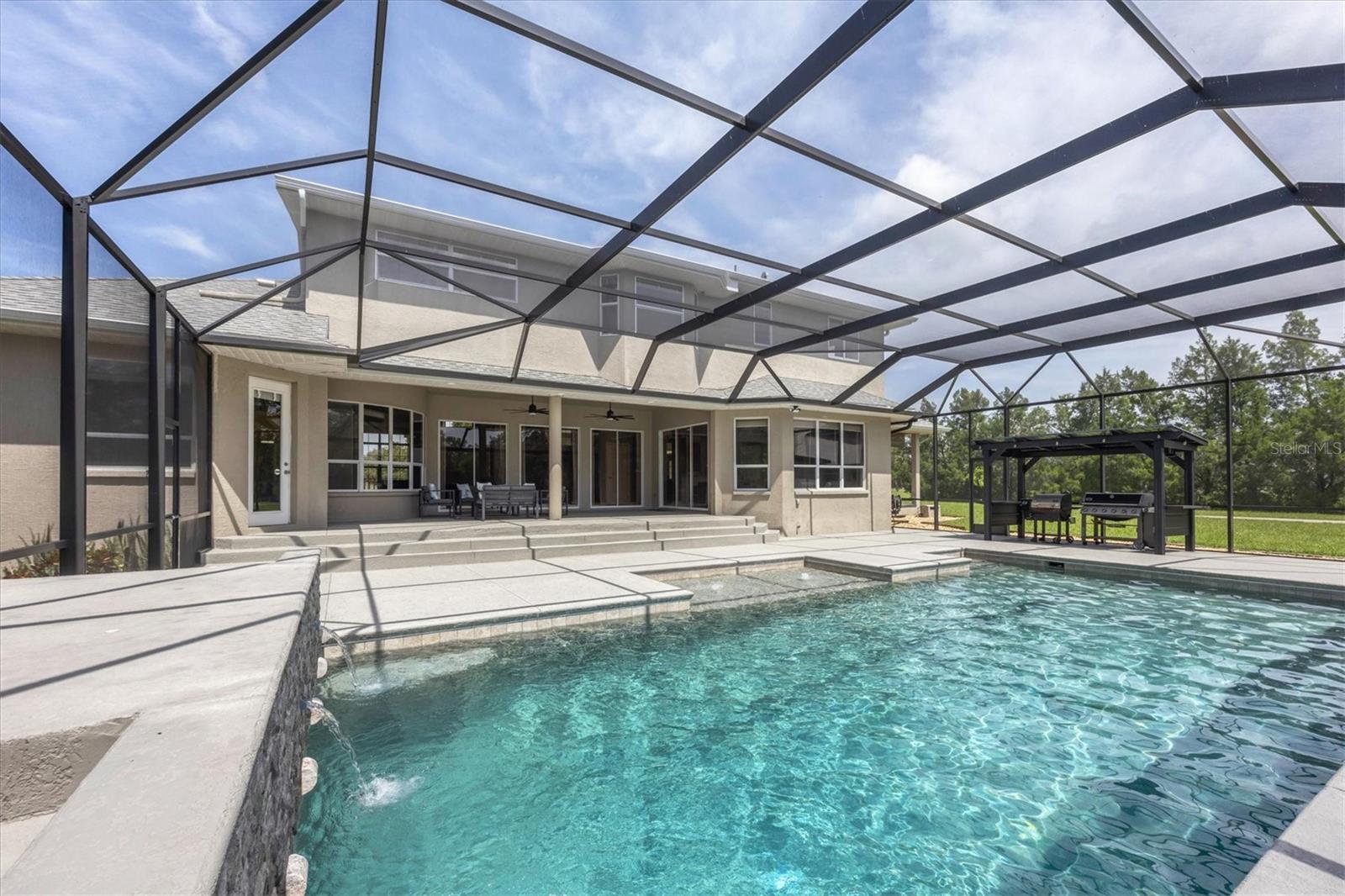 Private, Peaceful and Serene are three words to describe this picturesque Key West style home on 5.15 acres. A southern style porch greets you with an invitation to sit and stay a while. The home is very spacious and airy with 4 bedrooms, 3.5 baths and a flex room upstairs. The generous dining, kitchen and living area has beautiful views of the front and backyard pool bringing loads of light into the space. Moving outside to the expansive, covered patio, you'll see the large self cleaning, saltwater pool (2021) with panoramic screened enclosure (2022) perfect for entertaining on a warm day. Imagine yourself overlooking the pool while watching deer graze as you enjoy your morning coffee. Let's go inside...The owner's suite has easy access from the first floor through double doors and is roomy and comfortable. Plenty of storage and organization lines the walls of the main bedroom's walk in closet and continues to the en suite bath with built in drawers and shelving. The shower also has easy access and a separate soaker tub provides a private oasis to rest and relax. Coming from the owner's suite is an open living room area that's vaulted with a balcony and stair case to the second floor. Up the staircase you will find three bedrooms, the first with en suite bath updated in 2023 and an inviting window seat for guests to read and enjoy. Across the hall is another separate full bath also remodeled in 2022. Next door to the full bath, the second bedroom has a unique, elevated, built in desk area overlooking the front of the house and the third adjacent bedroom has a lovely view of the backyard and built in shelving. Walking down the hall and across the balcony you'll find a fourth room that could be a fifth bedroom, media room for movie nights, office or den. Mature trees adorn the property giving a quiet effect leading to a secluded space at the back of the property over a dry creek bed that flows during rainy season. The 31' x 40' block outbuilding is perfect to store your RV. Work benches and a half bath make the outbuilding a proper man cave! Available on separate contract or included for the right price is a Mahindra 2638 Tractor with approx. 200 hours, grapple and backhoe, a Gator all terrain vehicle with dump feature and John Deere zero turn mower to manage the property. Upstairs you'll find an air conditioned room adding extra usable square footage for your own private gym or tack room as this property is zoned for horses! Potential abounds as the all block outbuilding could also be made into a separate dwelling with modification. A 12' x 31' lean to at the back of the outbuilding is paved for easy animal care or storage. So much potential resides here and the heavy lifting has been done for you in the home with a newer roof (2018), 2 AC units with MERV 13 & UV lights (2020), landscaping (2021), new water heater (2023), new well pump (2023) Culligan water filtration system (2021), Rain Bird irrigation system (2023), asphalt driveway (2023), and new split AC unit for outbuilding (2022) . Ten minutes drive to State Road 75 and close to parks for recreation, exercise and fun this location is prime just 10 minutes drive to shopping and dining at the trendy University Town Center area and to Downtown Sarasota its a short 15 minute drive. With this property as your new home, you can have country privacy with a side of city!