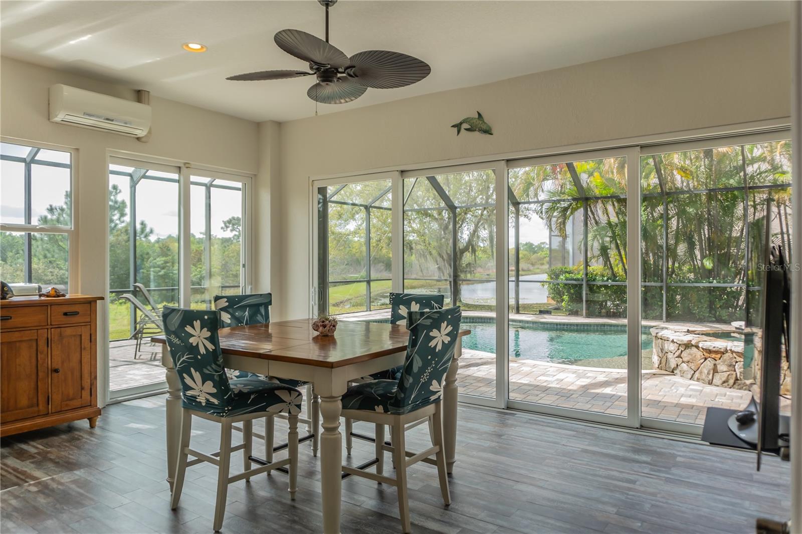 Nestled in the heart of Lakewood Ranch, this impressive 5 bedroom, 4 full bath home is the perfect family residence. This beautiful pool home, which is positioned amongst a peaceful preserve, offers the privacy you desire alongside a very spacious interior layout, making this home ideal for family gatherings. Whether it's movie nights in front of the 120-inch screen in the media room or celebrations by the oversized, heated saltwater pool and spa, this home provides ample space for every family member, ensuring each has a space to call their own. This home includes the luxury of having two home offices, offering private workspaces for remote work or serene study areas. Additionally, you have the freedom to customize the extra spaces to suit your family's desires. Whether it's crafting your own fitness haven, play area, reading sanctuary, music studio, crafting space, and beyond, there's an abundance of space for all. Additional perks to be found in this home include an EV charger, overhead storage in the garage, tankless gas water heater, stainless steel appliances, gas range, 3 surround sound systems, custom window treatments, and survived Hurricane Milton without a scratch. Experience the convenience of being within a short walk from top-rated schools, scenic parks, and nature trails, all while being centrally located to award-winning shopping and dining, championship golf courses, and the renowned Gulf beaches. Don't miss this opportunity to own a piece of paradise in Lakewood Ranch. A must-see for Florida family living!