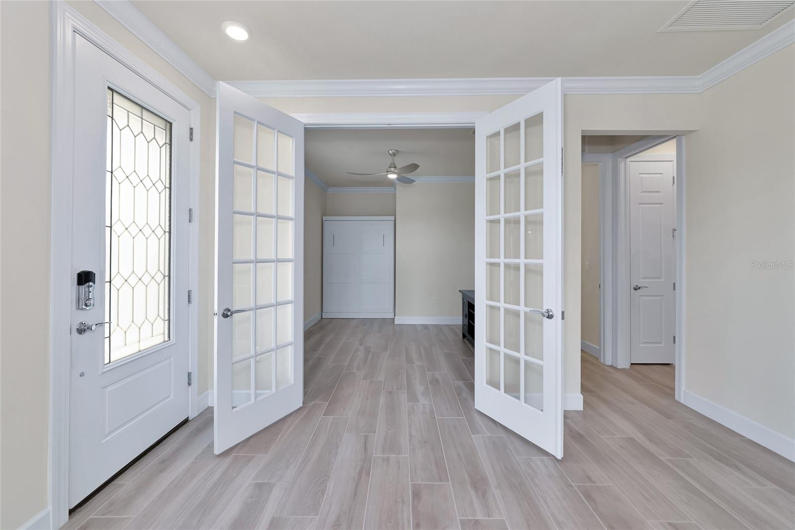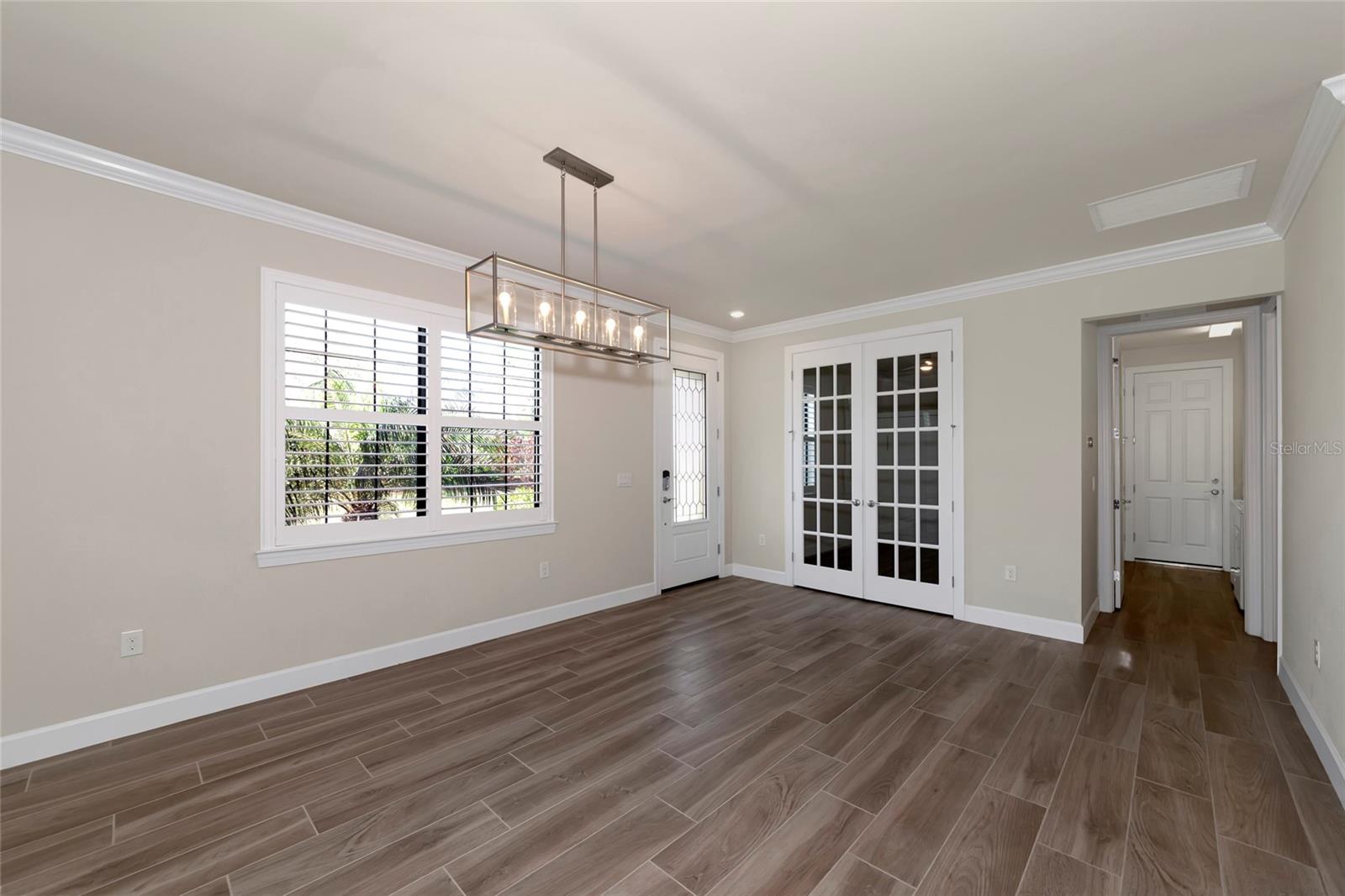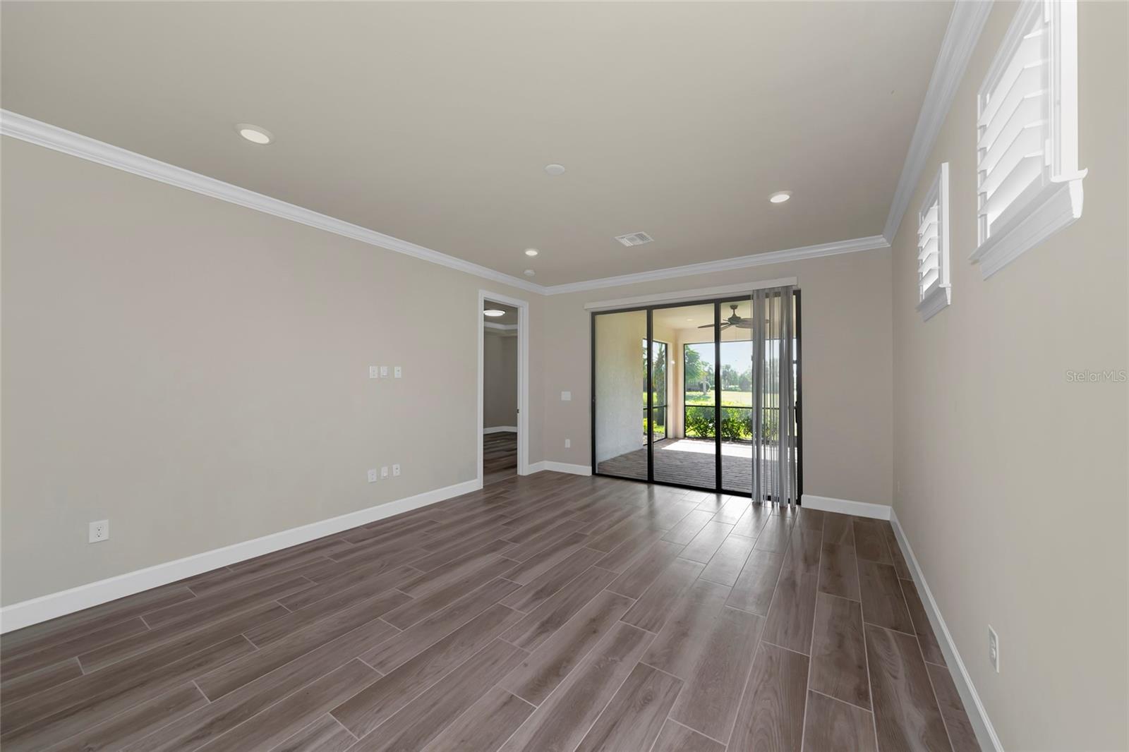 One or more photo(s) has been virtually staged. Nestled within the sought-after master-planned community of Palmer Ranch lies Hammock Preserve, close to Sarasota's best shopping, dining, and outdoor adventures. This gated community epitomizes resort living and features a clubhouse, fitness center, Barefoot Bar, resort pool, hot tub, fire pit, bocce courts, tennis courts, pickleball courts, dog park, and fishing pier. Experience the epitome of Florida living in this exceptional community. Within this vibrant setting, discover a meticulously crafted home designed for contemporary living, with its open-concept layout and expansive waterfront lanai, perfect for hosting gatherings and crafting cherished memories. Enter this exceptional residence featuring 2 bedrooms, 2 bathrooms, and a versatile bonus den/office. The living spaces seamlessly flow onto the spacious waterfront lanai, offering a tranquil setting for relaxation and entertaining. The spacious kitchen, adorned with stainless-steel appliances, a natural gas oven/stove, granite countertops, custom backsplash, breakfast bar, and ample pantry space, invites culinary delights and gatherings. Impeccable finishes, including neutral ceramic plank flooring, crown molding, plantation shutters, and an art glass entry door, infuse sophistication and charm into every corner. Positioned at the end of a tranquil cul-de-sac with an extended driveway, this coveted lot offers exceptional privacy while remaining conveniently close to Hammock Preserve's abundant amenities. Whether seeking relaxation or social engagement, Hammock Preserve offers an array of options, including a clubhouse, fitness center, Barefoot Bar, resort pool, hot tub, fire pit, bocce courts, tennis courts, pickleball courts, dog park, and fishing pier. Experience the epitome of Florida living in this exceptional community.
