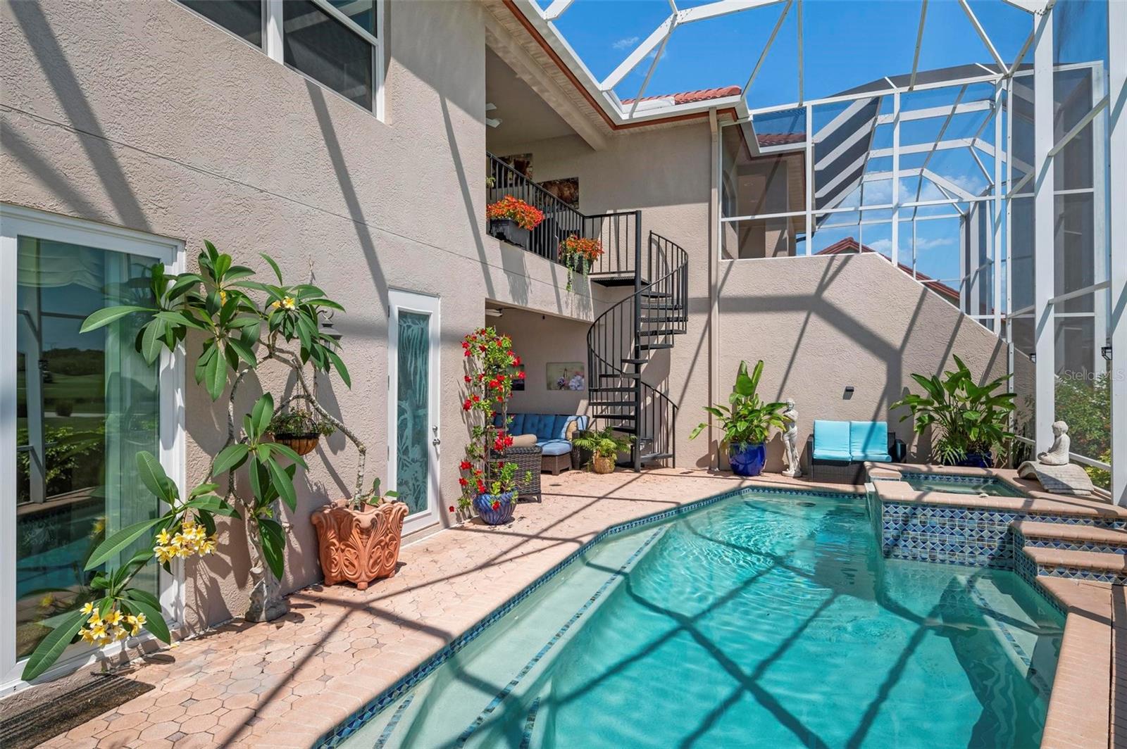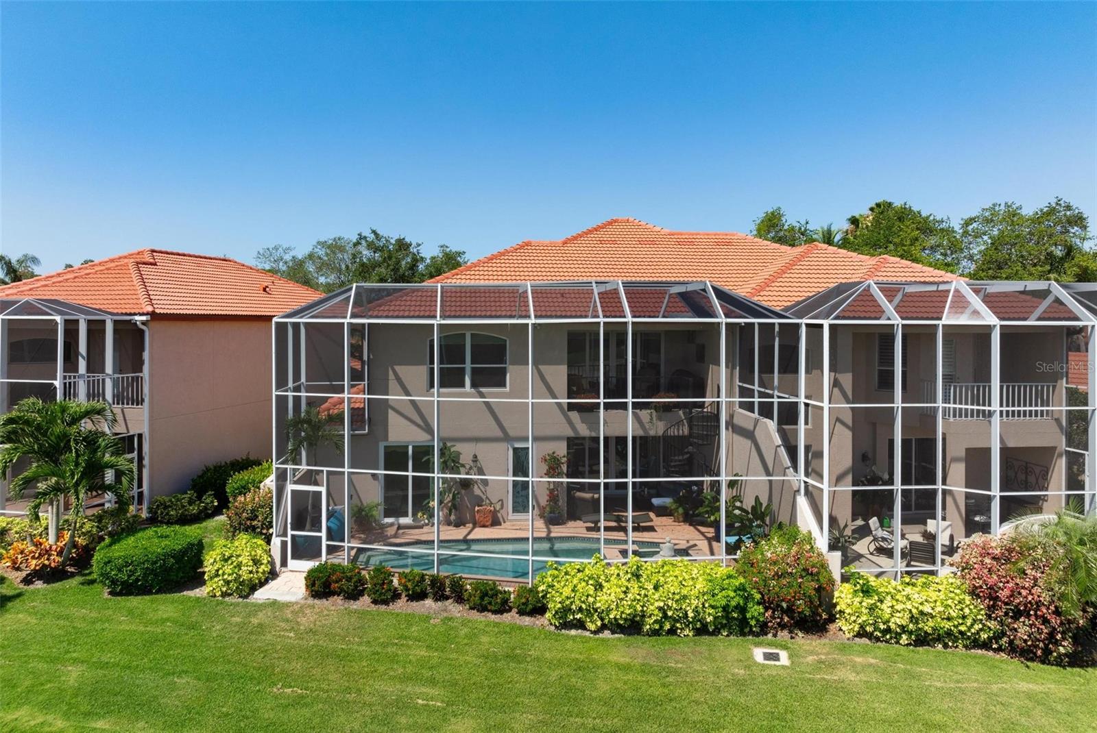 WHAT A GREAT OPPORTUNITY. LOOKING FOR A NEW HOME IN 2025? LOOK NO FURTHER! Enjoy luxury and privacy in this beautiful and immaculately maintained townhome located in the TPC Prestancia Golf and Country Club. Many premium features include a new roof in 2023, an elevator, high ceilings, an oversized Chefs kitchen with eat-in breakfast area, luxury laminate flooring on the upper level, and high impact hurricane resistant windows and sliders. The family room has sliders to a balcony which offers expansive views of the golf course and lake enhancing the feeling of space in this bright and airy property. The large master bedroom with his and her custom closets has sliding glass doors to the paved lanai, sparkling pool and spa. Guest bathroom is also a pool bath. All bedrooms have custom built-in closets with bedroom 4 having an ensuite bathroom on the upper level. Relax on the 2-story screened lanai which is great for entertaining and watch the golfers with your favorite beverage. Mara Villa II is a wonderful enclave of just 35 homes with a community pool. The HOA includes building insurance, roofs, water and pest control. TPC Prestancia is an Audubon Certified Sanctuary so much wildlife to enjoy with two 18-hole golf courses, preserves and lakes. Membership to the Golf Club is optional but the community has an active social calendar. Conveniently located for the beaches of Siesta Key and some of the best cultural attractions in Sarasota. Minutes to shopping, dining, Potter Park, the Legacy Trail for walking & bicycling as well as the YMCA for fitness and tennis. Schedule a showing today!