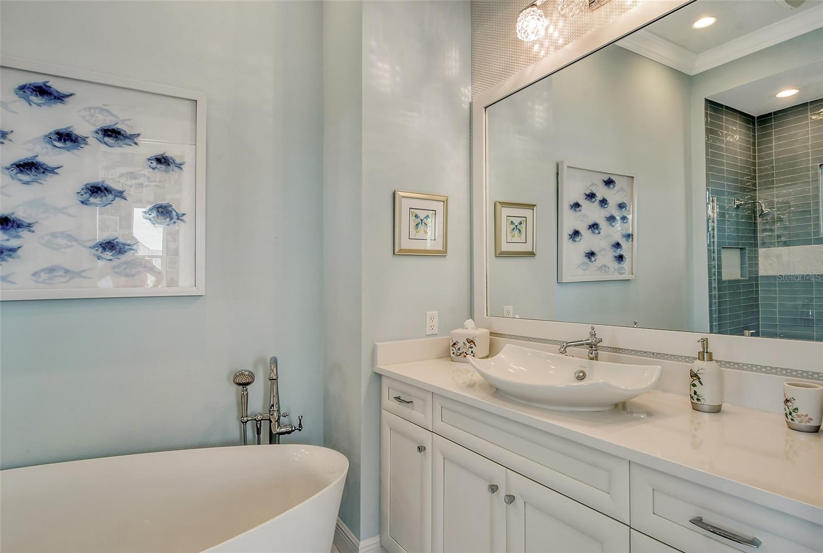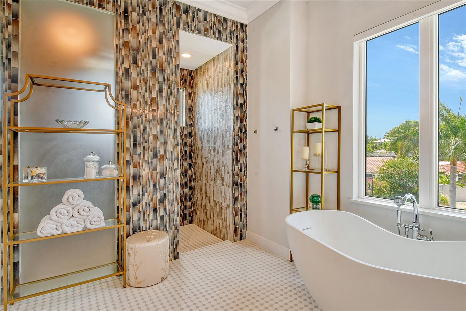 Luxurious Living Redefined on Bird Key! Welcome to the epitome of modern elegance! Step into this custom-designed "smart home" by John Cannon Homes, where beauty, simplicity, and sophistication converge to offer you the ultimate lifestyle experience. As you approach, be greeted by a mesmerizing cascading waterfall feature and enter through grand custom glass double doors into a marble foyer adorned with a contemporary chandelier. Towering 11'4" ceilings adorned with custom crown moldings guide you through the sleek marble floors of the first floor, leading seamlessly to an outdoor oasis boasting breathtaking views of Sarasota Bay. Indulge your culinary desires in the gourmet kitchen, equipped with top-of-the-line Viking appliances including a 48" Tuscany Range and a spacious quartz island perfect for family breakfasts or entertaining guests. Transition effortlessly to the expansive outdoor living space featuring two covered balconies, a two-story enclosed pool, and a fully equipped outdoor kitchen ideal for al fresco dining. This home is designed for relaxation and entertainment with spacious guest rooms offering tranquil retreats flooded with natural light. Upstairs, discover a second-floor great room with hardwood floors, wet bar, and balcony access, offering panoramic views of the bay and heated lap pool below. Unwind in the luxurious master suite featuring a personal spa area with a Kohler soaking tub, custom-tiled shower, and ample walk-in closets. With a second bedroom boasting an ensuite bathroom and balcony access, every corner of this home exudes comfort and style. Embrace the future with this technologically advanced smart home, granting you control of lighting, music, security, and more directly from your phone, no matter where you are in the world. Conveniently located just moments from St. Armand's Circle and Downtown Sarasota, indulge in the vibrant arts scene, epicurean delights, and pristine beaches that define life on Bird Key. Don't miss your chance to elevate your lifestyle and start living your best life in paradise. Schedule your private tour today and experience modern living redefined!