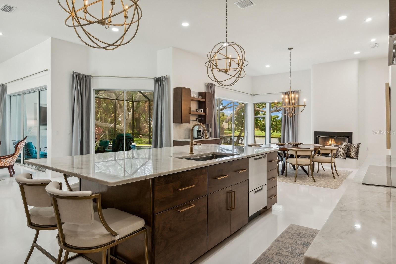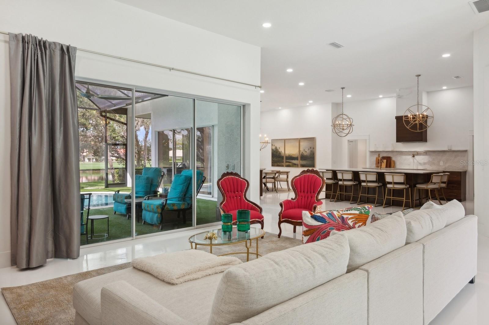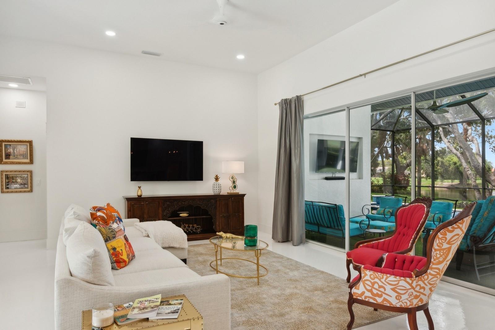 Situated on a tree-lined street within the upscaled gated community of Prestancia, in Palmer Ranch, this home backs onto a private lake along the 16th fairway of TPC Players Course, an International Audubon Golf Sanctuary, part of the esteemed global TPC Network of Clubs and Heritage Golf Group Collection of Clubs.Custom designed and built, this home maximizes Florida's natural beauty with ample windows. It blends indoor and outdoor spaces, allowing views, breezes, and sunlight to be part of the living experience. The Modern Universal Design interior layout, from 2021-2024, combines a laid-back coastal vibe with elegant boutique touches. The open-concept design is perfect for both relaxation and entertaining, featuring new walls, doors, flooring, electrical, lighting, and plumbing fixtures.The owner's wing offers a luxurious bedroom suite with a spa-like bath featuring a soaking tub, zero-entry shower, dual sinks, custom cabinetry with accent lighting, a dressing room, and ensuite laundry--a true sanctuary for comfort and accessibility.The guest wing includes three spacious bedrooms, each with ensuite bathrooms and walk-in closets. Two offices feature large arched windows, built-in cabinets, and antique wood doors worthy of a dcor magazine. The open kitchen integrates dining, living, and outdoor spaces, featuring an oversized island with seating for six, Maplewood cabinetry, gray quartzite countertops, and luxury appliances for a curated blend of Kentucky craftsmanship and European design. The pantry offers ample storage with deep drawers and shelves.Luxury epoxy flooring enhances the foyer, while the living and dining rooms flow seamlessly to the outdoor space, where a redesigned pool, heated spa, and new protective cage overlook the serene golf course, ensuring privacy.New exterior landscaping with native plants, fresh sod, and majestic live oaks provides low-maintenance ecological benefits. The three-car garage and parking for 10 vehicles make it perfect for hosting. Brand new roof, new HVAC system installed.This property is centrally located near Siesta Beach, downtown Sarasota, Sarasota Airport, Sarasota Memorial Hospital, and local amenities like shopping, dining, and the Legacy Bike Trail.Schedule your private showing today!