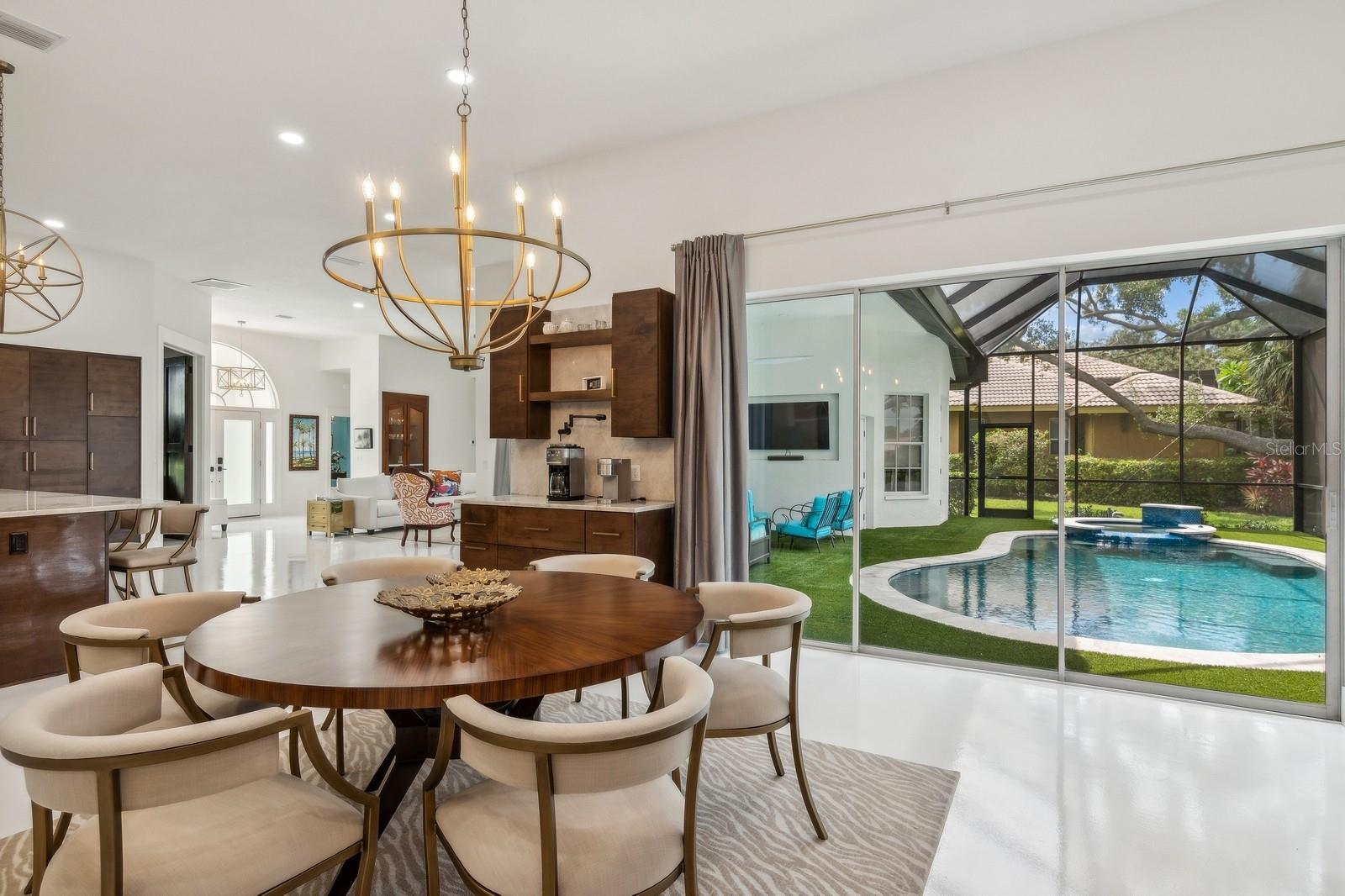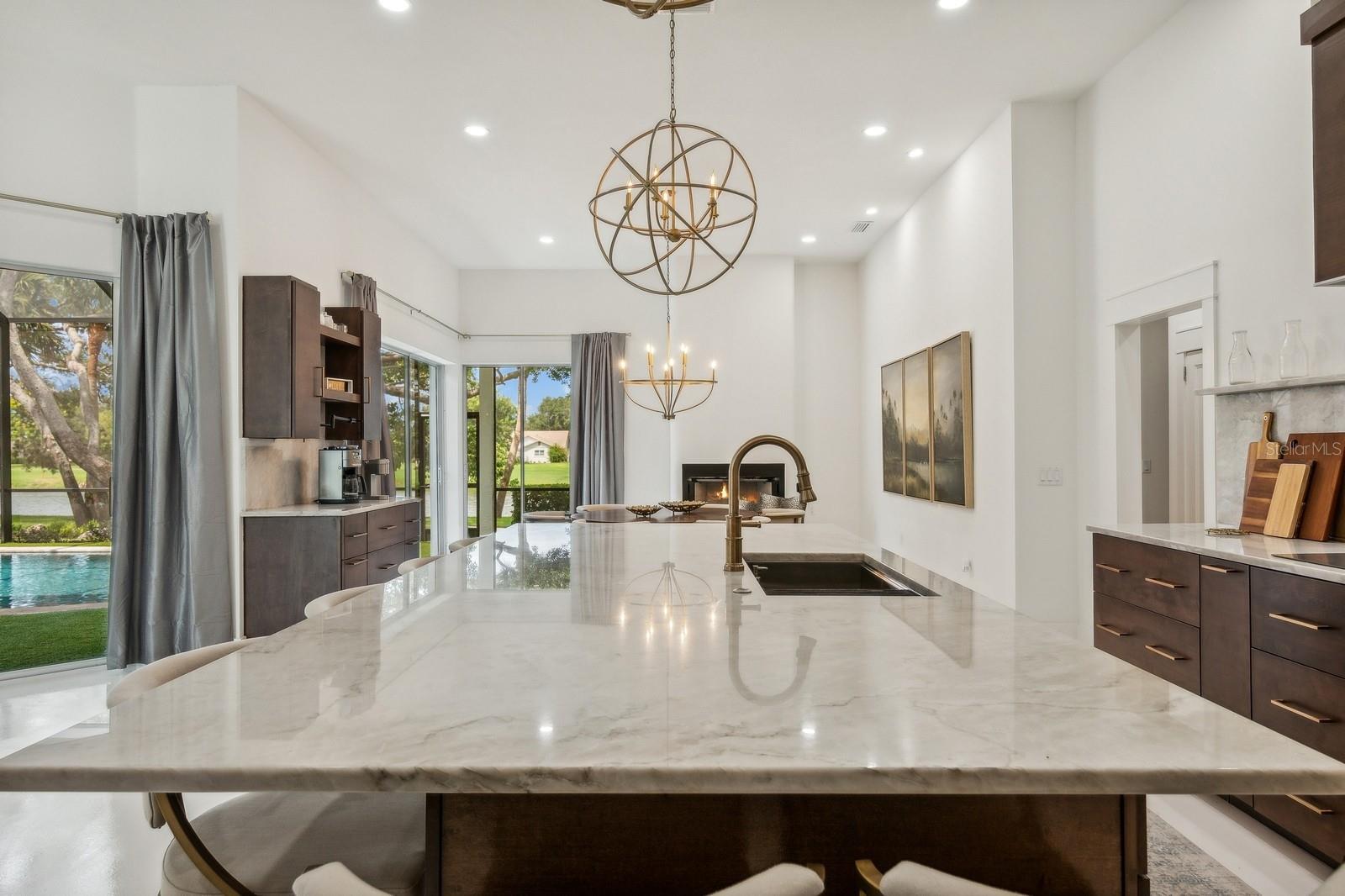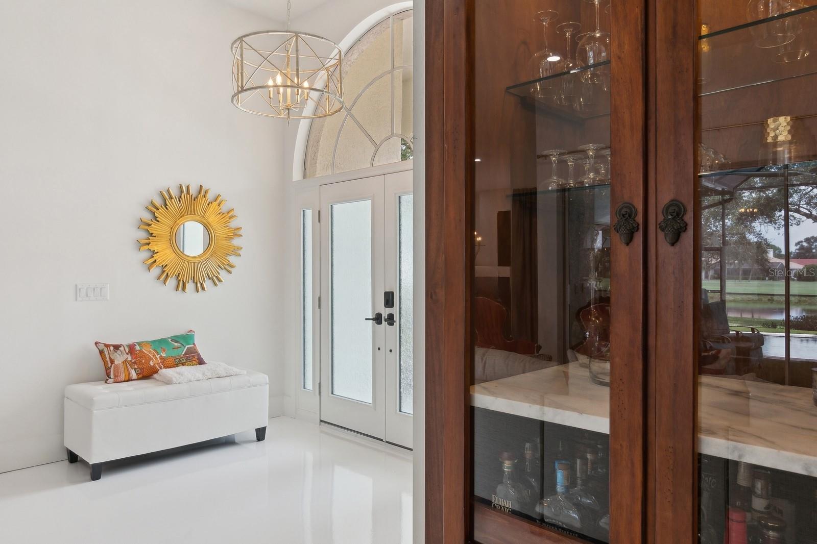 Situated on a tree-lined street within the upscaled gated community of Prestancia, in Palmer Ranch, this home backs onto a private lake along the 16th fairway of TPC Players Course, an International Audubon Golf Sanctuary, part of the esteemed global TPC Network of Clubs and Heritage Golf Group Collection of Clubs.Custom designed and built, this home maximizes Florida's natural beauty with ample windows. It blends indoor and outdoor spaces, allowing views, breezes, and sunlight to be part of the living experience. The Modern Universal Design interior layout, from 2021-2024, combines a laid-back coastal vibe with elegant boutique touches. The open-concept design is perfect for both relaxation and entertaining, featuring new walls, doors, flooring, electrical, lighting, and plumbing fixtures.The owner's wing offers a luxurious bedroom suite with a spa-like bath featuring a soaking tub, zero-entry shower, dual sinks, custom cabinetry with accent lighting, a dressing room, and ensuite laundry--a true sanctuary for comfort and accessibility.The guest wing includes three spacious bedrooms, each with ensuite bathrooms and walk-in closets. Two offices feature large arched windows, built-in cabinets, and antique wood doors worthy of a dcor magazine. The open kitchen integrates dining, living, and outdoor spaces, featuring an oversized island with seating for six, Maplewood cabinetry, gray quartzite countertops, and luxury appliances for a curated blend of Kentucky craftsmanship and European design. The pantry offers ample storage with deep drawers and shelves.Luxury epoxy flooring enhances the foyer, while the living and dining rooms flow seamlessly to the outdoor space, where a redesigned pool, heated spa, and new protective cage overlook the serene golf course, ensuring privacy.New exterior landscaping with native plants, fresh sod, and majestic live oaks provides low-maintenance ecological benefits. The three-car garage and parking for 10 vehicles make it perfect for hosting. Brand new roof, new HVAC system installed.This property is centrally located near Siesta Beach, downtown Sarasota, Sarasota Airport, Sarasota Memorial Hospital, and local amenities like shopping, dining, and the Legacy Bike Trail.Schedule your private showing today!