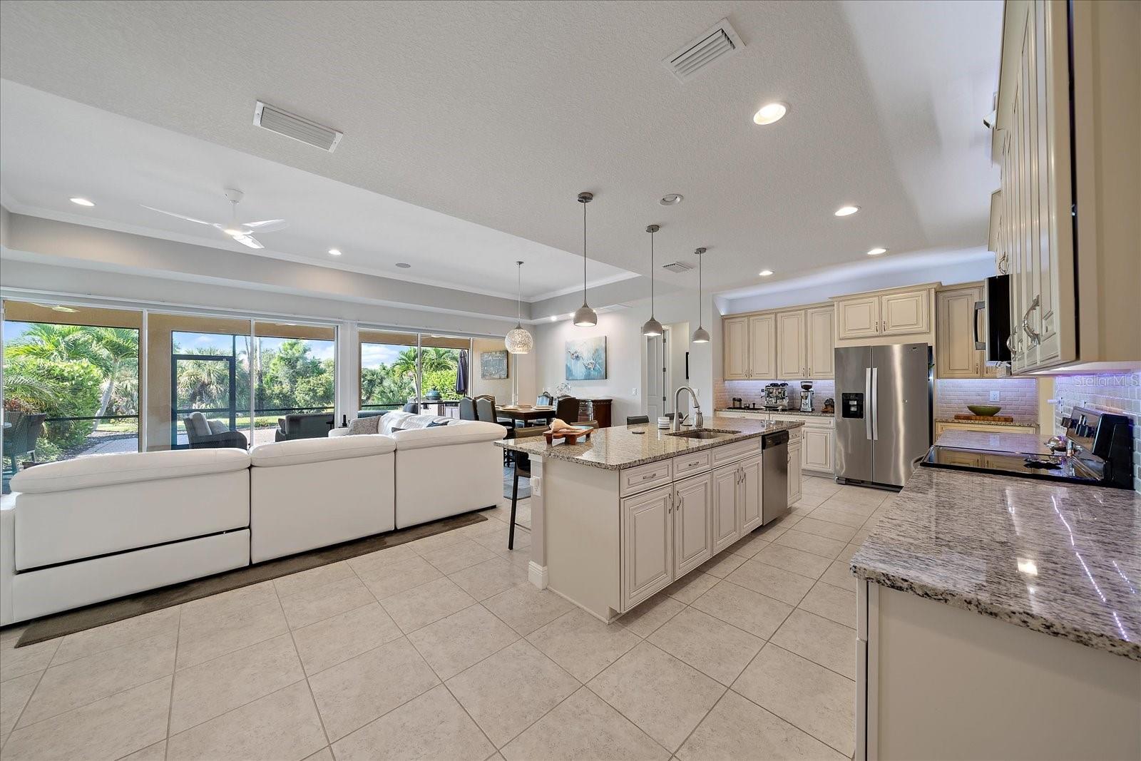 Your perfect home has been found. It is rare to find such an impeccably maintained, spacious, well appointed home at such an affordable price. Located in the beautiful Mattamy community of Renaissance. Located minutes from Downtown Wellen Park, minutes to CostCo, Publix, Cool Today Park, Beaches and i-75. SMART HOME LOVERS THIS IS FOR YOU. Level 2 SMART charger is installed in garage for electric vehicles. This home has complete integration with Alexa which can control programmable thermostat, front door lock, double sliders power shades, both garage doors, security system and interior lights.This beautiful home is located on a very large peaceful lot with plenty of room for a pool and outdoor entertainment. The delightful home features 8 ft. doors and tray ceilings in the foyer, spacious family room/dining room. The well appointed kitchen features stainless steel appliances, large center island, granite countertop and travertine backsplash. As you enter into the home you are welcomed into the perfect size office or den depending on buyers wishes and needs. The open floor plan is fabulous for entertaining and the split bedroom plan offers lots of personal space and privacy as needed. The owners suite is quite large and the current owners have added custom closets that are allow for so much additional storage and organization. The dual vanities, glass-enclosed shower and private water closet make this owners bath a must see. Bedroom 2 includes a private bath and bedroom 3 and bath 3 are steps apart. Bath 3 could easily be used as a pool bath if you desire to add your own pool. Ample size laundry and pantry. Renaissance features resort amenities with large clubhouse and pool, workout facilities, pickleball courts, playground, ACTIVITIES DIRECTOR and active Social Calendar that helps bring neighbors together.Rarely do we find a 3 car garage but this 3rd car garage space is extra spacious with so much additional room for storage or plenty of space for golf cart.