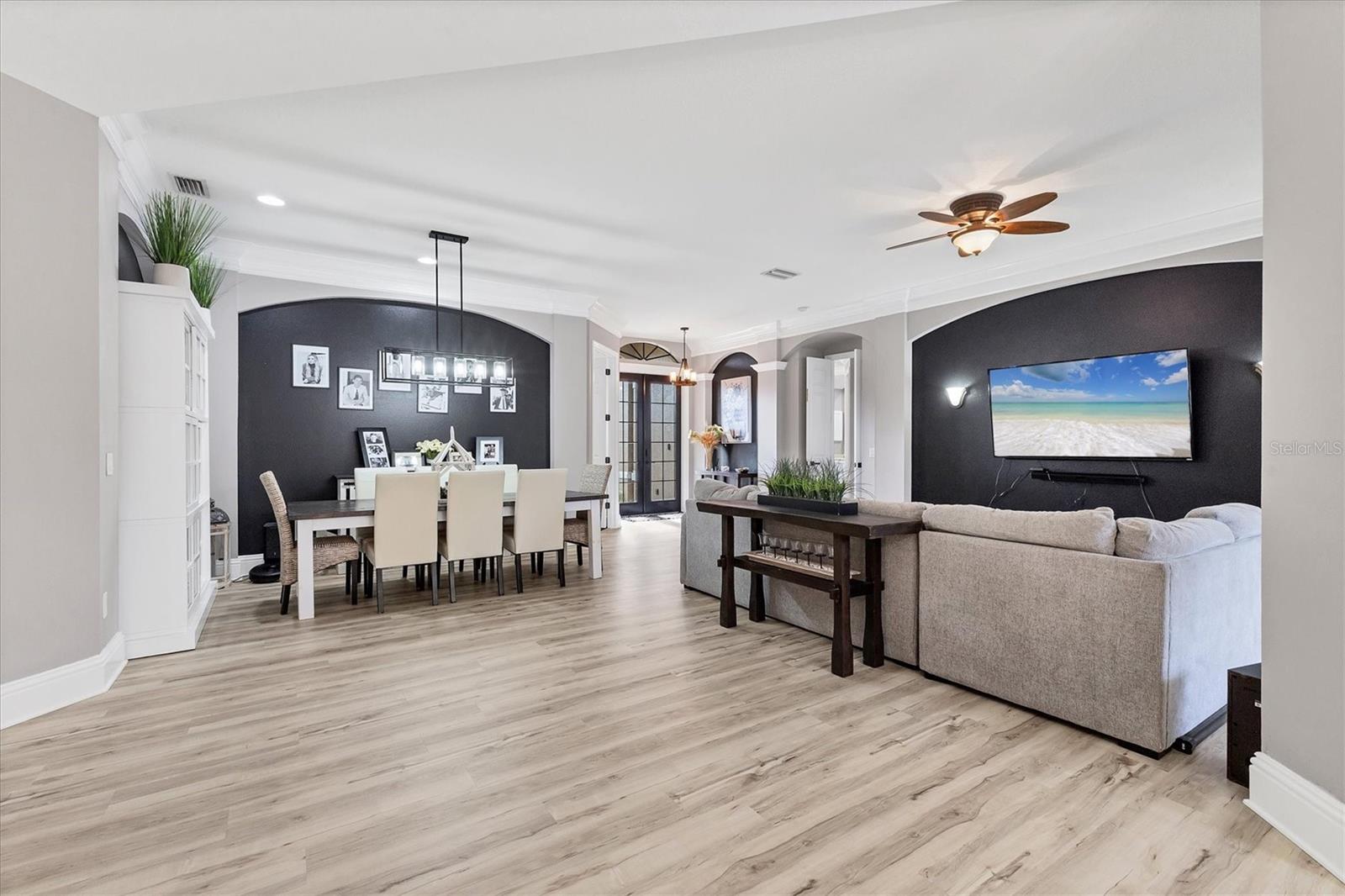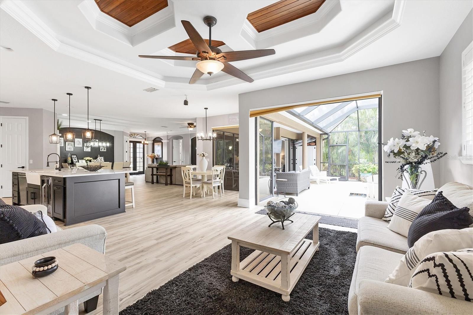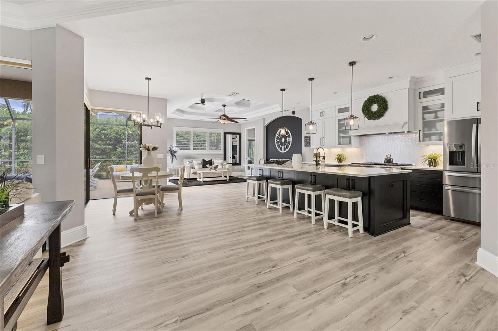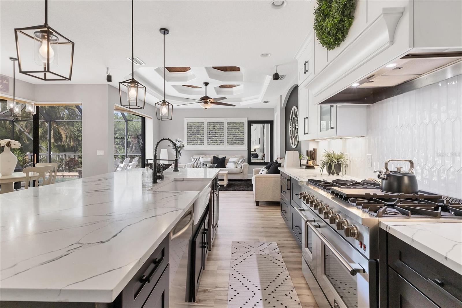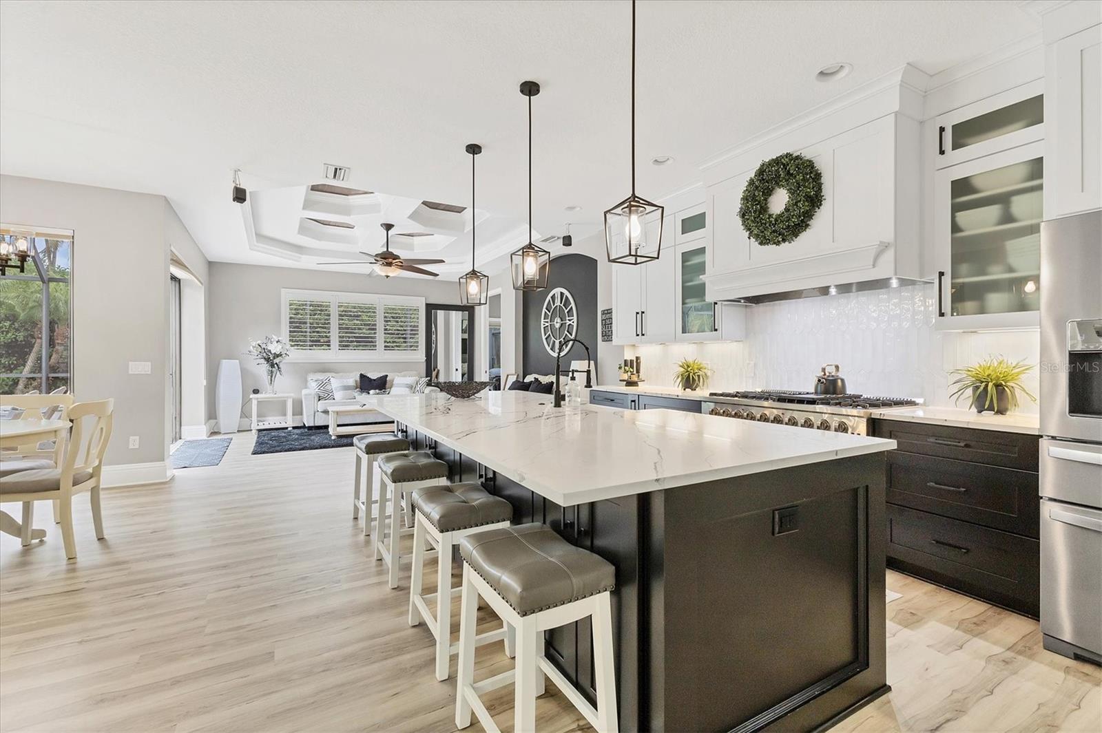 Presenting a totally updated home in Greenbrook Vistas. This extensively remodeled five-bedroom, (or 4+Den) three-bath plus a 3-car garage home ispristine. Meticulously designed and executed renovations make this home model perfect. The open flow offers endless opportunities for entertainment.Featuring new impact windows and a new roof in July of 2024. As you enter the double doors, be greeted by the high ceilings, contemporary finishes,and an abundance of natural light that flows throughout the home. Notice the many custom ceiling designs and extensive crown moldings. Thegourmet kitchen is a dream, featuring new high-end stainless-steel appliances, custom cabinetry, and plenty of space for entertainment. New lightingthroughout, new paint interior and exterior. Freshly landscaped. This property has easy access to miles of trails that lead directly to The AdventurePark of Greenbrook, with ball fields, in-line skating, playgrounds, pickleball/tennis courts and Pavilion. Greenbrook has Low HOA Fees, and isconvenient within Lakewood Ranch, with proximity to restaurants, shopping, excellent schools, and a short drive to crystal sand beaches of Sarasota,Bradenton, and Anna Maria Island. With every detail tended to, this perfect home is a must see!!!