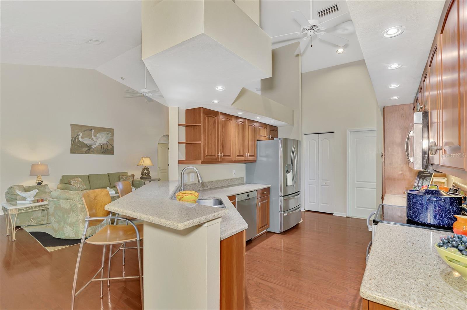~ $75,000 IN NEW HIGH IMPACT HURRICANE WINDOWS AND SLIDERS THROUGHOUT THE HOME ALONG WITH THE FRONT DOORS HAVE BEEN REPLACED FOR PEACE OF MIND. ~ PHENOMENAL VALUE, Energy efficient and provide peace of mind to enjoy the Florida lifestyle! BEAUTIFUL one owner three bedroom, two bath pool home has provided years of happy memories to original home owners. IMMEDIATE GOLF MEMBERSHIP AVAILABLE ALLOWS BUYERS THE OPPORTUNITY TO SKIP THE LONG WAIT LIST. Garage offers plenty of space for two cars and provides plenty of room for a golf cart with a side load garage door. Space for storing other items in the built in storage. 114 FIELDSTONE offers a split floor plan with Cathedral ceilings in the main living, a serene backyard blessed with privacy you will notice as you enter and view through the NEW HURRICANE SLIDERS. Turn the backyard into your own personal PRIVATE space! Home has engineered hard wood floors throughout the main living areas, granite counter tops in the kitchen, SS kitchen appliances, and a beautiful quiet pool area. NEW roof in 2018, AND A NEW GARAGE DOOR IN 2021. This home will make any owner feel safe and assured that this home has been loved and maintained throughout its lifespan! The second bedroom offers a built-in Murphy bed and desk system taking advantage of space saving and making this bedroom/den feel large and multifunctional. Landscaping has been freshened and this one. GOLF MEMBERSHIP opportunity is attached to this property and the ability to SKIP the waitlist! Who wouldn't want this one! VGCC is a private, member-owned country club offering an 18-hole championship golf course that is as challenging as it is beautiful. But it's not just about golf! The club also boasts top-notch Har-tru tennis courts, a State of the Art "Wellness Center" that offers equipment that can track your workout, an onsite physical therapist, an onsite message therapist and onsite personal trainer(s) and an Olympic Jr. sized pool and spa area. The dining options are exquisite, with a variety of cuisines to satisfy every palate and newly expanded outside dining area. The community spirit here is strong, with members often gathering for social events and activities. The staff is friendly and attentive, ensuring a memorable experience every time. So, whether you're a golf enthusiast or someone who enjoys a leisurely lifestyle in a luxurious setting, Venice Golf and Country Club is the place to be! The location is ideal, with close proximity to shopping, dining, and the beautiful beaches of Venice. Make your appt TODAY before this one is GONE! This one is perfect for full or part-time owner and awaiting its new forever owner! ALL PROPERTY OWNERS IN VGCC MUST BE A MEMBER OF THE COUNTRY CLUB. PLEASE ASK ABOUT FEES PRIOR TO VIEWING THIS PROPERTY! THERE IS A MANDATORY REQUIREMENT, THANK YOU.