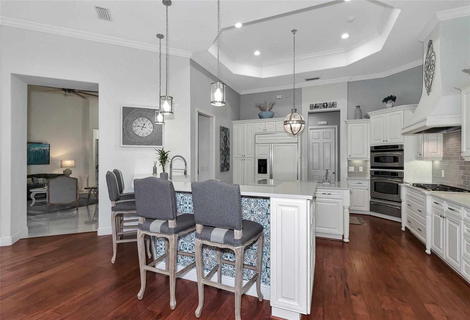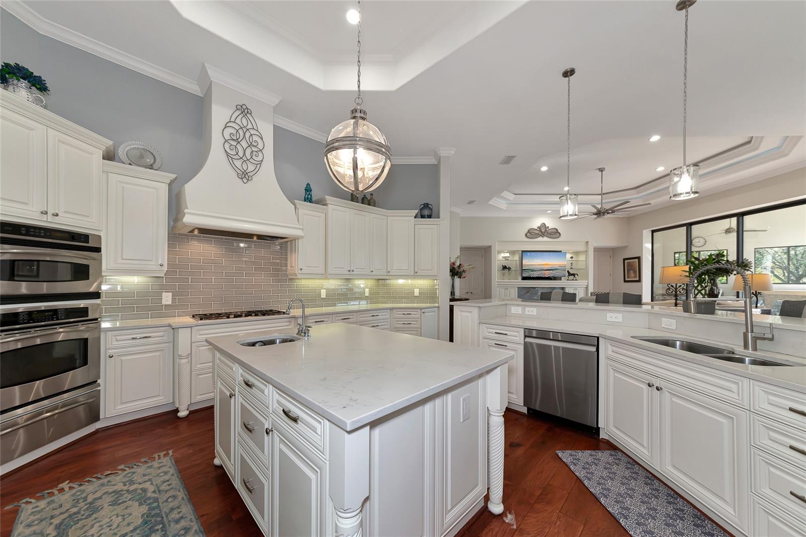 Nestled in the prestigious Lakewood Ranch Country Club, this John Cannon masterpiece is a true showcase of luxury living. Spanning an impressive 5,701 square feet under air, this estate features 4 bedrooms, 4.5 bathrooms, a dedicated office/den, and a 3-car side-load garage equipped with a whole house generator, electric vehicle charger, and a mini-split A/C for comfort. Storage is made easy with overhead racks, maximizing garage space.The heart of the home is the chef's dream kitchen, boasting ample cabinet space, a cooktop, separate wall oven, and convection oven, perfect for culinary creations. Hardwood floors flow seamlessly throughout the newly renovated interiors, including all bathrooms, enhancing the modern feel and elegance of the home.Entertain in grand style with two separate outdoor seating areas, an outdoor kitchen with a fireplace, and a recently remarcited heated pool and spa. Enjoy serene views of a private preserve and lake, adding to the home's tranquil ambiance.Recent upgrades include a new roof, three new air conditioners, new pool heater, pool pump, and a whole house generator, ensuring this home is as functional as it is beautiful.Located in a community known for its world-class amenities, 6809 Belmont Court offers an unparalleled lifestyle where luxury meets comfort. Embrace the opportunity to own this spectacular estate and live the life you've always envisioned.