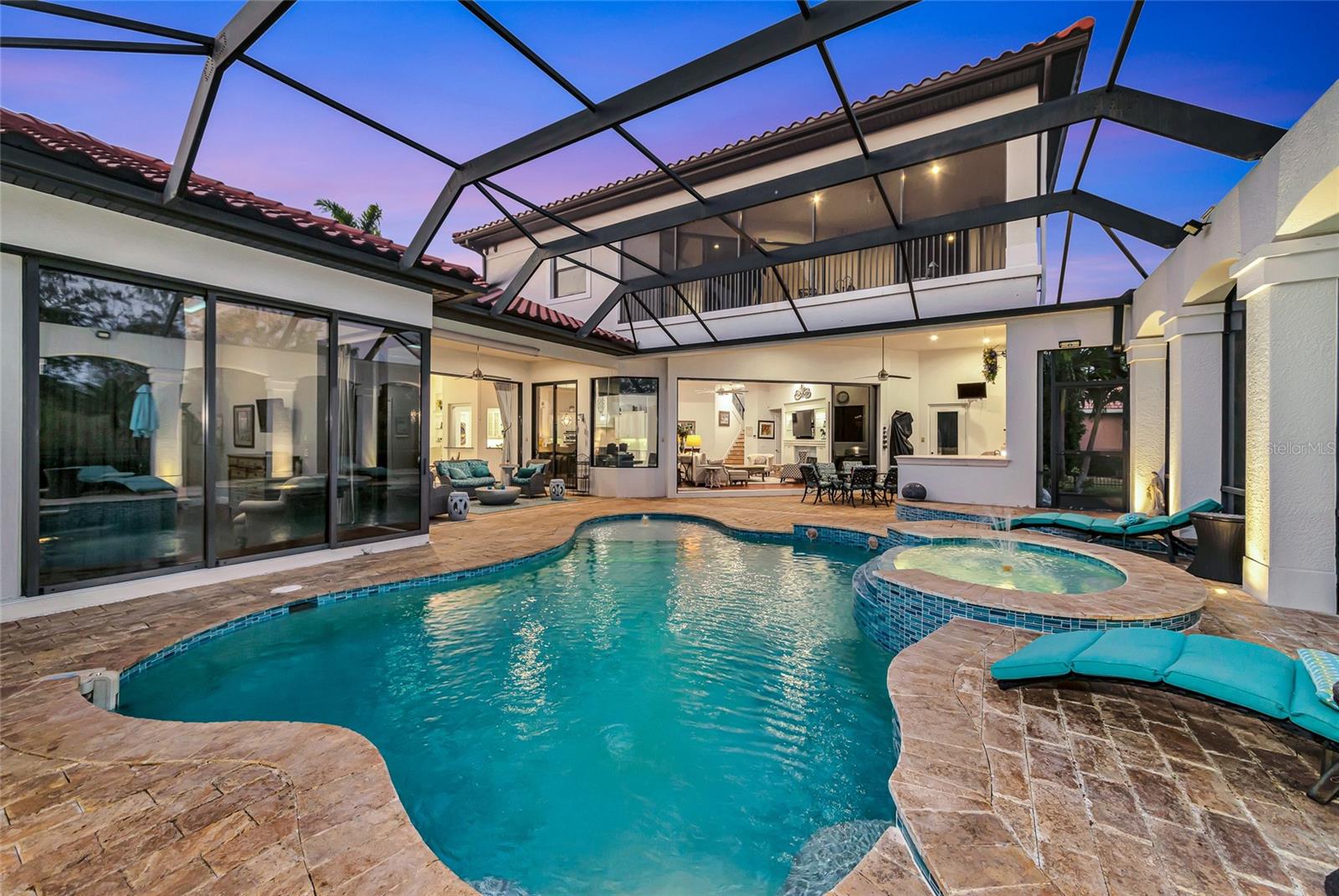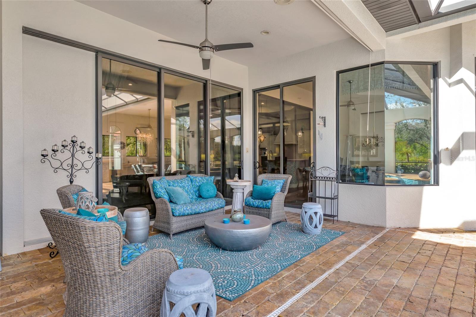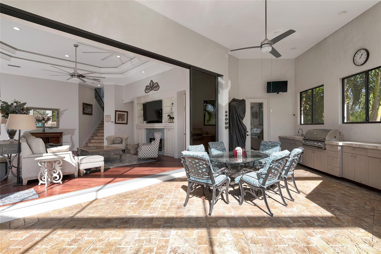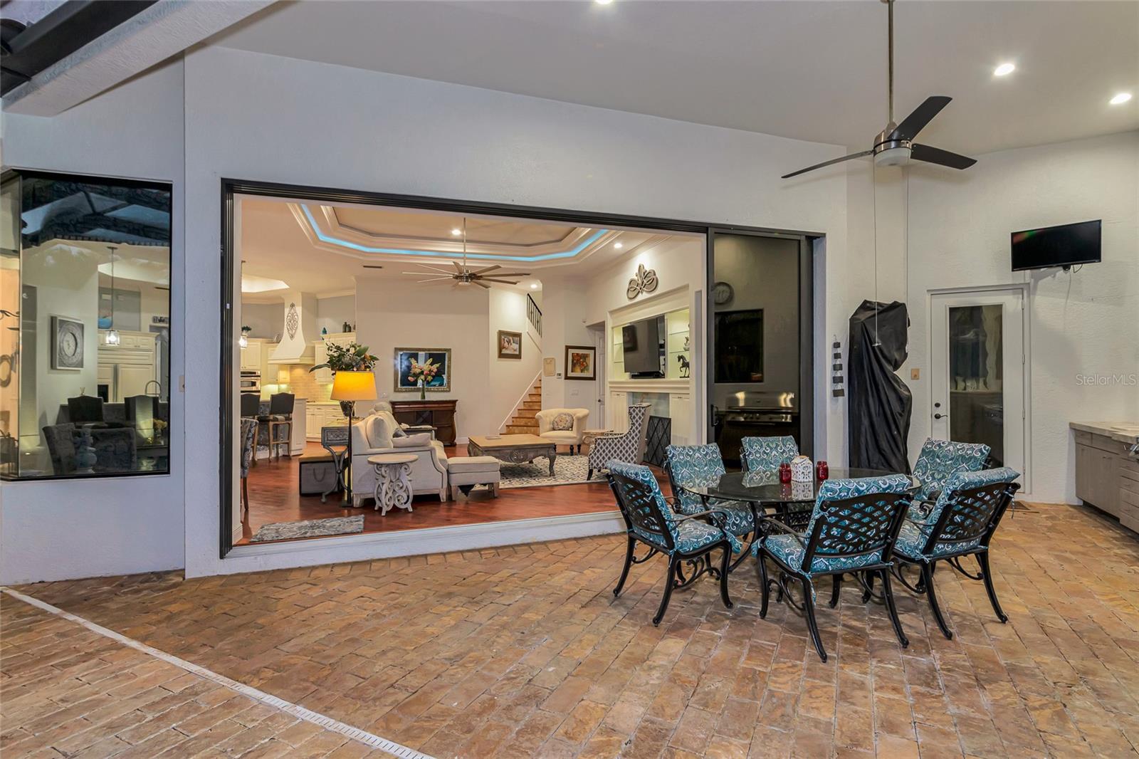 - Exterior: Dog Run, Lighting, Outdoor Kitchen, Sidewalk, Sliding Doors