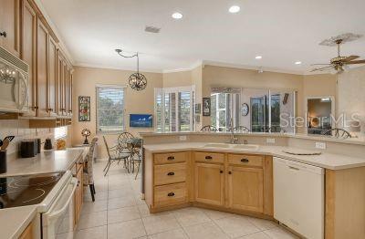 This spacious lakefront home with preserve views too, offers privacy and unforgettable sunsets from the expansive screened lanai. No neighbors behind you or on one side! Upgrades include a BRAND NEW TILE ROOF (2025), WHOLE HOUSE WATER TREATMENT SYSTEM, in-wall pest control, and NEW AIR CONDITIONER (2023). Enter into a large foyer with lighted art niche. Large living room and dining room for entertaining. Kitchen has a breakfast bar and is open to the family room. There is a breakfast nook with windows to the west facing the lake and preserve. Numerous built-ins the one bedroom provides more space. The primary bedroom has ample space with natural light from the windows and sliding doors. High and dry, NO FLOOD INSURANCE REQUIRED. Very affordable with NO CDD FEES and LOW HOA FEES. This home is very close to Mote Ranch's community amenities which include a Junior-Olympic swimming pool, club house, playground, and park. Located on the BRADEN RIVER in Manatee Country and residents get to enjoy their own FISHING PIER and KAYAK / CANOE LAUNCH directly onto the river. All amenities included in the LOW HOA FEES mentioned earlier. Located just minutes away from the vibrant University Town Center in Sarasota, with its shopping, various dining options, and entertainment venues, as well as Nathan Benderson Park (rowing, walking trails) in Sarasota. Nearby is the Palm Aire Country Club and University Park Country Club that feature golf, dining, and fitness options. Easy access to I-75, downtown Sarasota, and the area's award-winning beaches like Siesta Key.
