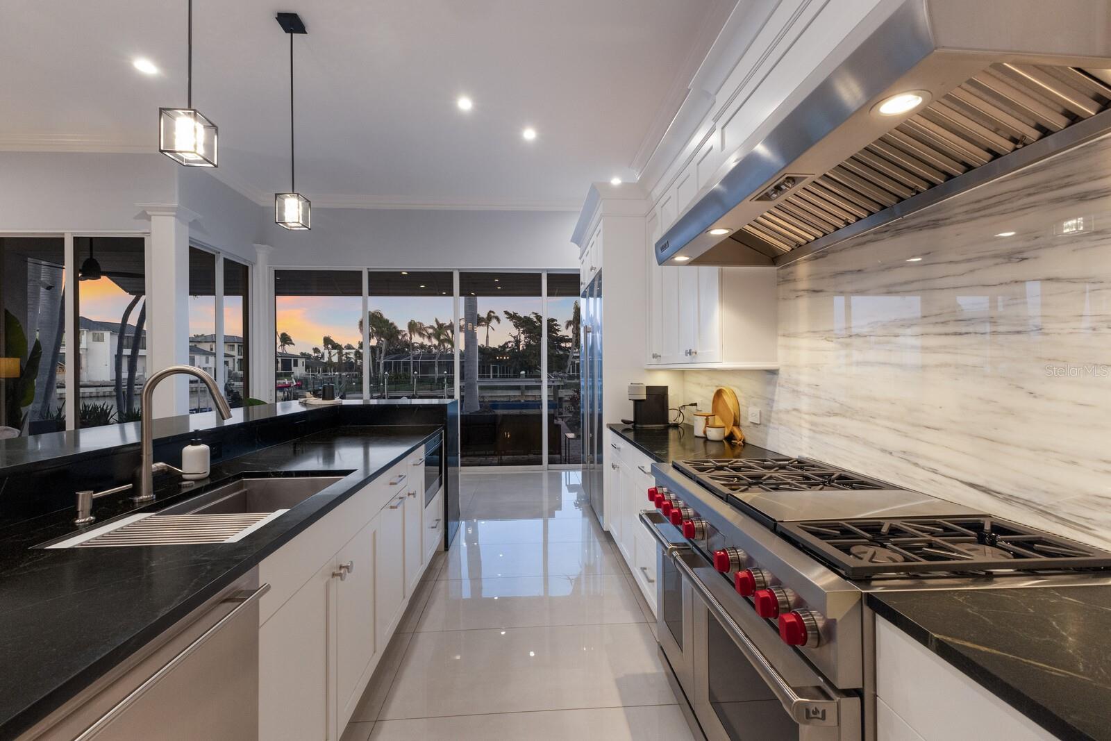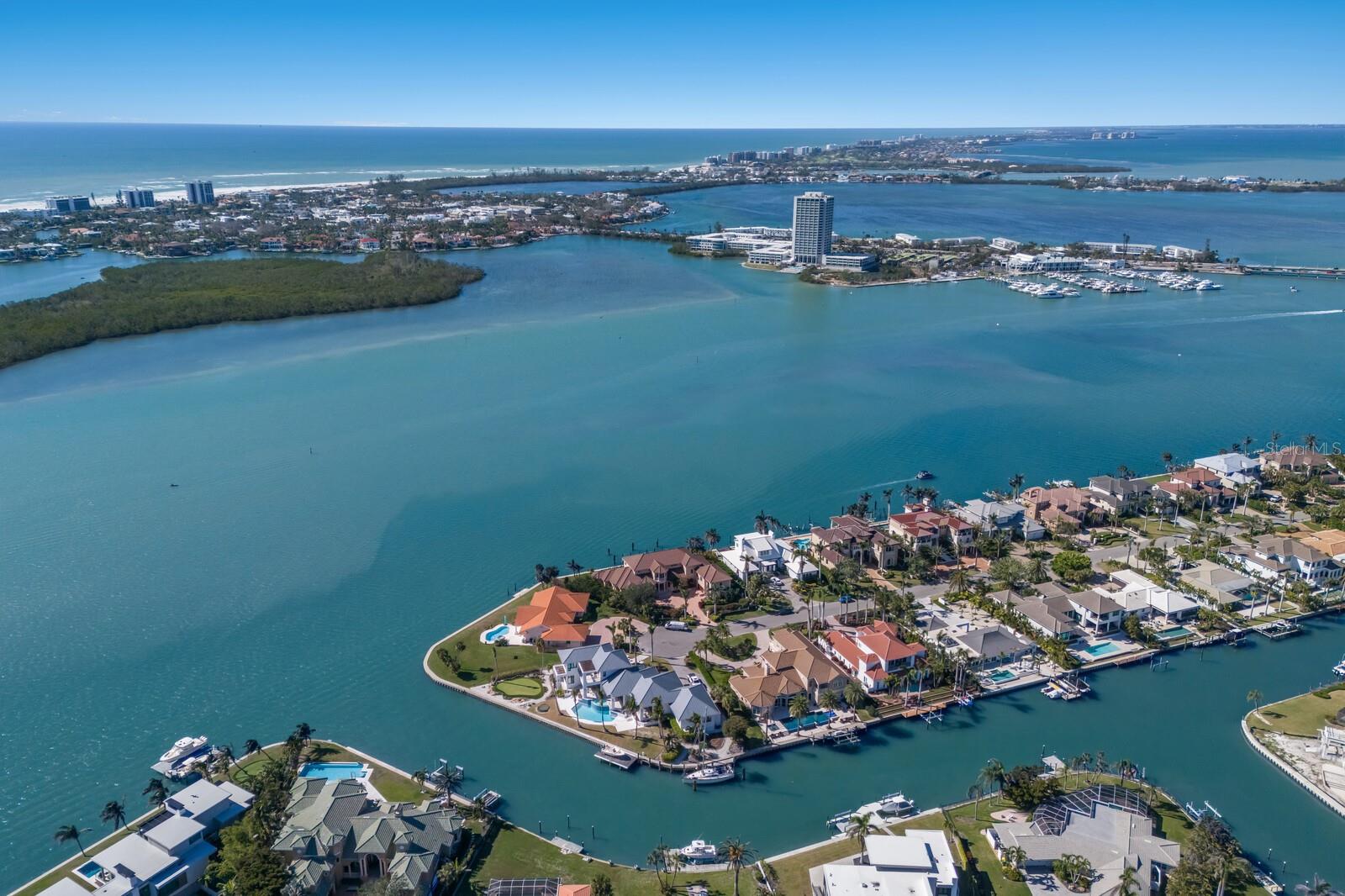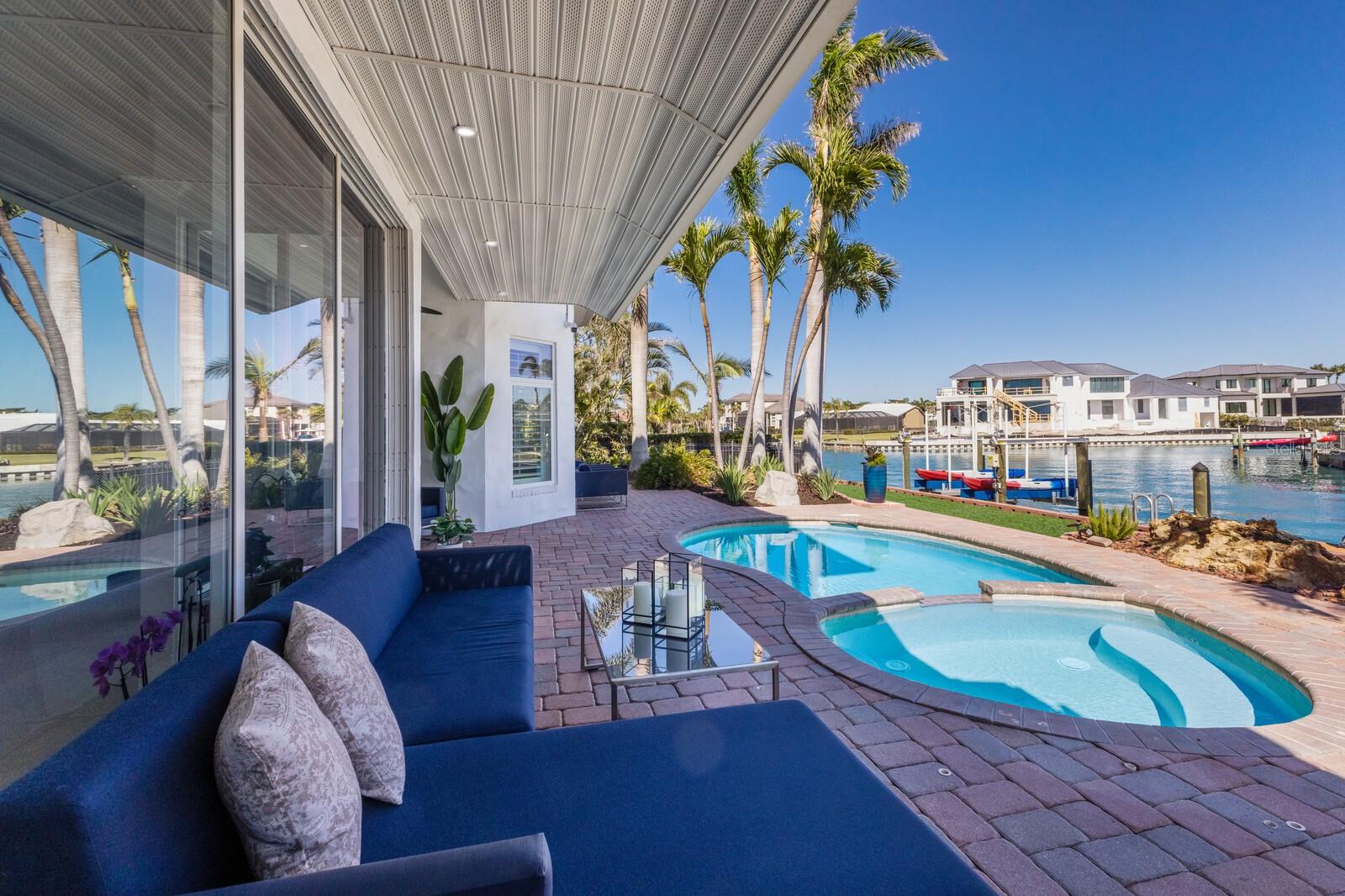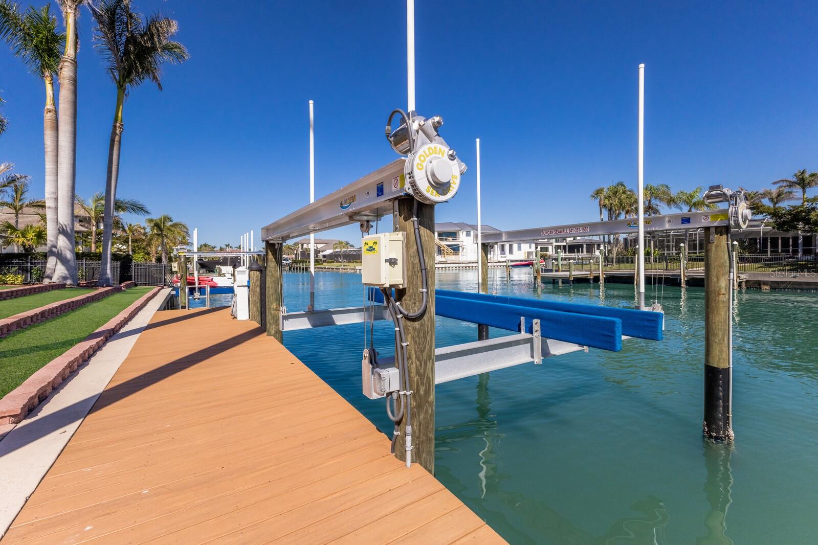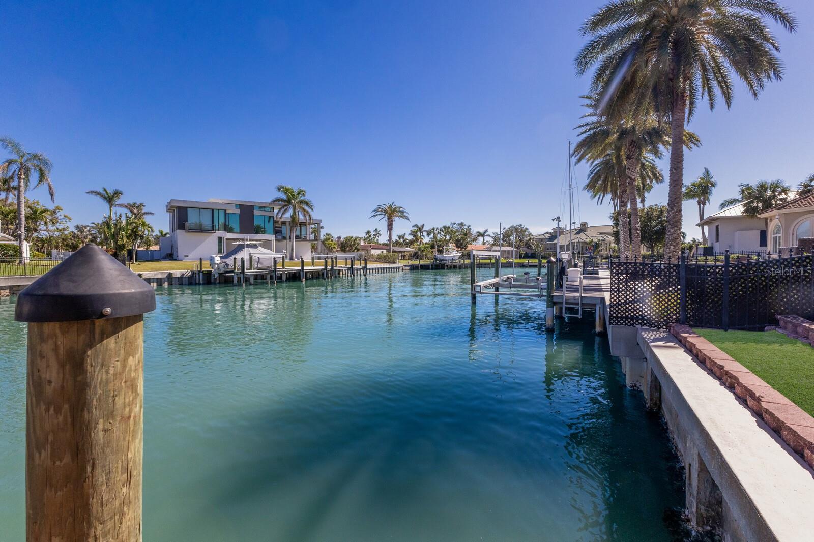 LOWEST PRICE PER SQ FT FOR WATERFRONT PROPERTY ON BIRD KEY! A magnificent sanctuary, 12' above sea level, perfectly positioned on the coveted West end of Dolphin Waterway, this home provides unmatched privacy and serenity, framed by 100 feet of SAILBOAT WATER FRONTAGE on Bird Key's DEEPEST AND WIDEST CANAL. BRAND NEW FLAT TILE ROOF was completed August 2025. Home was completely unscathed during the storms. Newly renovated 5,257 square feet of luxury, this architectural marvel features four bedrooms with two primary suites, one on the main and one on the second level, a yoga/media room, and four full baths. Upon entering, you'll be welcomed by an atmosphere of modern elegance with soaring ceilings and stunning 2' x 4' porcelain tile flooring. As you climb the luxurious custom modern floating metal staircase, uncover an awe-inspiring second primary suite and enter an expansive 33' x 23' retreat. This versatile space includes a full bath; two walk-in closets; sitting area, and access to a private balcony overlooking the sun-drenched pool area, DolphinWaterway, palm trees, and occasional pelican sighting perched on one of your TWO NEW DOCKS, one with a 20,000lb lift and one personal watercraft 4500lb lift with space for two jet skis or kayaks. The grand entrance effortlessly flows into the open dining and living rooms. An expansive redesigned contemporary kitchen is at the heart of the home, a chef's dream outfitted with stainless steel Wolf Pro Series appliances, including a dual-fed six-burner natural gas stove with an electric oven, vent, and a sleek drawer microwave. A Sub-Zero Designer Series refrigerator/freezer, Sub Zero dual-controlled refrigerators, and a Cove dishwasher famous for its whisper-quiet operation enhance your culinary experience. The soapstone waterfall island with seating for eight is highlighted by a luxurious Brazilian Marble backsplash, and solid wood Campbell cabinetry adds a touch of timeless elegance. A custom-designed kitchen pantry room and storage or prep area perfect for private parties provide all the extra space needed to keep your kitchen organized, efficient, and clutter-free. The open kitchen and family rooms make this the perfect space for entertaining guests and watching your favorite movie or sporting event. Highlighted by a warm tile accent wall and crown molding, you can enjoy the sweeping waterfront views and stunning skies from this inviting space. Retreat to the private main floor suite through double doors into a water-view sanctuary with a primary bath featuring beautiful porcelain wood texture tile, contemporary lighting, soapstone counters, dual sinks, and a spacious glass-enclosed shower. A custom-built walk-in closet further enhances this suite. Two additional bedrooms and two resort-style baths are situated on the opposite side of this split plan. An additional flex space on the second level is perfect for a theater room, yoga room, or office. Situated on a secluded cul-de-sac with two side-load garages and space for four cars. This exquisite, gated residence offers immediate access to the pristine waters of Sarasota Bay and the Gulf. Perfectly situated near St. Armands Circle, Bird Key Yacht Club, and vibrant downtown Sarasota, you will enjoy coastal living and the Bird Key lifestyle all year round. Paradise is found in this exceptional Sarasota sanctuary. Make this coastal haven your new home!
