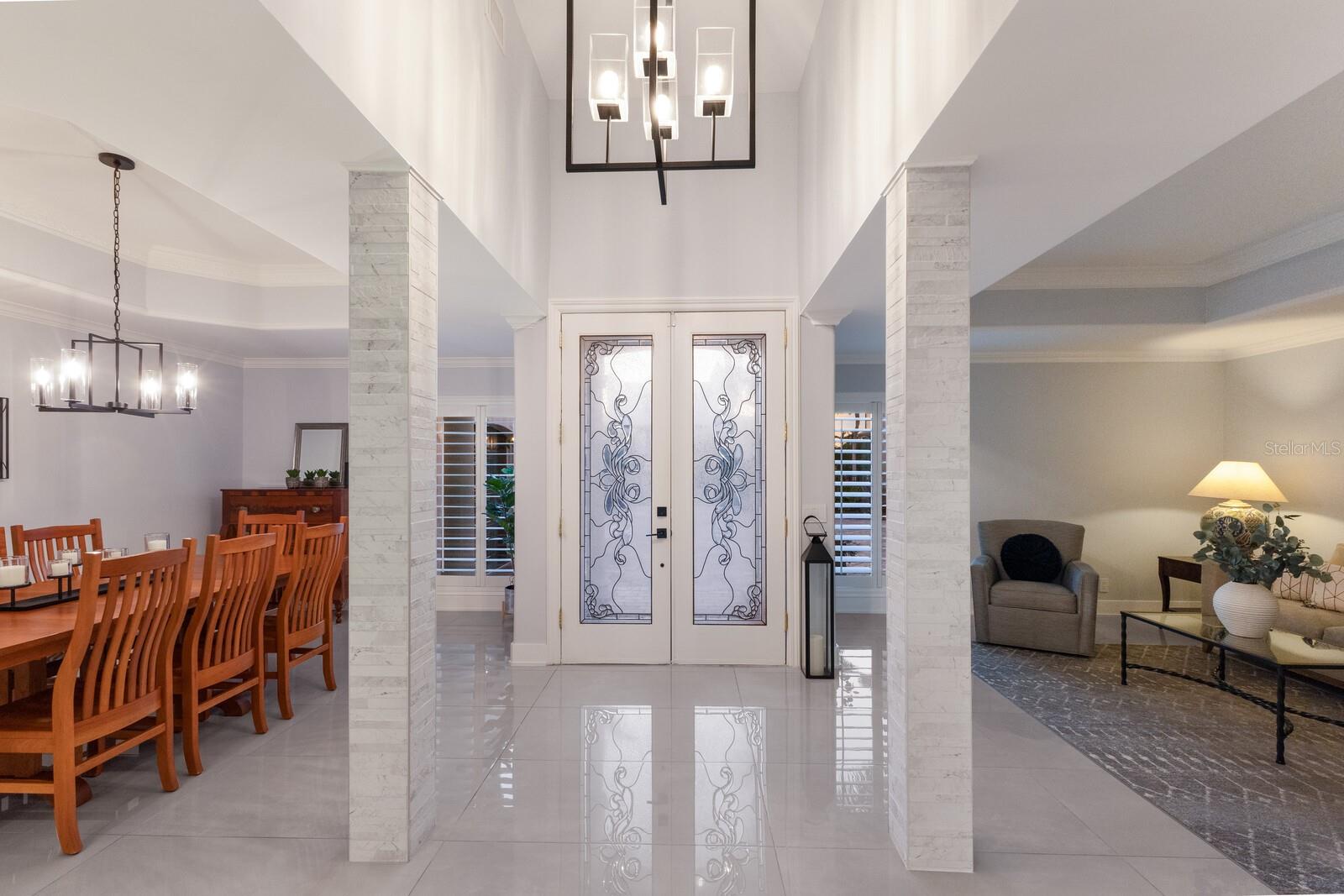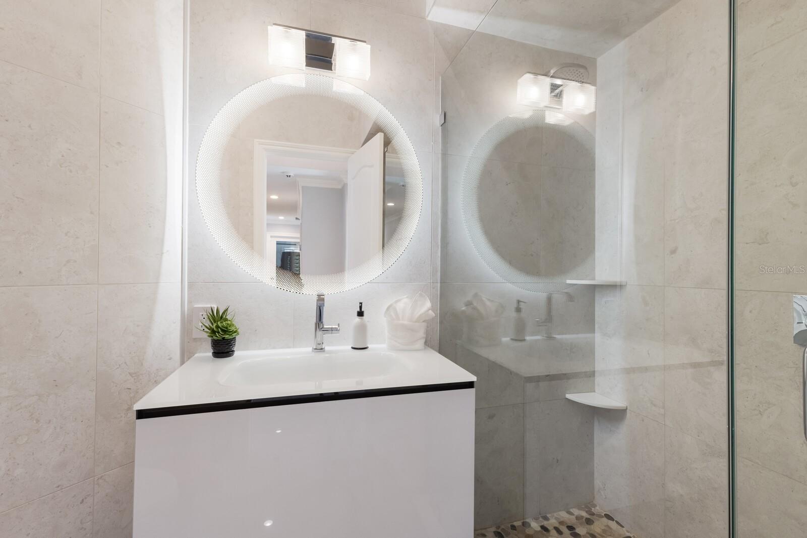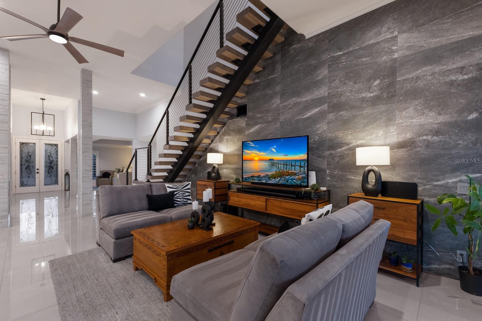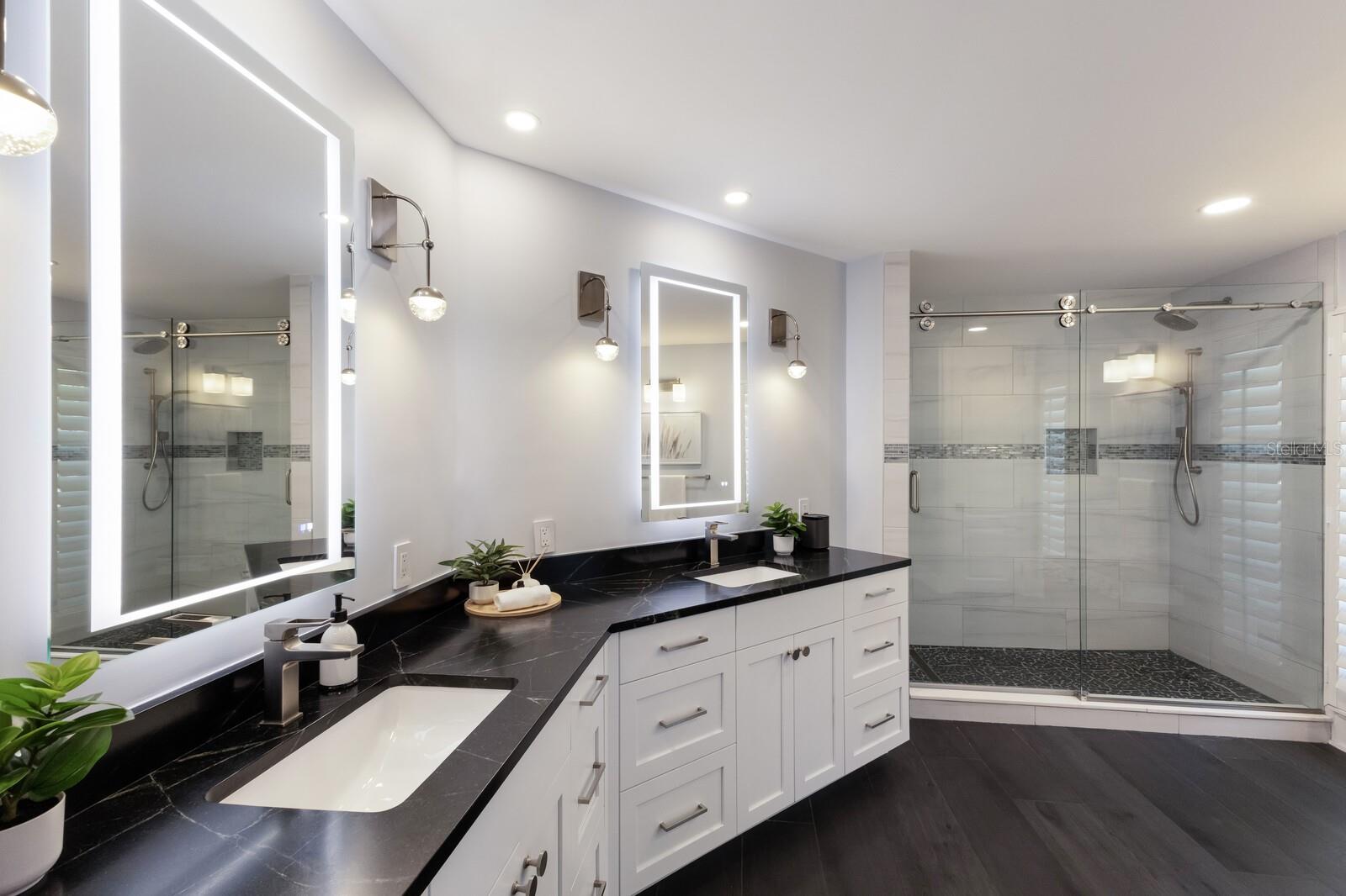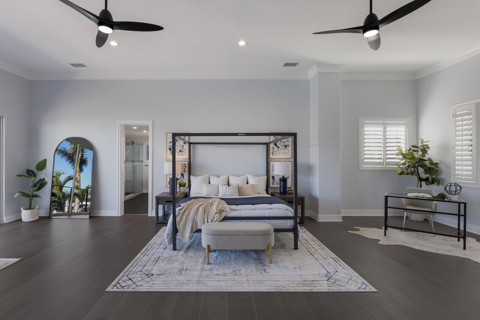 LOWEST PRICE PER SQ FT FOR WATERFRONT PROPERTY ON BIRD KEY! A magnificent sanctuary, 12' above sea level, perfectly positioned on the coveted West end of Dolphin Waterway, this home provides unmatched privacy and serenity, framed by 100 feet of SAILBOAT WATER FRONTAGE on Bird Key's DEEPEST AND WIDEST CANAL. BRAND NEW FLAT TILE ROOF was completed August 2025. Home was completely unscathed during the storms. Newly renovated 5,257 square feet of luxury, this architectural marvel features four bedrooms with two primary suites, one on the main and one on the second level, a yoga/media room, and four full baths. Upon entering, you'll be welcomed by an atmosphere of modern elegance with soaring ceilings and stunning 2' x 4' porcelain tile flooring. As you climb the luxurious custom modern floating metal staircase, uncover an awe-inspiring second primary suite and enter an expansive 33' x 23' retreat. This versatile space includes a full bath; two walk-in closets; sitting area, and access to a private balcony overlooking the sun-drenched pool area, DolphinWaterway, palm trees, and occasional pelican sighting perched on one of your TWO NEW DOCKS, one with a 20,000lb lift and one personal watercraft 4500lb lift with space for two jet skis or kayaks. The grand entrance effortlessly flows into the open dining and living rooms. An expansive redesigned contemporary kitchen is at the heart of the home, a chef's dream outfitted with stainless steel Wolf Pro Series appliances, including a dual-fed six-burner natural gas stove with an electric oven, vent, and a sleek drawer microwave. A Sub-Zero Designer Series refrigerator/freezer, Sub Zero dual-controlled refrigerators, and a Cove dishwasher famous for its whisper-quiet operation enhance your culinary experience. The soapstone waterfall island with seating for eight is highlighted by a luxurious Brazilian Marble backsplash, and solid wood Campbell cabinetry adds a touch of timeless elegance. A custom-designed kitchen pantry room and storage or prep area perfect for private parties provide all the extra space needed to keep your kitchen organized, efficient, and clutter-free. The open kitchen and family rooms make this the perfect space for entertaining guests and watching your favorite movie or sporting event. Highlighted by a warm tile accent wall and crown molding, you can enjoy the sweeping waterfront views and stunning skies from this inviting space. Retreat to the private main floor suite through double doors into a water-view sanctuary with a primary bath featuring beautiful porcelain wood texture tile, contemporary lighting, soapstone counters, dual sinks, and a spacious glass-enclosed shower. A custom-built walk-in closet further enhances this suite. Two additional bedrooms and two resort-style baths are situated on the opposite side of this split plan. An additional flex space on the second level is perfect for a theater room, yoga room, or office. Situated on a secluded cul-de-sac with two side-load garages and space for four cars. This exquisite, gated residence offers immediate access to the pristine waters of Sarasota Bay and the Gulf. Perfectly situated near St. Armands Circle, Bird Key Yacht Club, and vibrant downtown Sarasota, you will enjoy coastal living and the Bird Key lifestyle all year round. Paradise is found in this exceptional Sarasota sanctuary. Make this coastal haven your new home!