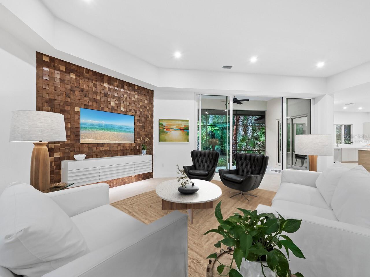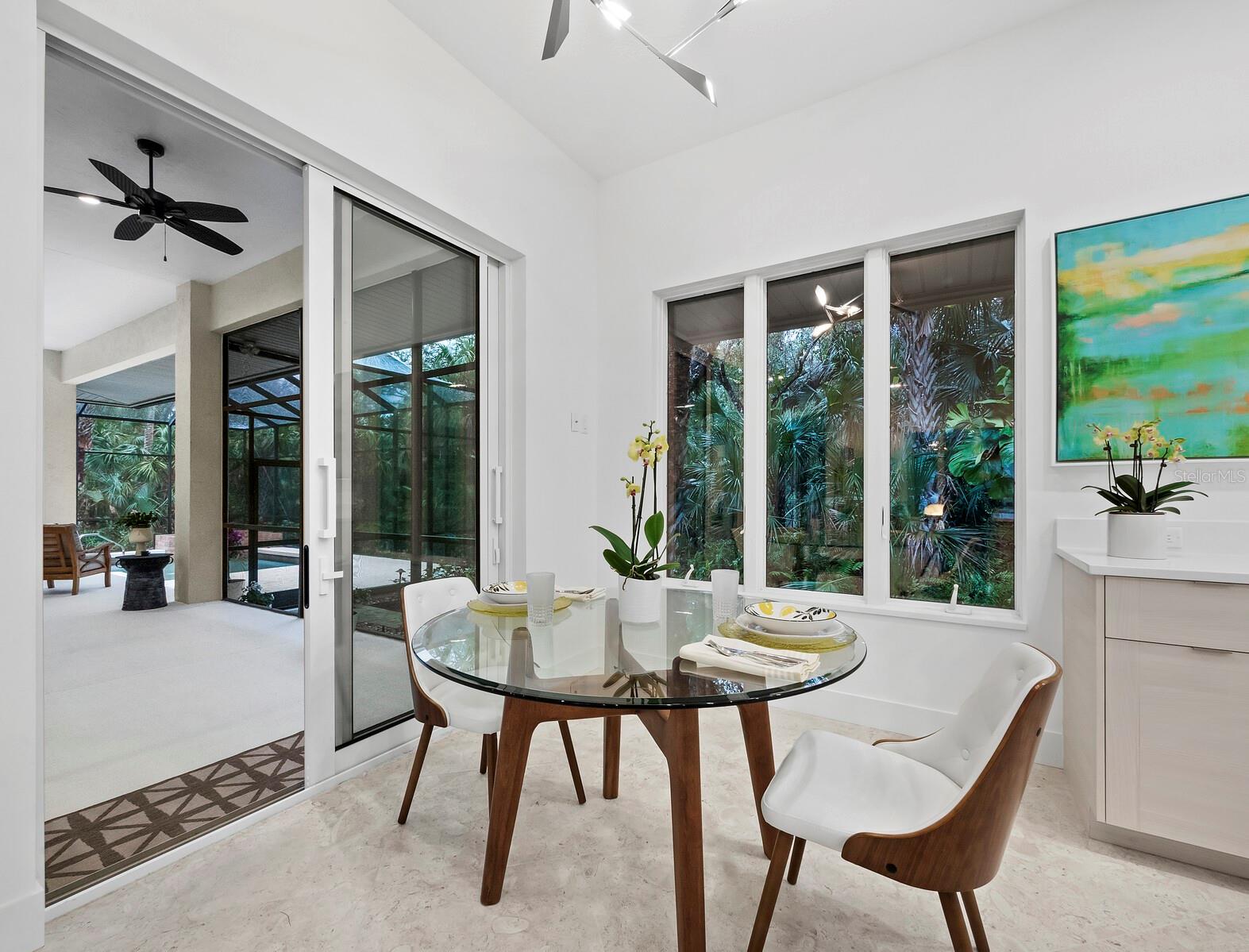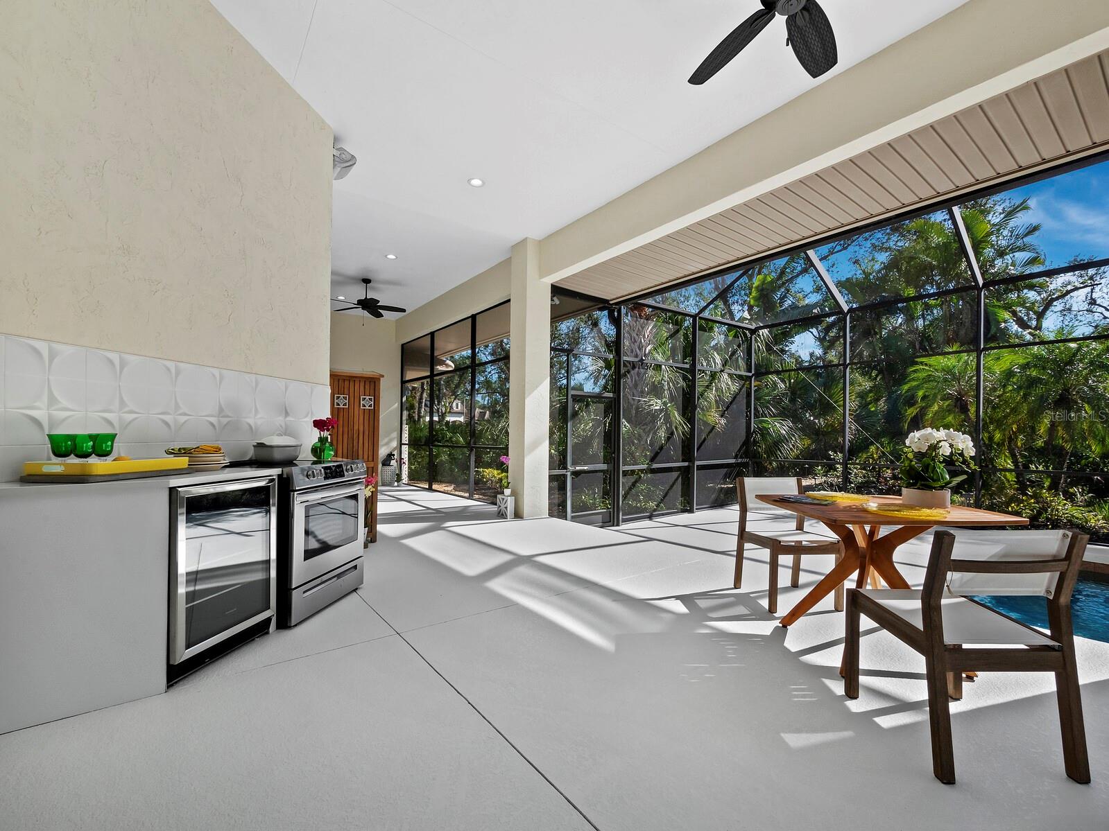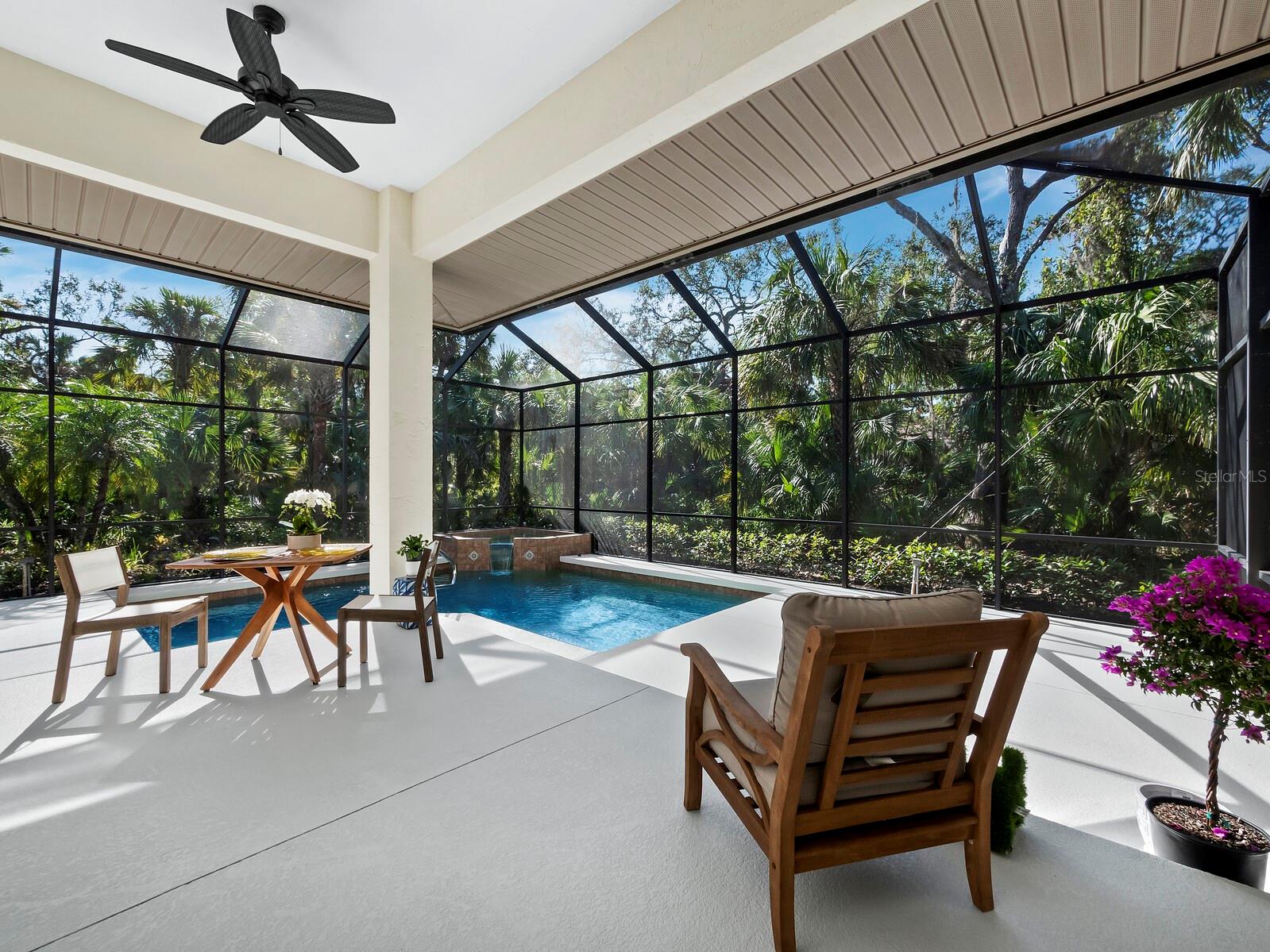 COMPLETELY RENOVATED and BETTER THAN NEW, this elegant executive home was taken down to the studs and rebuilt by Sarasota's premier builder, Jonas Yoder Custom Homes (2021-2022). No expense was spared in this full-scale transformation. Situated on nearly ONE ACRE of lush private preserve with xeriscape gardens and native Florida hammock, this home is a rare sanctuary in a high-demand, gated community--designed to offer protection from wind, rain, and drought. With nearly 3,000 sq. ft. under air and 4,293 sq. ft. under roof, this 4-bedroom, 3-bath split floorplan features soaring 12-ft ceilings, open-concept living, and top-tier finishes throughout. Highlights include Cambria Quartz countertops, custom solid wood cabinetry, trim, and doors, brand-new Bosch stainless steel appliances, imported 24" porcelain tile floors, new Trane AC/HVAC with heat pump, and a luxurious heated pool and spa with an extended screened patio and full outdoor kitchen. The renovation covered everything: studs, insulation, plumbing, electrical, subfloor, hurricane-rated doors and garage doors, impact-resistant windows, and roof deck. A whole-house liquid-cooled KOHLER GENERATOR with automatic transfer switch and 500-gallon propane tank ensures peace of mind during any storm. Other upgrades include a new concrete driveway with custom pavers, updated irrigation system and pump, low-voltage path lighting, and new stone walkways--all designed for durability and function. Thoughtfully re-engineered for modern living and efficiency, the home includes 10-ft hurricane-rated sliding glass doors, steel-reinforced entry and garage doors, clear Lexan storm shutters, open-cell spray foam insulation in attic and garage, new ductwork and breaker panels, and a complete re-pipe using PEX plumbing. Bathrooms were rebuilt with porcelain-tiled walk-in showers, Moen fixtures, and updated vanities. Energy efficiency and comfort are ensured with 3-zone smart thermostats, LED recessed lighting, and new attic ductwork. A moisture barrier under the new porcelain floors adds further protection and longevity. Even the drainage, gutters, and downspouts were redesigned for optimal performance. The 2018 roof replacement and structural fortifications make this home truly storm-season ready. Unlike superficial flips, this renovation was executed to the highest standards, with long-term value, safety, and low operating costs in mind. Located in the 24/7 guard-gated community of Laurel Oak Estates & Country Club--one of Sarasota's most prestigious neighborhoods--residents enjoy large estate lots, walkable sidewalks, mature landscaping, and optional social, tennis, and golf memberships. This home is PRICED BELOW REPLACEMENT COST and located in a non-evacuation zone. It's ready for immediate occupancy--no hidden costs, no delays, and nothing left to do but move in. Schedule your private tour today and experience modern luxury, total peace of mind, and the comfort of a truly turnkey home.