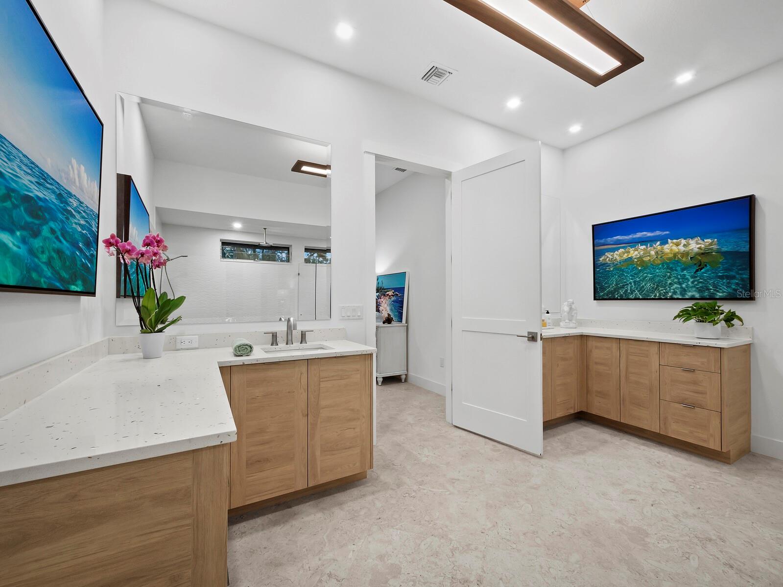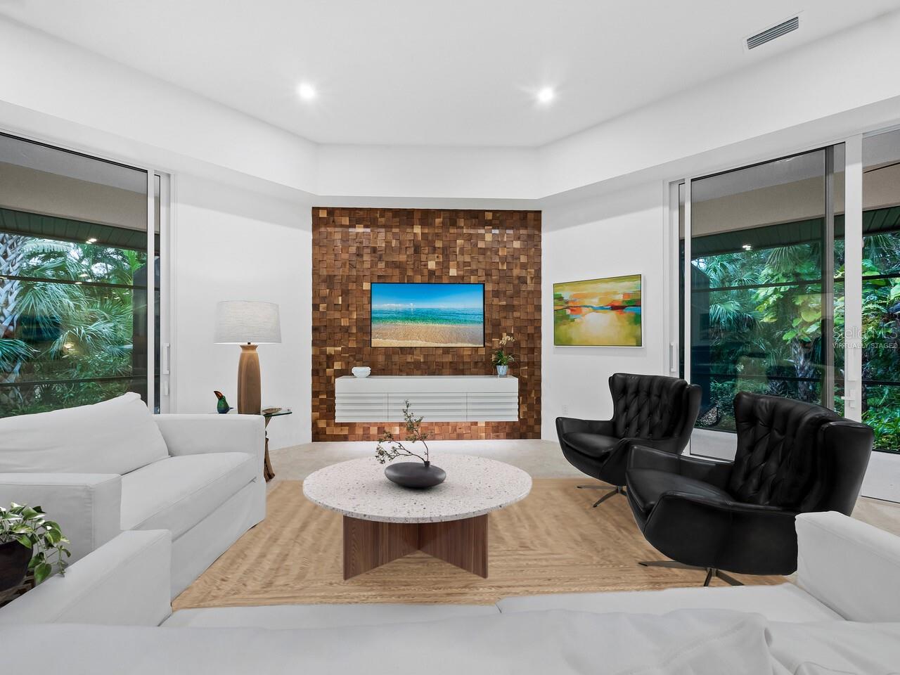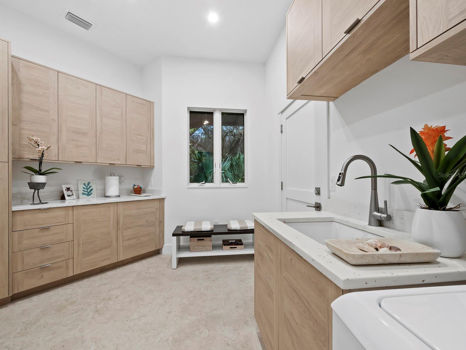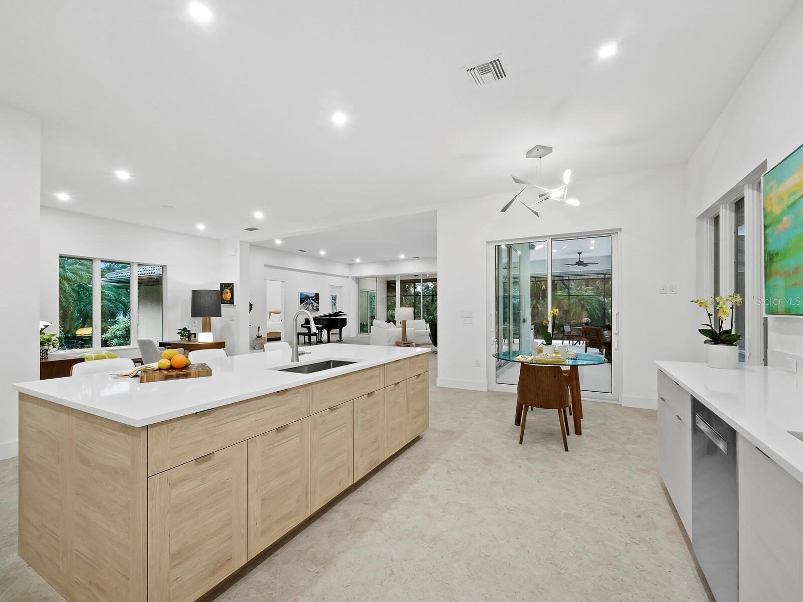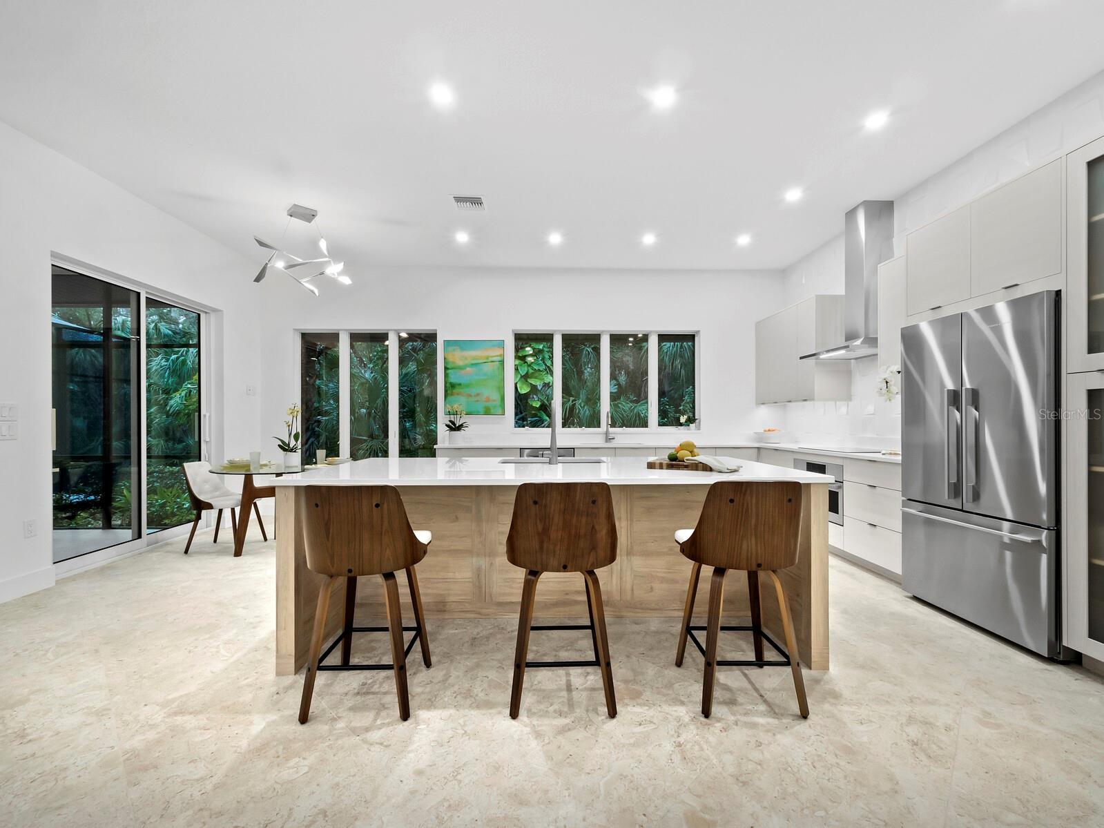 COMPLETELY RENOVATED and BETTER THAN NEW, this elegant executive home was taken down to the studs and rebuilt by Sarasota's premier builder, Jonas Yoder Custom Homes (2021-2022). No expense was spared in this full-scale transformation. Situated on nearly ONE ACRE of lush private preserve with xeriscape gardens and native Florida hammock, this home is a rare sanctuary in a high-demand, gated community--designed to offer protection from wind, rain, and drought. With nearly 3,000 sq. ft. under air and 4,293 sq. ft. under roof, this 4-bedroom, 3-bath split floorplan features soaring 12-ft ceilings, open-concept living, and top-tier finishes throughout. Highlights include Cambria Quartz countertops, custom solid wood cabinetry, trim, and doors, brand-new Bosch stainless steel appliances, imported 24" porcelain tile floors, new Trane AC/HVAC with heat pump, and a luxurious heated pool and spa with an extended screened patio and full outdoor kitchen. The renovation covered everything: studs, insulation, plumbing, electrical, subfloor, hurricane-rated doors and garage doors, impact-resistant windows, and roof deck. A whole-house liquid-cooled KOHLER GENERATOR with automatic transfer switch and 500-gallon propane tank ensures peace of mind during any storm. Other upgrades include a new concrete driveway with custom pavers, updated irrigation system and pump, low-voltage path lighting, and new stone walkways--all designed for durability and function. Thoughtfully re-engineered for modern living and efficiency, the home includes 10-ft hurricane-rated sliding glass doors, steel-reinforced entry and garage doors, clear Lexan storm shutters, open-cell spray foam insulation in attic and garage, new ductwork and breaker panels, and a complete re-pipe using PEX plumbing. Bathrooms were rebuilt with porcelain-tiled walk-in showers, Moen fixtures, and updated vanities. Energy efficiency and comfort are ensured with 3-zone smart thermostats, LED recessed lighting, and new attic ductwork. A moisture barrier under the new porcelain floors adds further protection and longevity. Even the drainage, gutters, and downspouts were redesigned for optimal performance. The 2018 roof replacement and structural fortifications make this home truly storm-season ready. Unlike superficial flips, this renovation was executed to the highest standards, with long-term value, safety, and low operating costs in mind. Located in the 24/7 guard-gated community of Laurel Oak Estates & Country Club--one of Sarasota's most prestigious neighborhoods--residents enjoy large estate lots, walkable sidewalks, mature landscaping, and optional social, tennis, and golf memberships. This home is PRICED BELOW REPLACEMENT COST and located in a non-evacuation zone. It's ready for immediate occupancy--no hidden costs, no delays, and nothing left to do but move in. Schedule your private tour today and experience modern luxury, total peace of mind, and the comfort of a truly turnkey home.