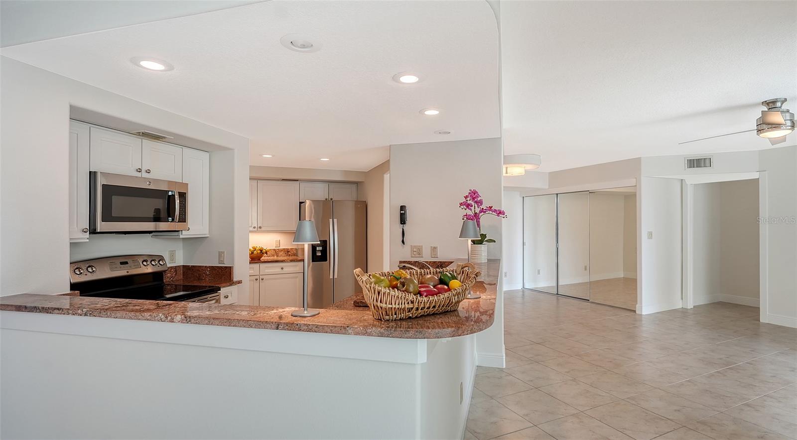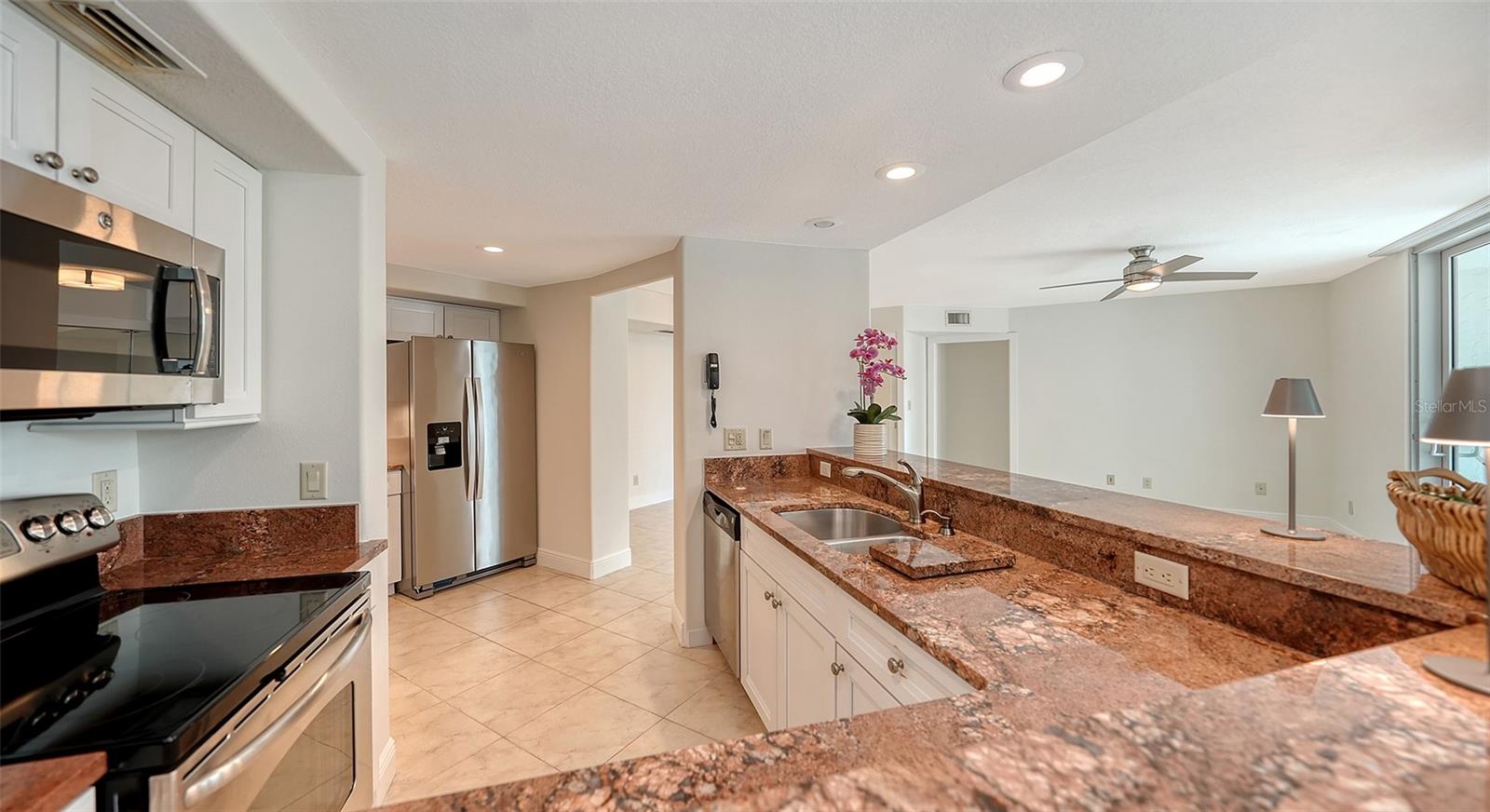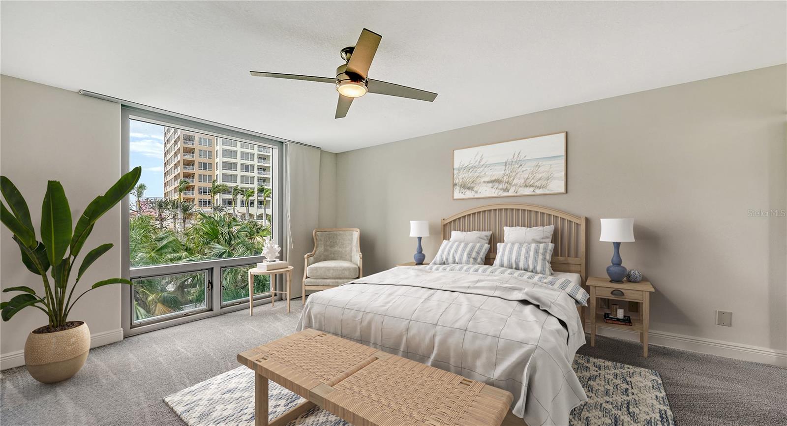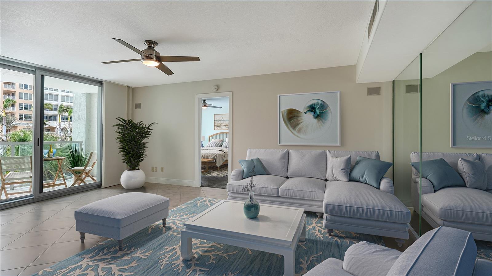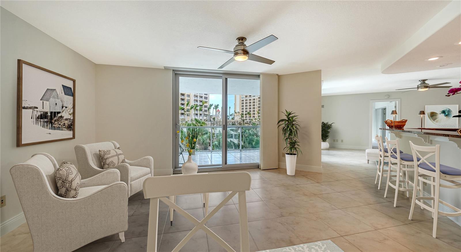 One or more photo(s) has been virtually staged. Discover the unique charm of One Watergate, in the prestigious Ritz Carlton & Westin Hotel complex in downtown Sarasota. This stunning two-bedroom, two-bath condominium offers an ideal blend of comfort and convenience, all just a moment away from Sarasota Bay, Marina Jack, downtown's vibrant main streets, the Farmers Market and iconic John Ringling Bridge. St. Armands Circle is a healthy distance away, providing easy access to delightful shopping and dining. On the third floor, our 1,575-square-foot residence features a spacious, open floorplan with a large balcony of 206 square feet overlooking the lush, park-like grounds and Ritz Carlton buildings. The well-designed layout places the kitchen at the heart of the home, with the living room and primary suite on one side, and the dining and family room, guest bedroom and hall bath on the other. Two sets of sliding glass doors create a seamless connection to the balcony, ideal for entertaining and relaxation. One Watergate stands out with its exceptional amenities, including two tennis and two pickleball courts over the garage structure, a 20-by-40-foot pool, a beautifully appointed patio with two grilling areas and a new fitness center. The building is responsibly maintained with on-site management, with storm-resistant doors and windows, and has passed its Milestone Engineering report. A comprehensive lobby and amenity room renovation is underway, ensuring the building remains up to date and in line with market standards. Embrace the best of Sarasota living in this remarkable condominium, where convenience, comfort and a prime location come together seamlessly.