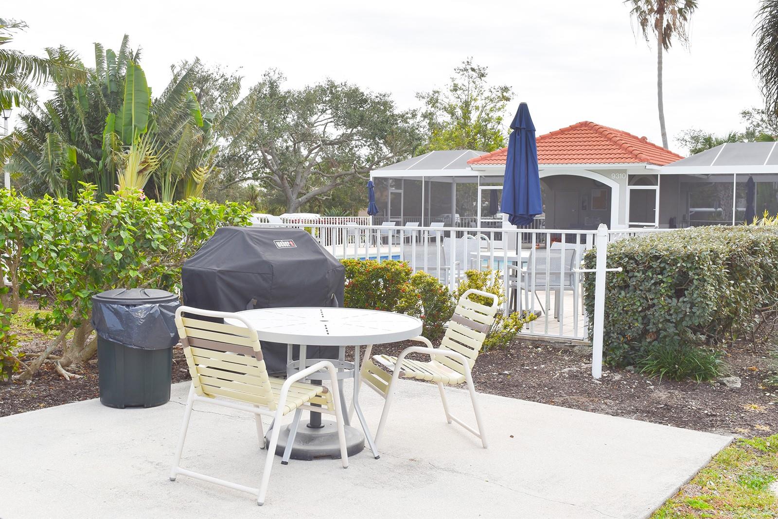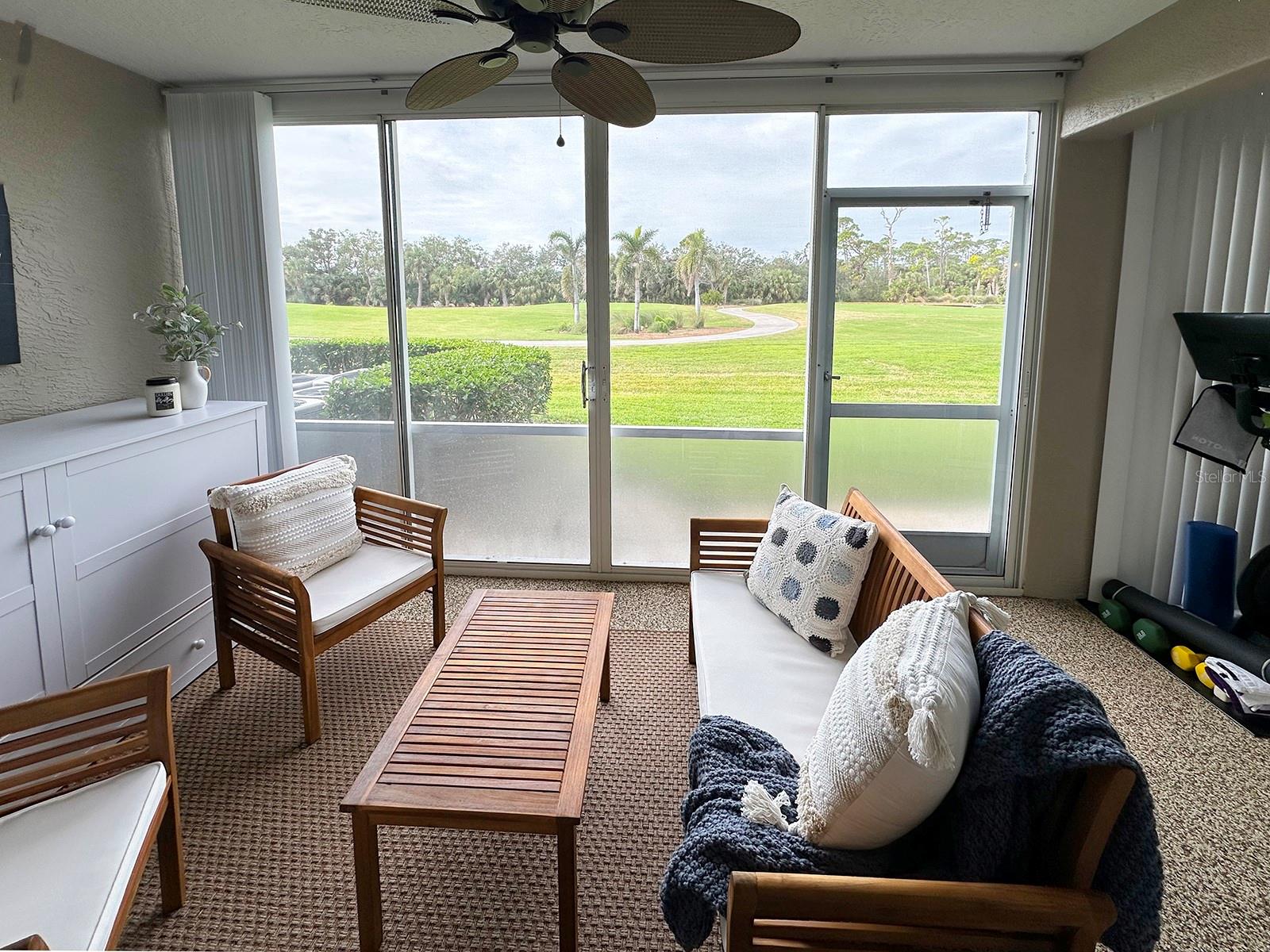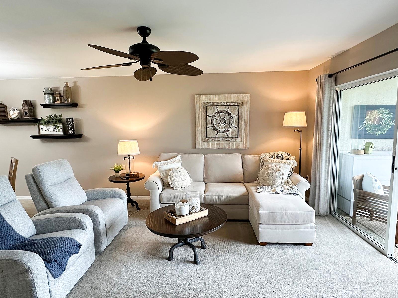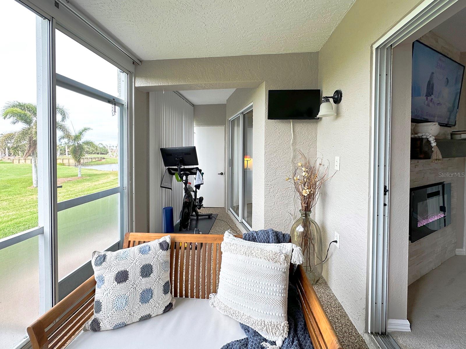 Your dream lifestyle awaits at Stoneybrook Golf and Country! Discover the perfect blend of comfort, convenience and community with this stunning 2 bedroom, 2 bath condo, ideally located on the first floor - no stairs to navigate! Tastefully furnished, this thoughtfully designed home offers a spacious living area featuring a serene, custom corner fireplace, perfect for relaxing evenings. Enjoy breathtaking, long views of the golf course and pond, all from a glass enclosed lanai with a bonus storage area. The redesigned kitchen is a chef's delight with the center island, abundance of quartz countertops and cabinets, enhanced by a clever wall removal for an open, modern feel. The master suite retreat has an updated bath with a large walk-in shower, vanity and generous walk-in closet. The guest ready second bedroom is ideal for hosting, while the attractive laundry rooms adds extra storage and convenience. Murphy bed on lanai for extra guests. The community perks, included with your purchase, are beyond compare! Stoneybrook offers an exceptional array of amenities to enrich your lifestyle. Whether you are a sports enthusiast or enjoy social gatherings, you will find something for everyone. The recreational facilities include golf (totally renovated and redesigned), tennis, pickleball, bocce, swimming, and a state-of-the-art fitness center. The active social calendar has monthly Bingo, Trivia, Mahjong, yoga, book clubs, movie nights and more. You will dine in style at the full-service restaurant or join one of many events. Nestled within 500+ acres of natural beauty, Stoneybrook is a sanctuary for wildlife, including birds and other native species. Whether you are seeking a year-round residence or a smart investment property with a liberal rental policy, this condo is your gateway to resort-style living at its finest.