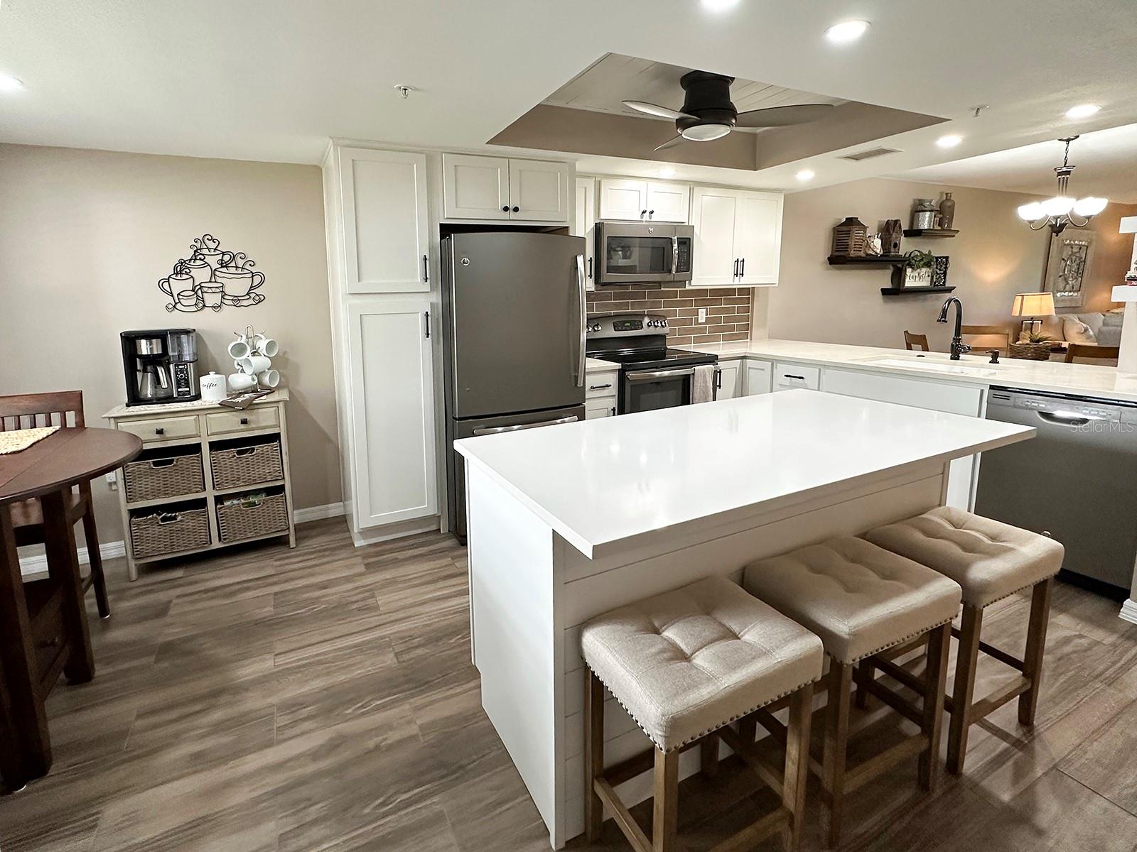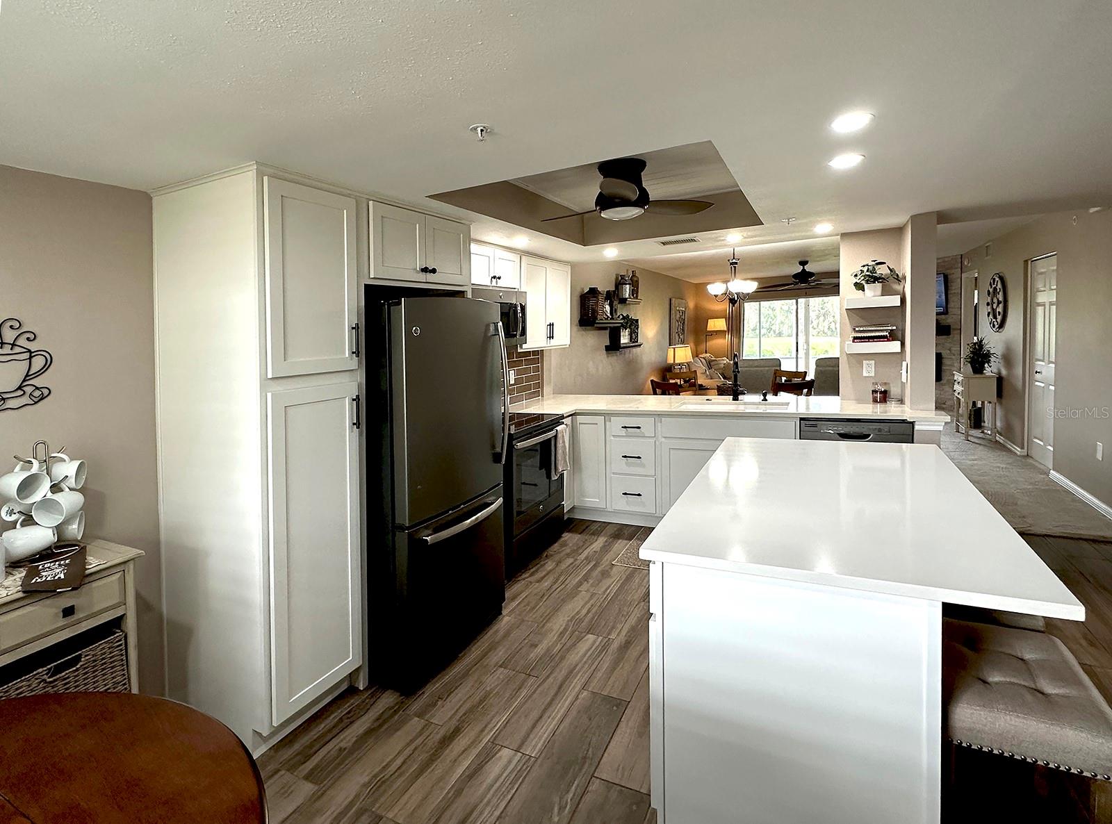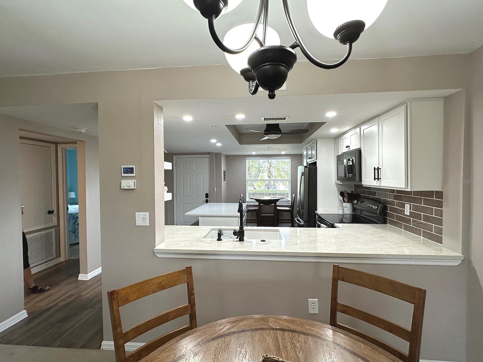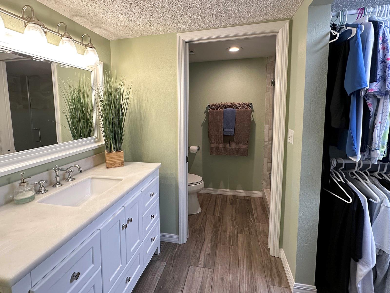 Your dream lifestyle awaits at Stoneybrook Golf and Country! Discover the perfect blend of comfort, convenience and community with this stunning 2 bedroom, 2 bath condo, ideally located on the first floor - no stairs to navigate! Tastefully furnished, this thoughtfully designed home offers a spacious living area featuring a serene, custom corner fireplace, perfect for relaxing evenings. Enjoy breathtaking, long views of the golf course and pond, all from a glass enclosed lanai with a bonus storage area. The redesigned kitchen is a chef's delight with the center island, abundance of quartz countertops and cabinets, enhanced by a clever wall removal for an open, modern feel. The master suite retreat has an updated bath with a large walk-in shower, vanity and generous walk-in closet. The guest ready second bedroom is ideal for hosting, while the attractive laundry rooms adds extra storage and convenience. Murphy bed on lanai for extra guests. The community perks, included with your purchase, are beyond compare! Stoneybrook offers an exceptional array of amenities to enrich your lifestyle. Whether you are a sports enthusiast or enjoy social gatherings, you will find something for everyone. The recreational facilities include golf (totally renovated and redesigned), tennis, pickleball, bocce, swimming, and a state-of-the-art fitness center. The active social calendar has monthly Bingo, Trivia, Mahjong, yoga, book clubs, movie nights and more. You will dine in style at the full-service restaurant or join one of many events. Nestled within 500+ acres of natural beauty, Stoneybrook is a sanctuary for wildlife, including birds and other native species. Whether you are seeking a year-round residence or a smart investment property with a liberal rental policy, this condo is your gateway to resort-style living at its finest.