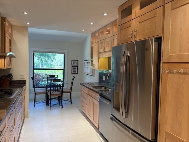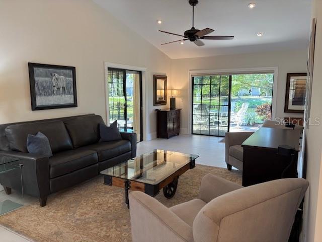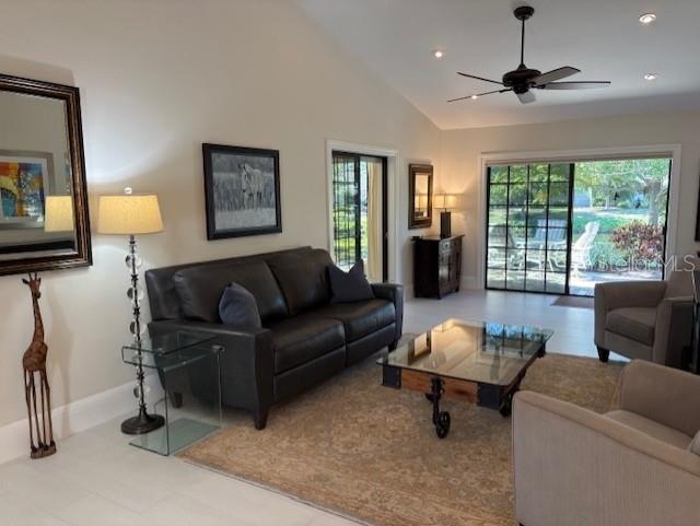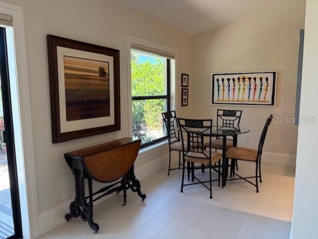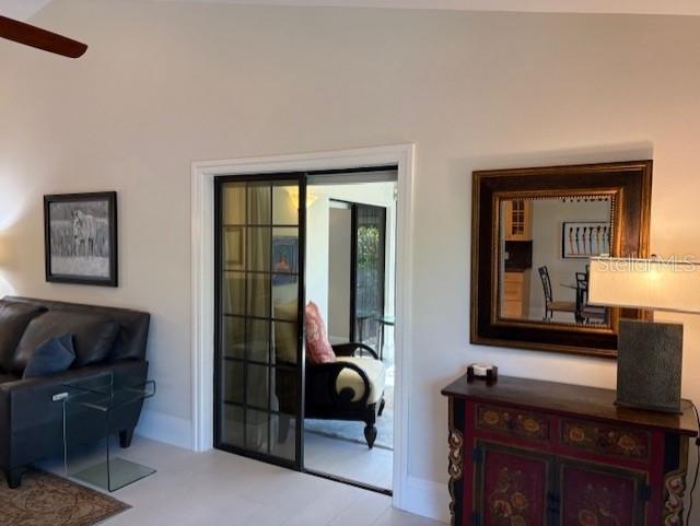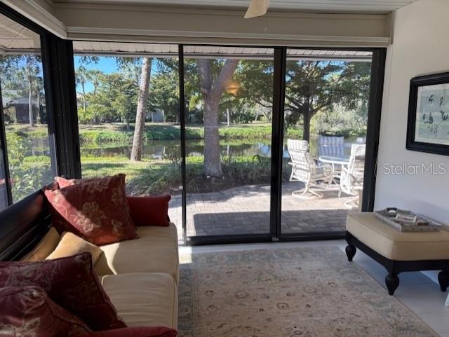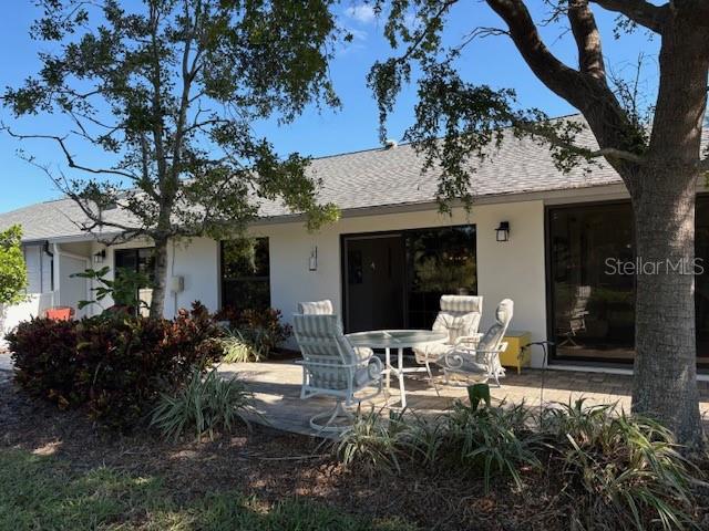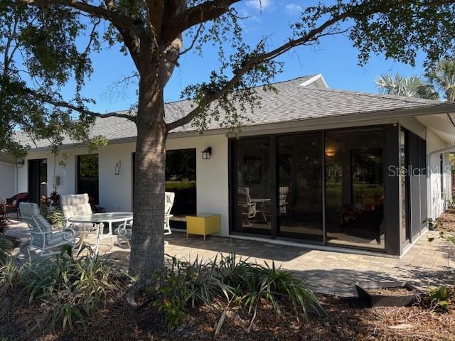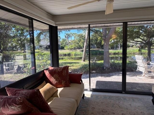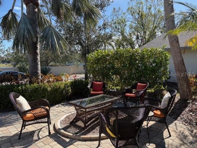 Rare opportunity- a 2 bed, 2.5 bath Landings Portside Villa. Two expansive paver patios were added to enjoy your morning coffee while watching the sun come up in the east and later in the day to watch the sun go down in the west. The western patio overlooks the lake with a fountain and is a fabulous spot enjoying the glow of the Florida sunset. This sought after villa has been extensively renovated with attention to detail and design by the meticulous owners. Featuring a spacious, open concept floor plan with porcelain tiled floors, neutral color palette, 8-inch baseboards throughout, popcorn ceilings replaced with a smooth texture-free flat finish and dotted with plenty of lighting to create the right ambiance for entertaining. The kitchen includes custom carpentry, with granite countertops and a stainless appliance package featuring an induction cooktop with vent hood, built-in wall oven and microwave. The wood cabinets are a maple finish and extend to the ceiling offering glass front display options for your special items. The primary bedroom has a spacious feel with vaulted ceiling and sliding doors open to the patio. The ensuite bathroom was designed with his and her sinks and a custom glass block walk-in shower complete with body jets. The second bedroom captures plenty of light and opens to the year-round glassed-in lanai which functions well as a den or extra guest space. This corner lanai with two walls of glass maximizes once again the outdoor Florida feel. Open the sliders and you are on the back patio. There is an ensuite for the second bedroom complete with elegant vessel sink and soaking bath. A half bath with a fossil stone vanity and a feature window is conveniently located off the main living area. HVAC new 2025, inside laundry with plenty of storage, a two-car garage, and options for a 3-month rental round out this opportunity. The Landings community offers lush landscaping, winding roads, a nature trail, kayak storage and launch area. Enjoy fishing from the private gazebo on the ICW or just enjoy the outdoor tranquility. The Landings Racquet Club is a focal point for social activities, pool and spa, tennis with Har-Tru surface, pickle ball, and fitness center. The Landings is an easy drive to downtown Sarasota, award winning Siesta Key beach, and a vibrant revitalized shopping center is located just outside the main gate.