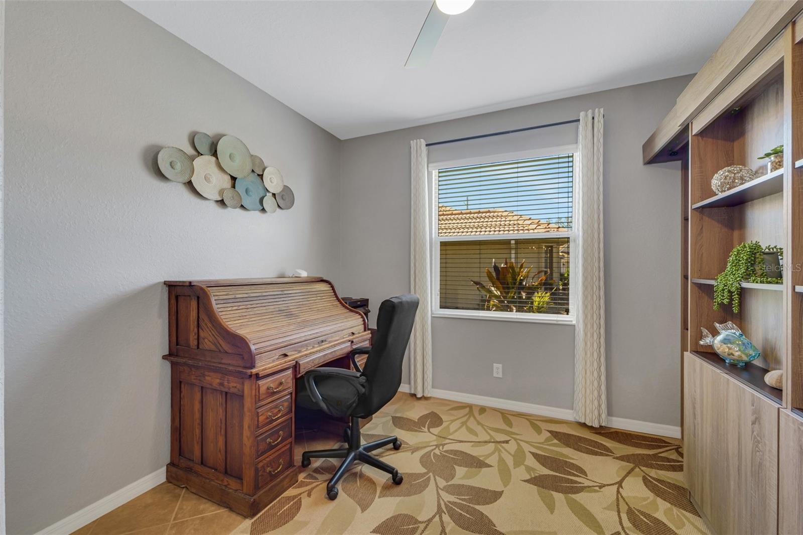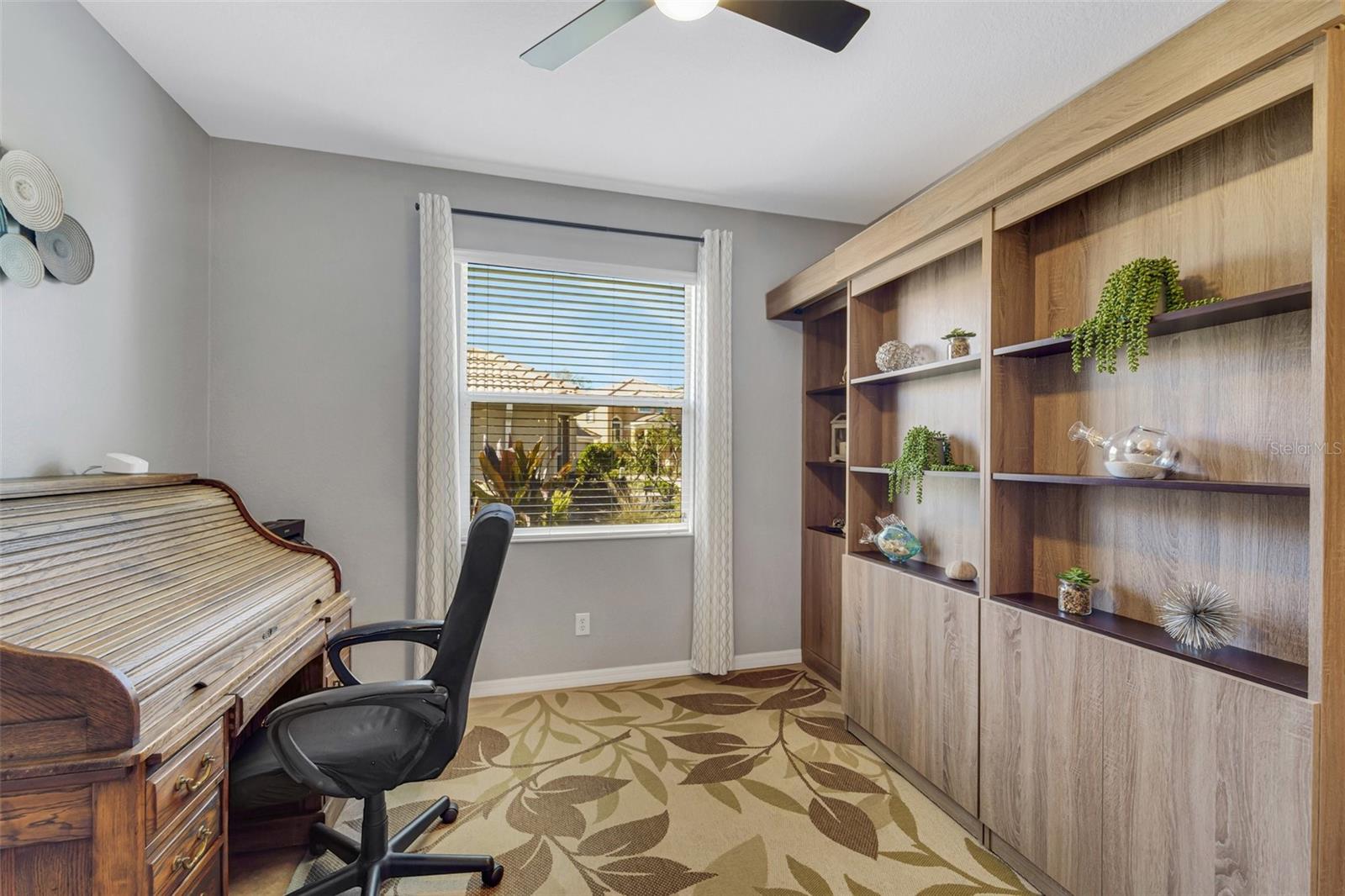 People love Florida for the wonderful year-round opportunity of being outdoors..... THIS FURNISHED HOME WAS MADE FOR FLORIDA LIVING! The vast, covered outdoor living area equipped with ceiling fans and screens, which encompasses over 800 square feet, makes this patio space truly an extension of comfortable living space and you will find yourself living more on the outside, instead of the inside. That said, you will be equally intrigued with the renovations that make this home warm and welcoming from the moment you step inside. With modifications to the original plan, this is now a full 3-bedroom home with the versatility of the 3rd bedroom as an office or guest suite with glass French doors and attractive murphy bed system disguised as a sliding bookcase/ display wall. The kitchen's modern-day updates include mark-resistant appliances, built-in oven/microwave, cooktop w/hood-vent, oversized entertainment island and is open to living, dining and family room spaces with sights to and thru the covered patio to the beautiful water views. NEW in this home are the AC, water heater, kitchen fridge. NEWER are Ring camera, Schlage keypad lock, electric wired for generator, exterior paint. AMAZING Lanai extension a young 4-years old. Security controlled/ gated Stoneybrook Community is amenity rich with resort style pool, spa, splash-pad, clubhouse, fitness center, children's playground, tennis, basketball, and so much more!