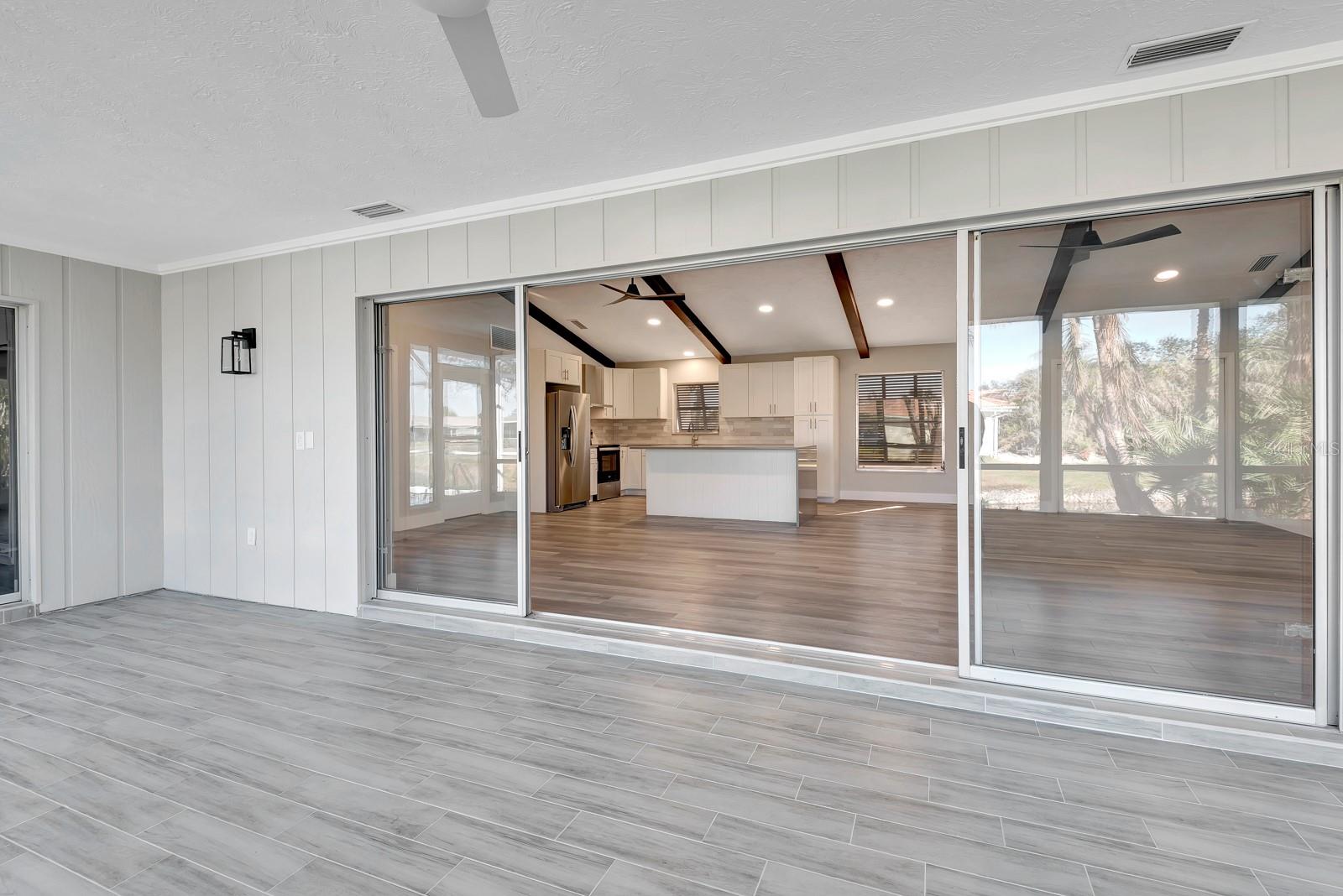 - Exterior: French Doors, Rain Gutters, Sidewalk, Sliding Doors