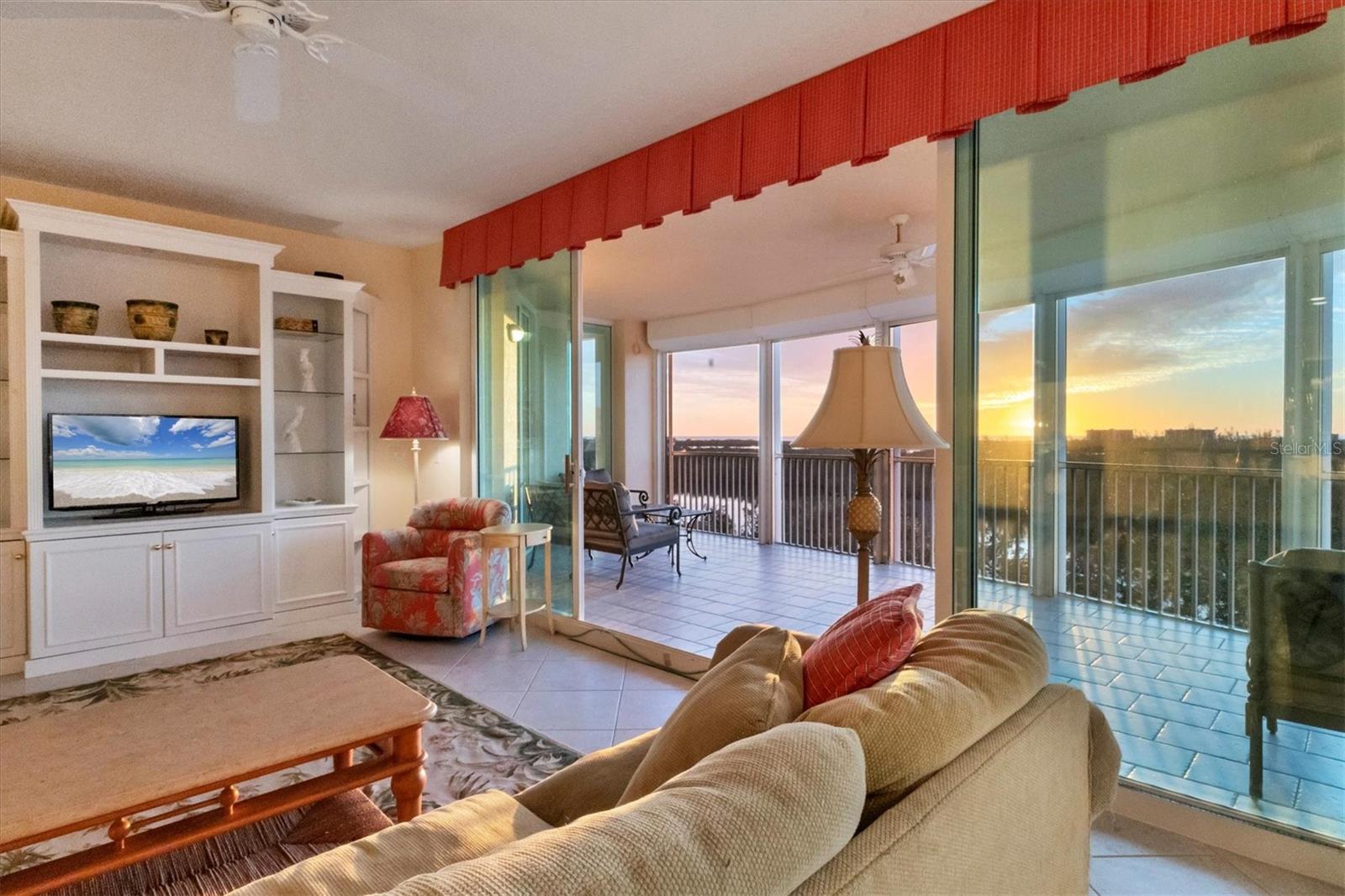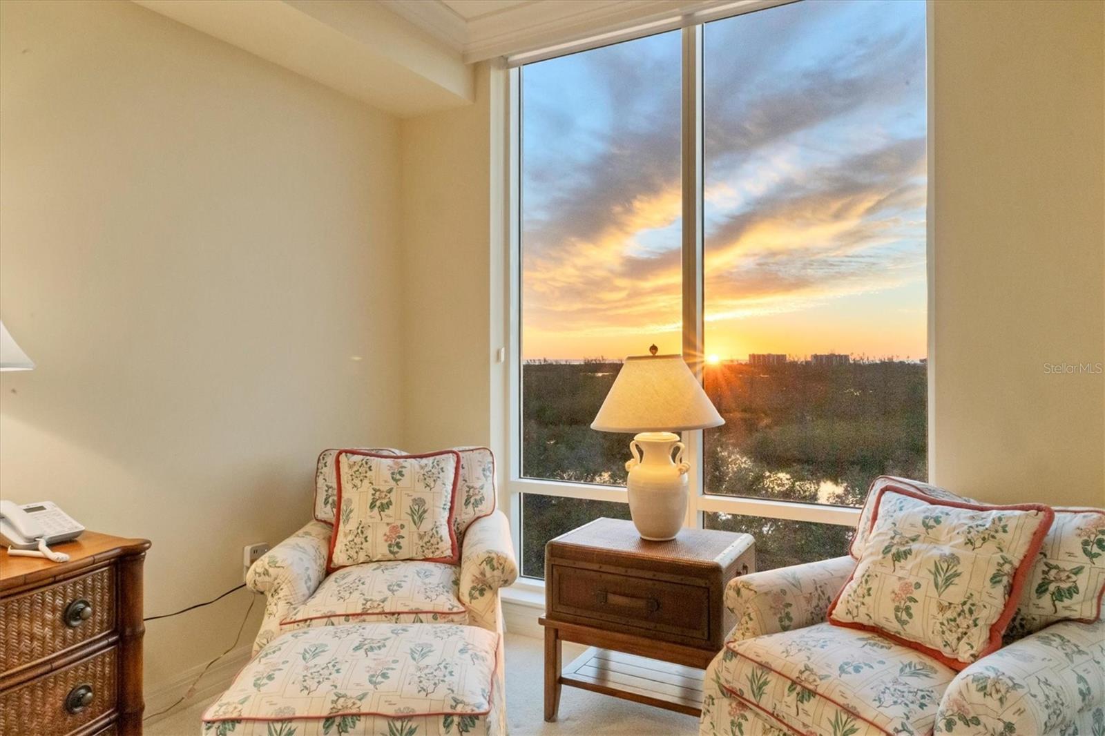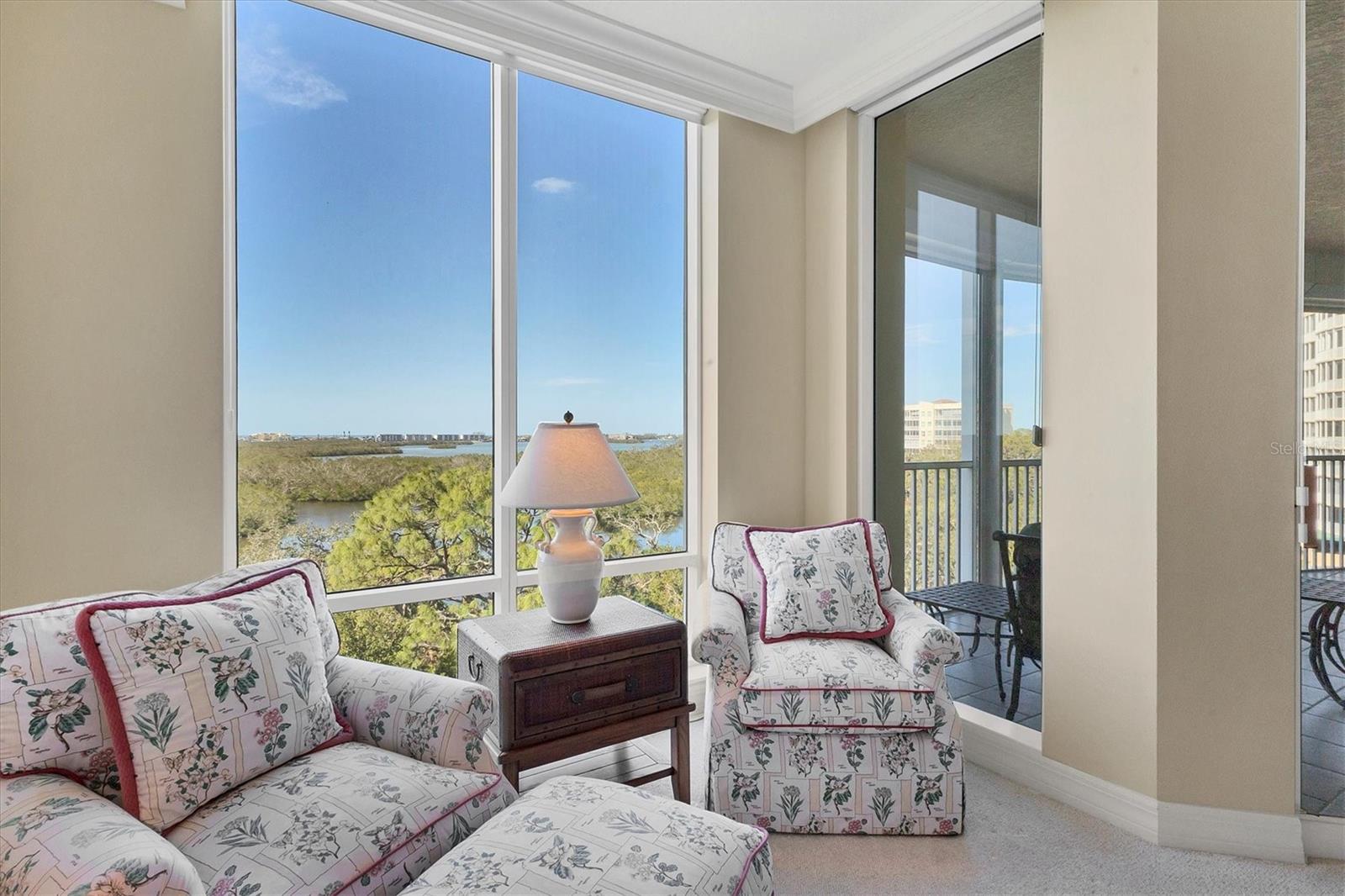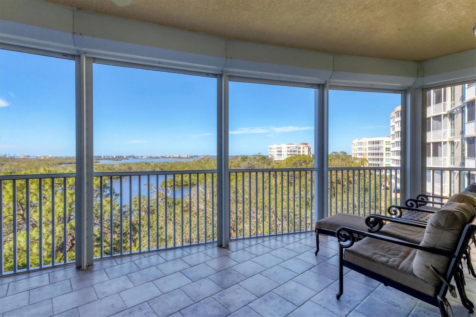 Immerse yourself in the unparalleled, unobstructed views of Little Sarasota Bay, the Gulf of Mexico and Midnight Pass, with Casey Key and Siesta Key gracing the horizon from this 6th-Floor Corner Unit Condo. Marvel at the gorgeous water views during the day and the stunning sunsets in the evening from your expansive, sweeping balcony, which feels like an additional room. Experience the epitome of seamless indoor-outdoor living in this expansive condo that spans nearly 2,800 square feet. Designed to emulate the ambiance of a single-family home, the open floor plan features a great room, a separate dining area, and a versatile den. The great room impresses with soaring 10-foot ceilings, floor-to-ceiling windows, and sliding doors that effortlessly blend the indoors with the outdoors, leading to a large, screened balcony with breathtaking water views. This harmonious flow floods the living space with natural light and offers a tranquil backdrop of sparkling vistas. The spacious kitchen is a culinary delight, boasting an eat-in area and granite high bar countertops, perfect for casual meals and entertaining guests. The popular split floor plan provides privacy and convenience, featuring 3 bedrooms and 3 baths. The den adds a layer of versatility to the home. The large kitchen includes an eat-in space and granite high bar countertops. The luxurious primary suite is separate from the guest rooms for privacy and includes stunning water views, large walk-in closets, and a luxurious bathroom. Additional features include an elegant entry, and an exclusive private foyer and elevator. The lanai is equipped with electric hurricane shutters ensuring safety and peace of mind. This secure building offers a wonderful lifestyle with private entry and elevator access. This unit is available for purchase fully furnished and is well-maintained. The Oaks community offers a distinguished, 24-hour guarded country club experience with numerous accolades, including Platinum Club of America, Emerald Club of the World, Elite Distinguished Club of the World. Amenities include three restaurants, a ballroom, two 18-hole championship golf courses, an award-winning racquets program with 12 Har-Tru Hydro-Grid tennis courts, 4 pickleball courts, a wonderful croquet facility, a state-of-the-art fitness center, a junior Olympic heated community swimming pool, bocce, a basketball court, a playground, a 7000 square foot fitness center, a brand new $9,000,000 dining room and bar with outdoor dining overlooking the golf course. Residents of the Meridian enjoy private amenities, including a heated pool and spa, a fitness center, and an outdoor grill. The Oaks provides well-lit sidewalks, ideal for strolls around the 100-acre preserve. It also boasts scenic trails, perfect for biking and walking while taking in the views of nature. The Oaks is just minutes from the nationally ranked Pine View School the Legacy Bike Trail, shopping, and area beaches. It is conveniently situated near both Venice and Sarasota, offering easy access to the amenities and attractions of both cities, while providing a beautiful, luxurious, and well-rounded country club lifestyle. Membership is required, and there is no waitlist for golf or social membership. Be sure to make an appointment to see this stunning condominium **ENJOY THE 3D VIRTUAL TOUR**