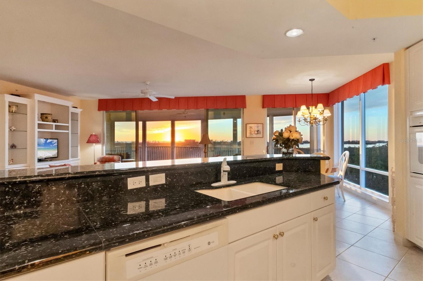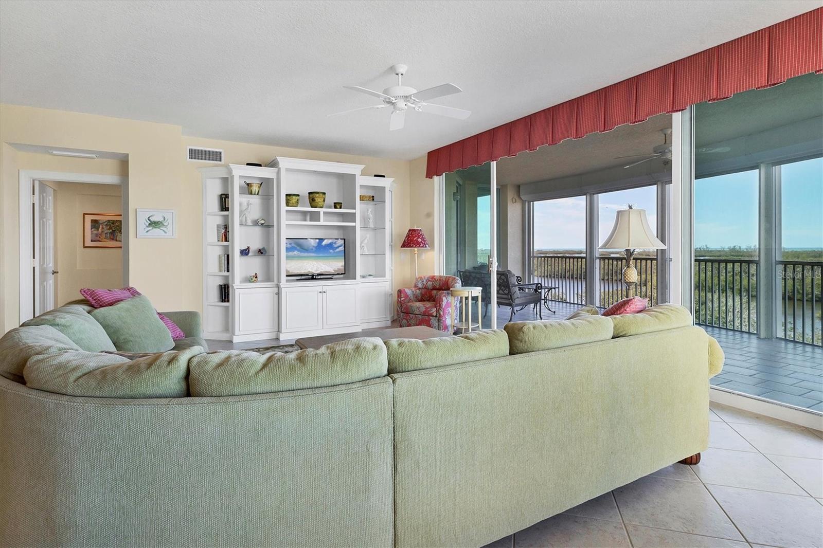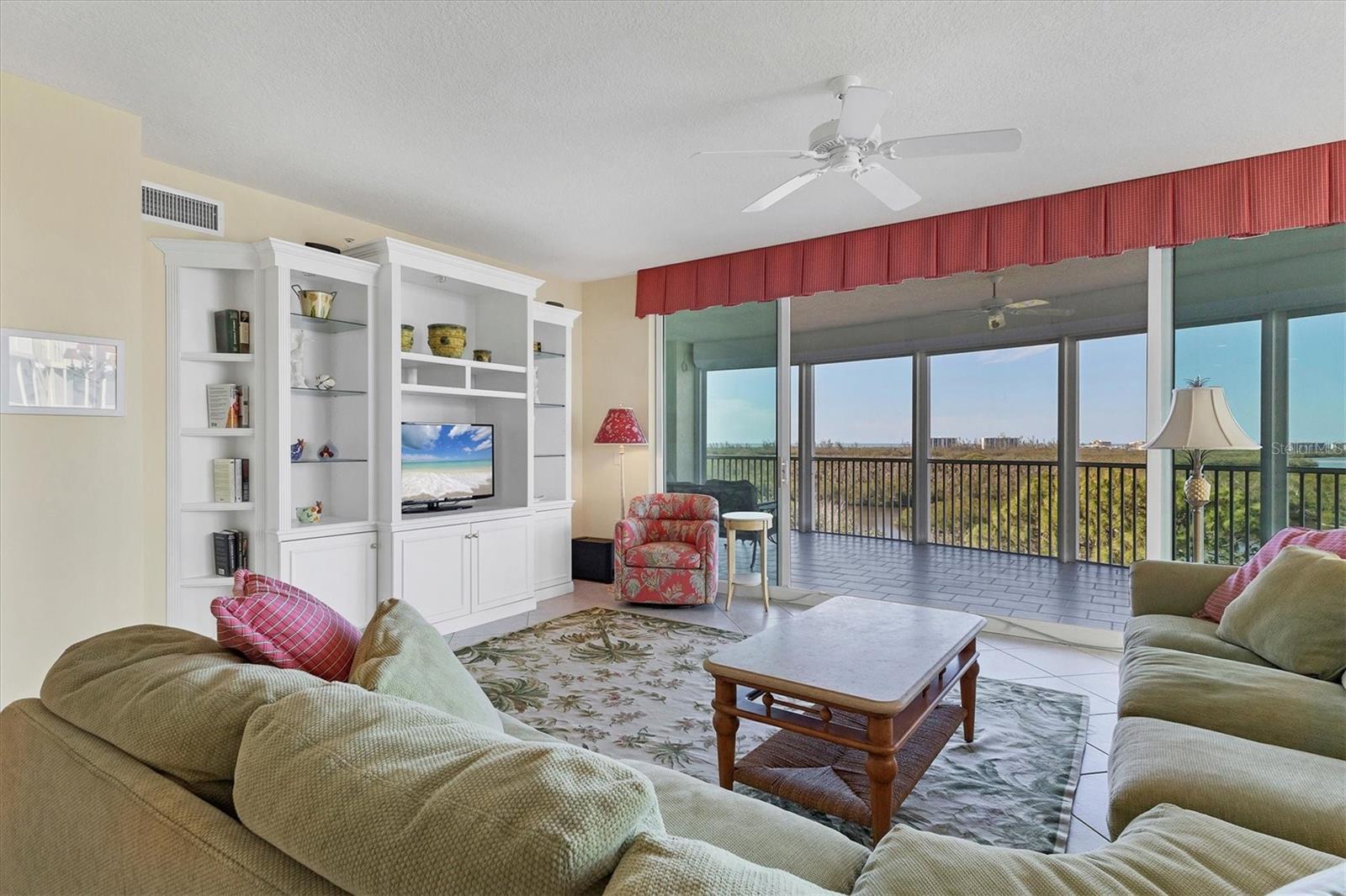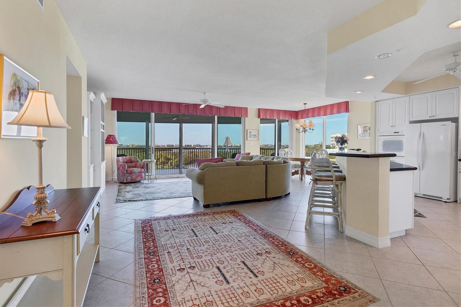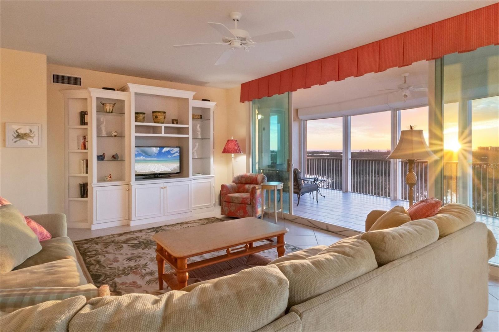 Immerse yourself in the unparalleled, unobstructed views of Little Sarasota Bay, the Gulf of Mexico and Midnight Pass, with Casey Key and Siesta Key gracing the horizon from this 6th-Floor Corner Unit Condo. Marvel at the gorgeous water views during the day and the stunning sunsets in the evening from your expansive, sweeping balcony, which feels like an additional room. Experience the epitome of seamless indoor-outdoor living in this expansive condo that spans nearly 2,800 square feet. Designed to emulate the ambiance of a single-family home, the open floor plan features a great room, a separate dining area, and a versatile den. The great room impresses with soaring 10-foot ceilings, floor-to-ceiling windows, and sliding doors that effortlessly blend the indoors with the outdoors, leading to a large, screened balcony with breathtaking water views. This harmonious flow floods the living space with natural light and offers a tranquil backdrop of sparkling vistas. The spacious kitchen is a culinary delight, boasting an eat-in area and granite high bar countertops, perfect for casual meals and entertaining guests. The popular split floor plan provides privacy and convenience, featuring 3 bedrooms and 3 baths. The den adds a layer of versatility to the home. The large kitchen includes an eat-in space and granite high bar countertops. The luxurious primary suite is separate from the guest rooms for privacy and includes stunning water views, large walk-in closets, and a luxurious bathroom. Additional features include an elegant entry, and an exclusive private foyer and elevator. The lanai is equipped with electric hurricane shutters ensuring safety and peace of mind. This secure building offers a wonderful lifestyle with private entry and elevator access. This unit is available for purchase fully furnished and is well-maintained. The Oaks community offers a distinguished, 24-hour guarded country club experience with numerous accolades, including Platinum Club of America, Emerald Club of the World, Elite Distinguished Club of the World. Amenities include three restaurants, a ballroom, two 18-hole championship golf courses, an award-winning racquets program with 12 Har-Tru Hydro-Grid tennis courts, 4 pickleball courts, a wonderful croquet facility, a state-of-the-art fitness center, a junior Olympic heated community swimming pool, bocce, a basketball court, a playground, a 7000 square foot fitness center, a brand new $9,000,000 dining room and bar with outdoor dining overlooking the golf course. Residents of the Meridian enjoy private amenities, including a heated pool and spa, a fitness center, and an outdoor grill. The Oaks provides well-lit sidewalks, ideal for strolls around the 100-acre preserve. It also boasts scenic trails, perfect for biking and walking while taking in the views of nature. The Oaks is just minutes from the nationally ranked Pine View School the Legacy Bike Trail, shopping, and area beaches. It is conveniently situated near both Venice and Sarasota, offering easy access to the amenities and attractions of both cities, while providing a beautiful, luxurious, and well-rounded country club lifestyle. Membership is required, and there is no waitlist for golf or social membership. Be sure to make an appointment to see this stunning condominium **ENJOY THE 3D VIRTUAL TOUR**