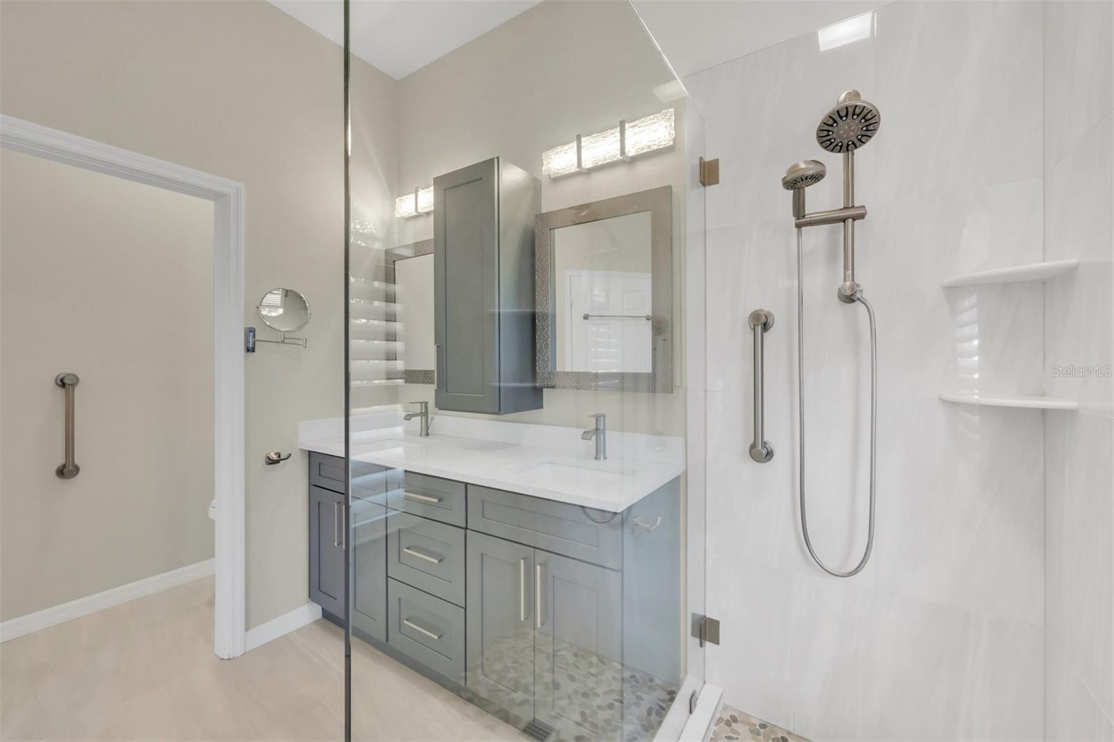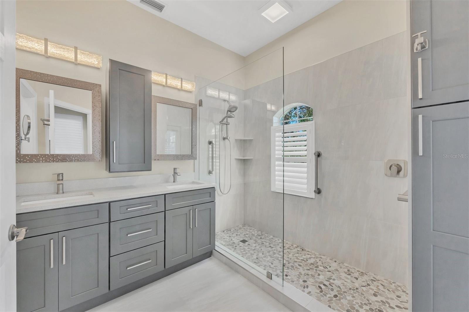 Welcome to this breathtaking residence in The Landings! This home has undergone meticulous updates, featuring kitchen enhancements such as new cabinetry, countertops, backsplash, flooring, under cabinet lighting, and appliances. The bathrooms are sleek and modern, featuring complete remodels with new cabinets and countertops, tile flooring, glass shower doors, light fixtures and toilets. Additional updates feature all-new lighting, ceiling fans, washer and dryer, door handles, plantation shutters, window treatments, water softener and vinyl flooring. The entire home, including the two-car garage floor, has been freshly painted. The AC was updated in 2022 and includes a UV air purifier. California closets have been installed in all closets for optimal storage and organization. The master suite is ideally situated at the back of the house on the main floor. The living and dining areas are designed for hosting, boasting lofty ceilings and French doors that open to a private screened porch. The Landings is a secure, guard-gated community that offers a range of amenities, including a gym, tennis courts, social activities, a kayak launch, a pool/spa, and a nature trail leading to the bayfront. With its close proximity to beaches, restaurants, shopping, and downtown, this community is the perfect place to call home.