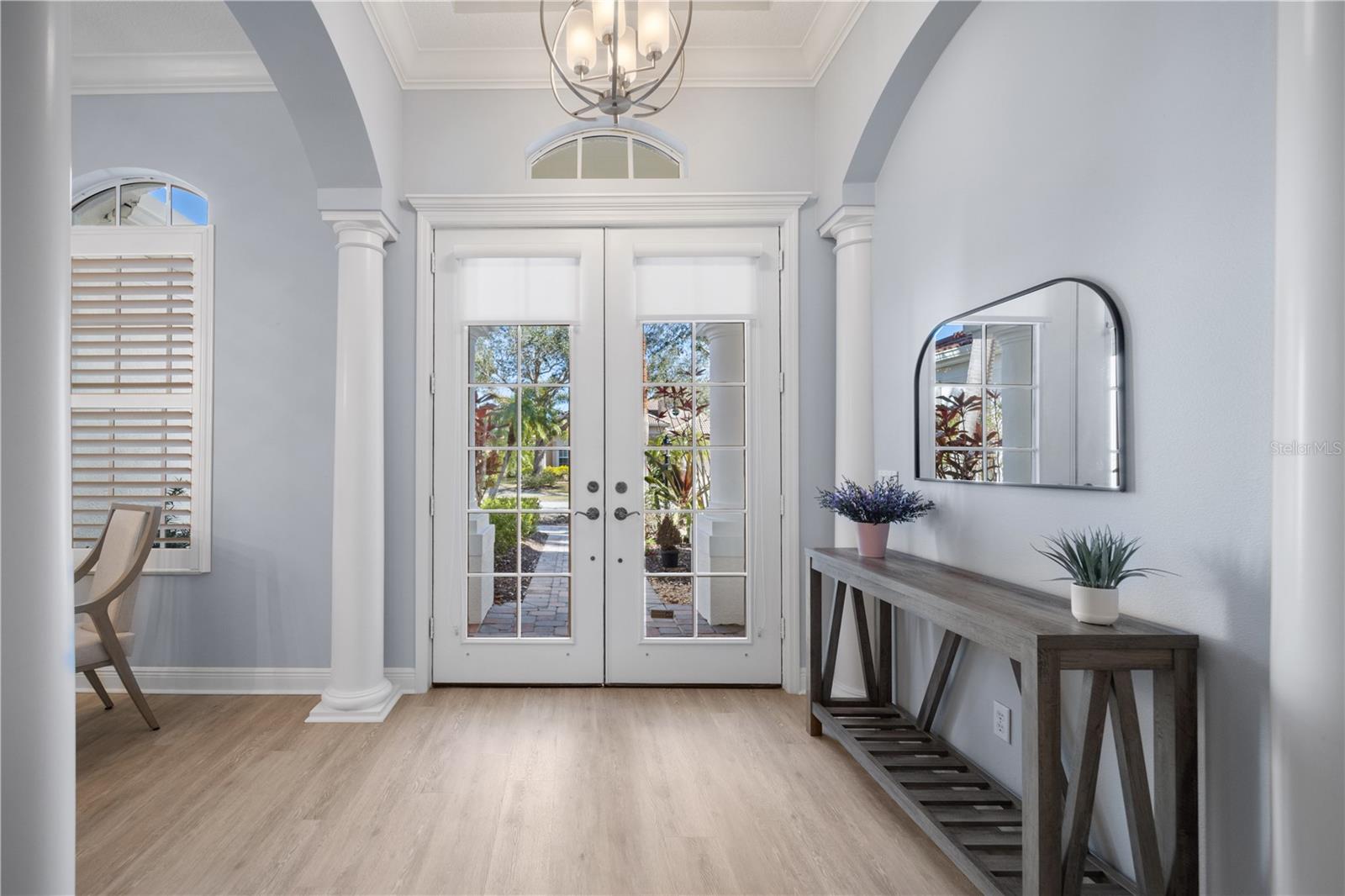 Incredible, lakefront home in with low HOA! This custom-built Lee Wetherington home offers a spacious, open floor plan with an abundance of space for entertaining. There are separate living and family rooms, both with direct views of the large pool lanai creating an idyllic setting for indoor/outdoor living. The luxurious kitchen with custom cabinetry, brand new quartz countertops, 5 burner gas stove top featuring a pot filler for convenience, built-in wall oven & microwave, large pantry and kitchen/dining nook.An additional, separate dining space provides the perfect opportunity for formal dinners. The primary suite is complete with a large walk-in closet, free standing tub, large glass enclosed shower, and 2 separate vanities. There are 3 additional guest bedrooms as well as a bonus roomwith large sliding glass doors that open to the pool area. The crown molding, ceiling & wall features, and custom built-ins throughout create an atmosphere of elegance. The current owner just finished a long list of upgrades and updates including new quartz countertops, luxury vinyl plank flooring, new paint on all walls and trim, plumbing fixtures, toto toilets, plumbing lines, light fixtures, recessed lighting, removal of walls to create open floor plan, and more. The outdoor space offers a relaxing & tranquil ambiance with a sparkling blue swimming pool & spa, gas fireplace, and outdoor kitchen. This is all surrounded by mature, lush landscape and beautiful views of the lake. The Greenbrook Adventure Park and Lakewood Ranch Premier Sports Campus are in very close proximity, offering an abundance of outdoor activities for everyone. Don't wait to schedule your showing today!
