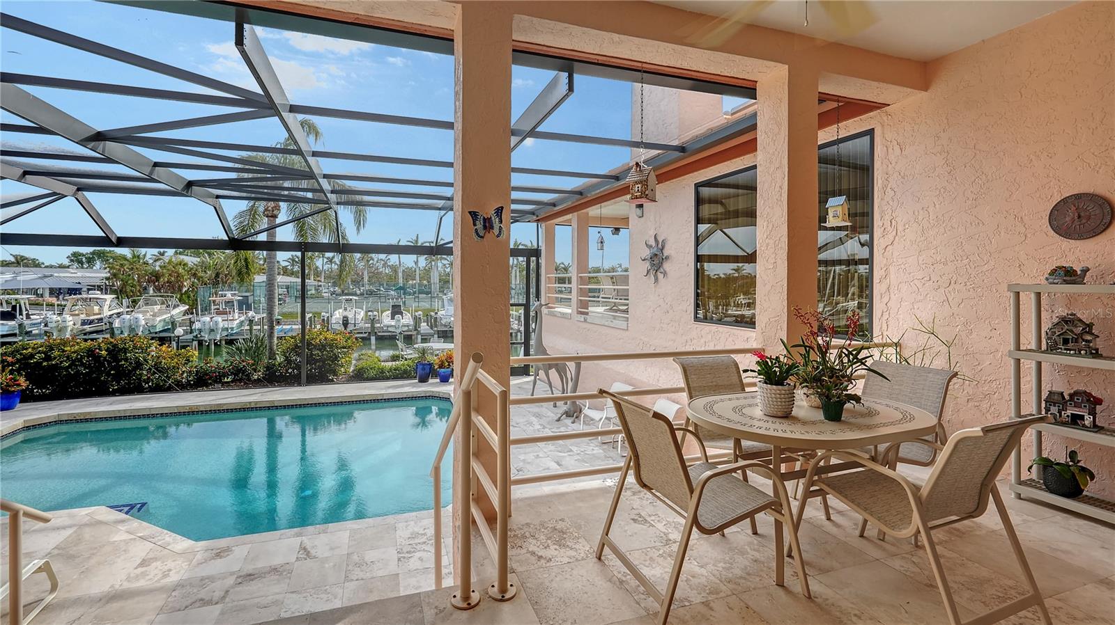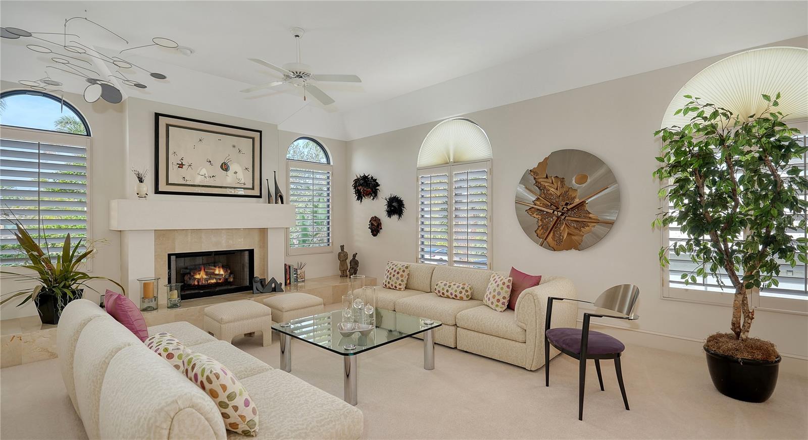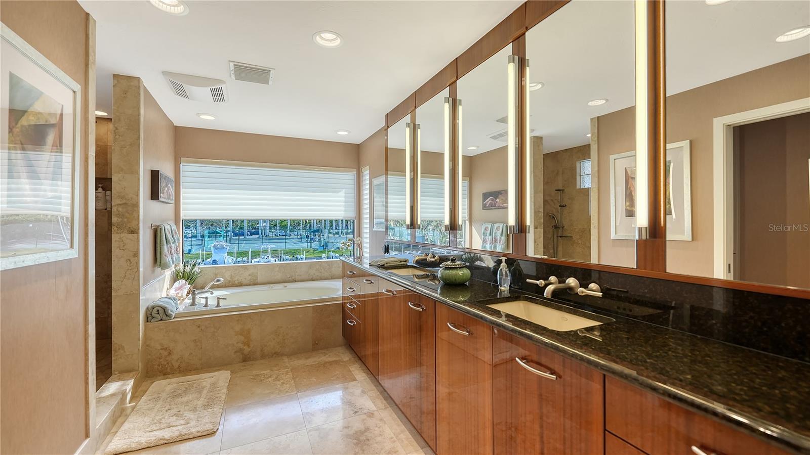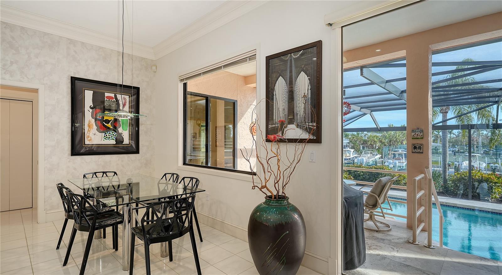 This impeccably maintained waterfront home is nestled in the exclusive Bird Key community, offering an extraordinary blend of privacy and direct, deep-water boating access. Spanning nearly 4,000 square feet, this elevated three-bedroom plus den and family room residence is designed to maximize its marina views, creating a seamless connection between indoor and outdoor living. A grand entryway welcomes you into a thoughtfully designed interior filled with natural light, soaring ceilings, multiple fireplaces, and expansive glass sliders that frame the picturesque waterfront. The open-concept living and dining areas create an effortless flow, while the gourmet kitchen is equipped with sleek countertops, custom cabinetry, island, breakfast bar, and built-in desk. A cozy breakfast nook overlooks the water, providing a serene space to start your day. The split-bedroom floor plan ensures privacy for both residents and guests. The primary suite is an oversized luxurious retreat, featuring private access to the waterfront pool deck, walk-in closets, and lovely en-suite bathroom with dual vanities, soaking tub, and walk-in shower. The guest suites are equally inviting, each offering a sunny ambiance and ample space. A highlight of this home is the dedicated office/library with walls of built-ins, perfect for working from home or enjoying a private reading space. Additional features include a custom wet bar room with temperature-controlled wine storage and abundant storage throughout. Outdoor living is a dream with a screened-in lanai, heated pool, and multiple seating areas designed for relaxation and entertaining. The property also includes a 12,000-pound boat lift with direct access to Sarasota Bay and the Gulf of Mexico, making it ideal for boating enthusiasts. Bird Key is one of Sarasota's most coveted waterfront neighborhoods, known for its prime location and exceptional amenities. Residents enjoy proximity to the Bird Key Yacht Club, with its dining, tennis, and marina facilities. Just minutes away, St. Armands Circle offers boutique shopping, fine dining, and cultural attractions, while downtown Sarasota boasts world-class theaters, galleries, and entertainment venues. This waterfront sanctuary combines an unparalleled lifestyle with the best of coastal living.