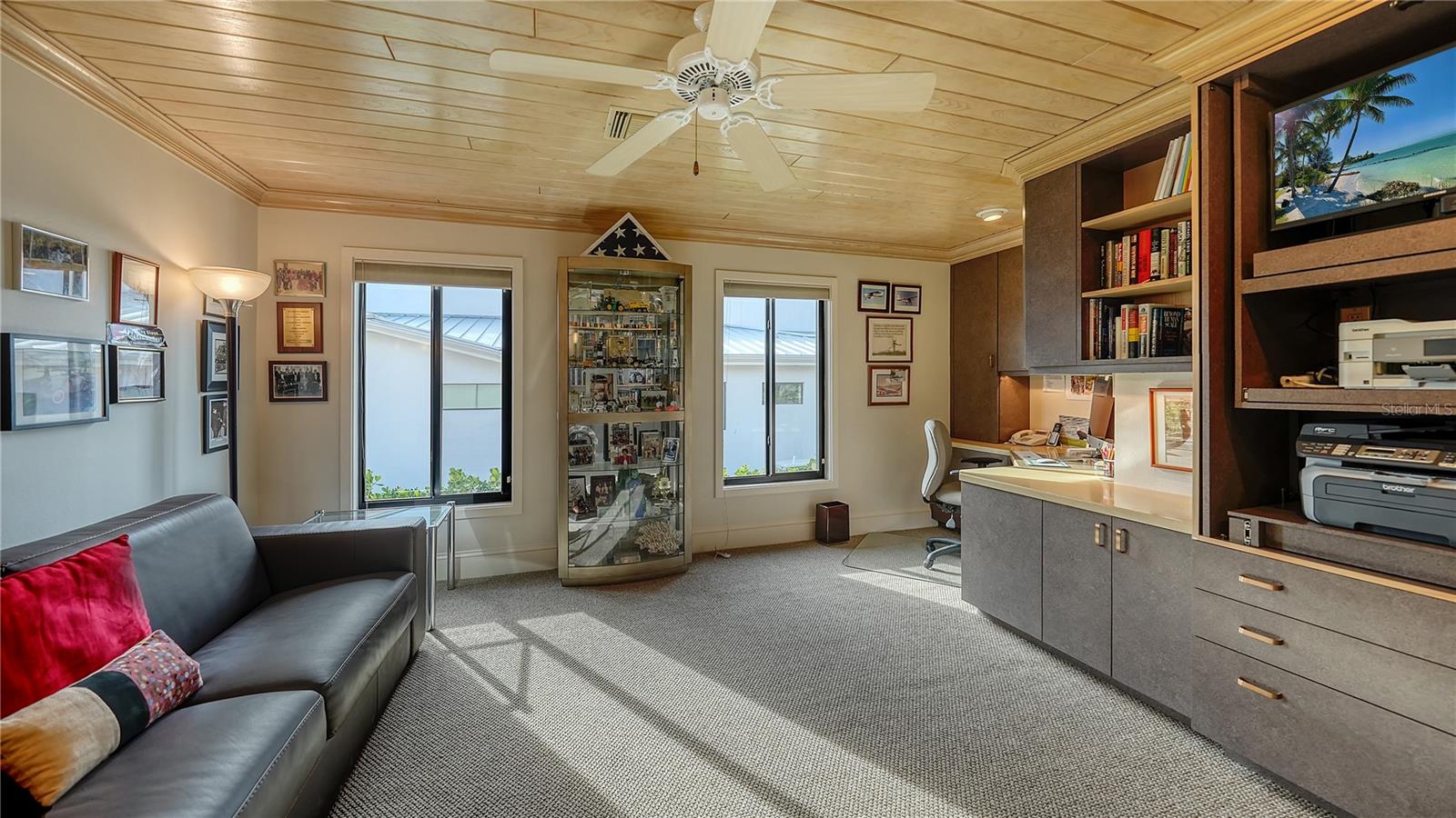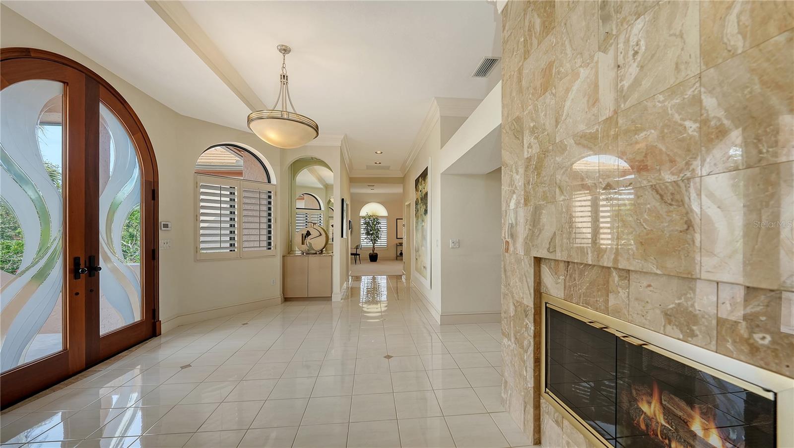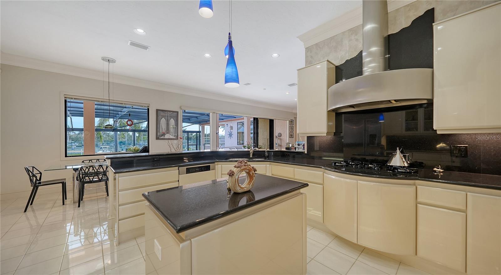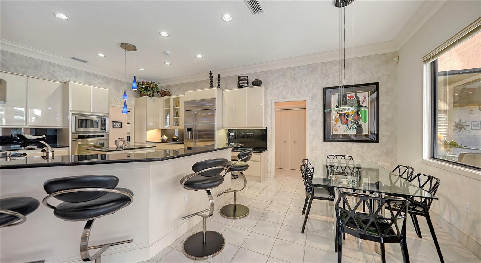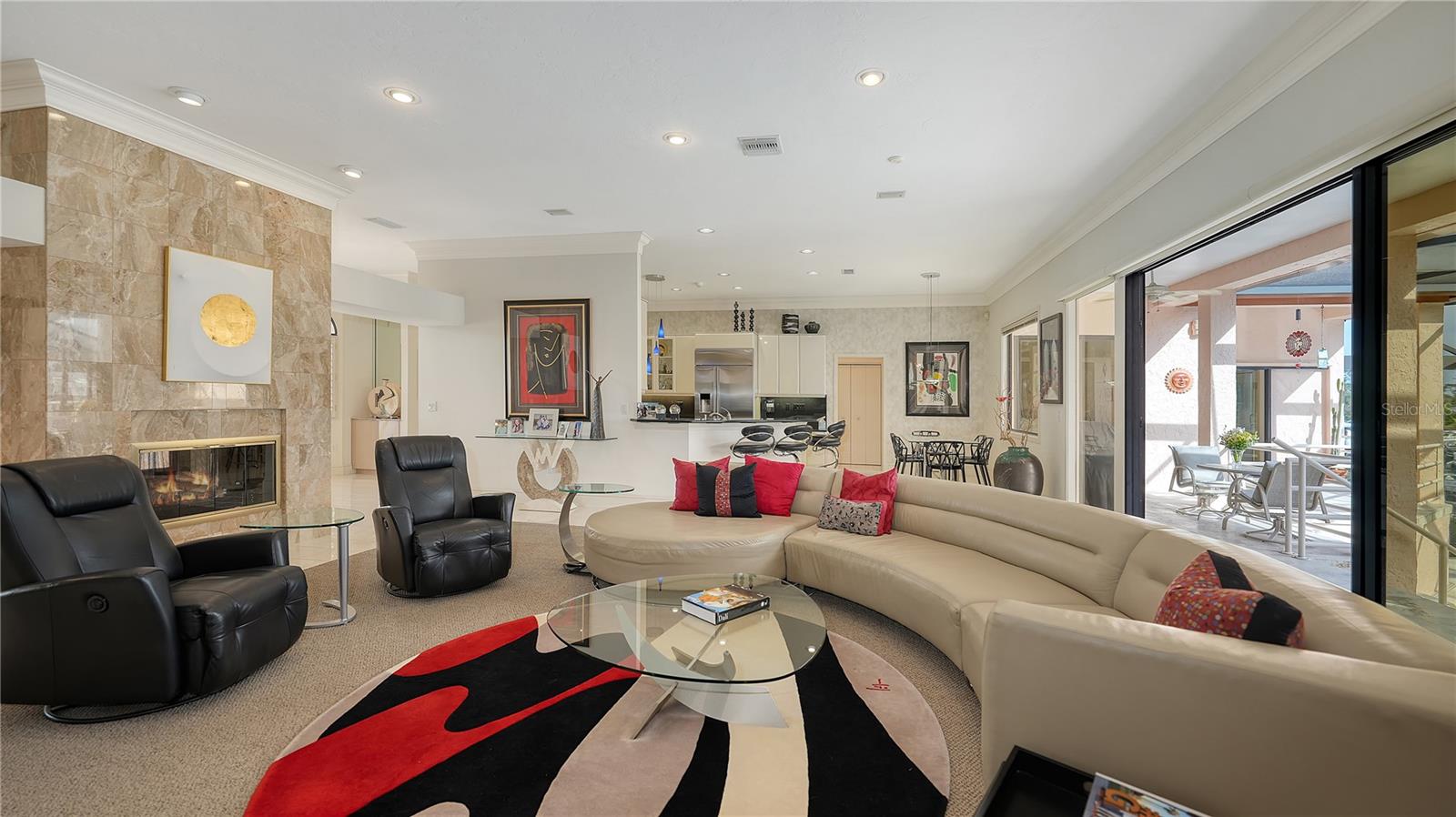 This impeccably maintained waterfront home is nestled in the exclusive Bird Key community, offering an extraordinary blend of privacy and direct, deep-water boating access. Spanning nearly 4,000 square feet, this elevated three-bedroom plus den and family room residence is designed to maximize its marina views, creating a seamless connection between indoor and outdoor living. A grand entryway welcomes you into a thoughtfully designed interior filled with natural light, soaring ceilings, multiple fireplaces, and expansive glass sliders that frame the picturesque waterfront. The open-concept living and dining areas create an effortless flow, while the gourmet kitchen is equipped with sleek countertops, custom cabinetry, island, breakfast bar, and built-in desk. A cozy breakfast nook overlooks the water, providing a serene space to start your day. The split-bedroom floor plan ensures privacy for both residents and guests. The primary suite is an oversized luxurious retreat, featuring private access to the waterfront pool deck, walk-in closets, and lovely en-suite bathroom with dual vanities, soaking tub, and walk-in shower. The guest suites are equally inviting, each offering a sunny ambiance and ample space. A highlight of this home is the dedicated office/library with walls of built-ins, perfect for working from home or enjoying a private reading space. Additional features include a custom wet bar room with temperature-controlled wine storage and abundant storage throughout. Outdoor living is a dream with a screened-in lanai, heated pool, and multiple seating areas designed for relaxation and entertaining. The property also includes a 12,000-pound boat lift with direct access to Sarasota Bay and the Gulf of Mexico, making it ideal for boating enthusiasts. Bird Key is one of Sarasota's most coveted waterfront neighborhoods, known for its prime location and exceptional amenities. Residents enjoy proximity to the Bird Key Yacht Club, with its dining, tennis, and marina facilities. Just minutes away, St. Armands Circle offers boutique shopping, fine dining, and cultural attractions, while downtown Sarasota boasts world-class theaters, galleries, and entertainment venues. This waterfront sanctuary combines an unparalleled lifestyle with the best of coastal living.