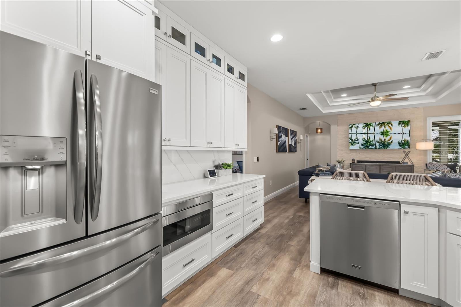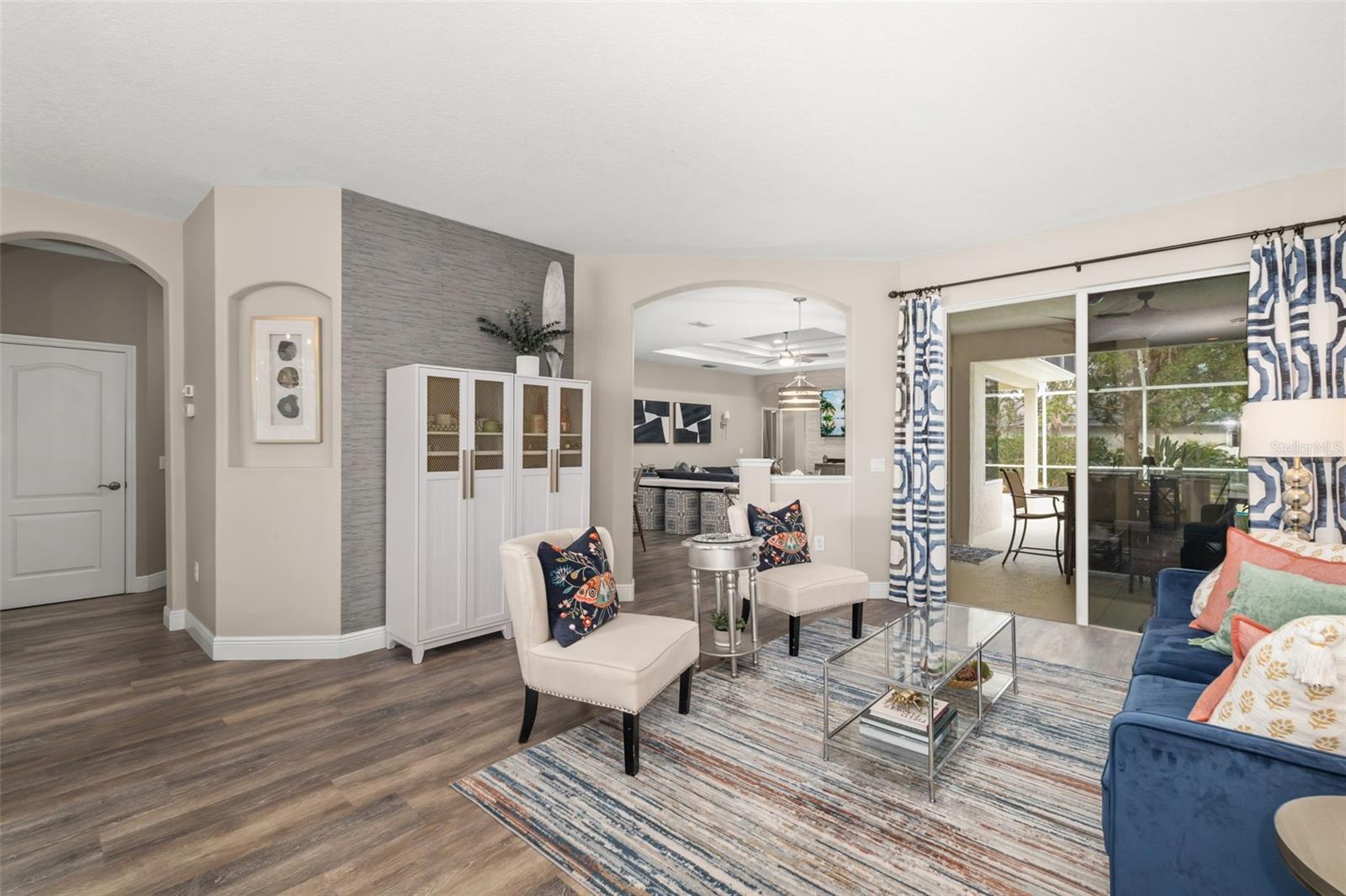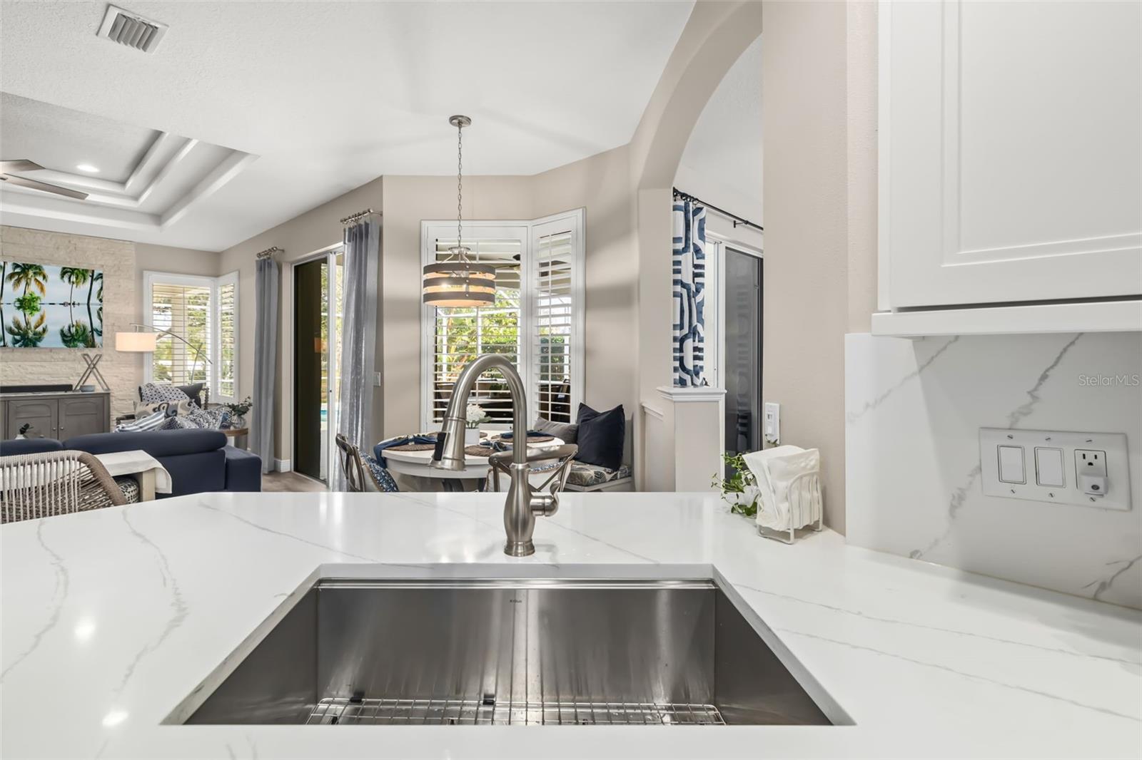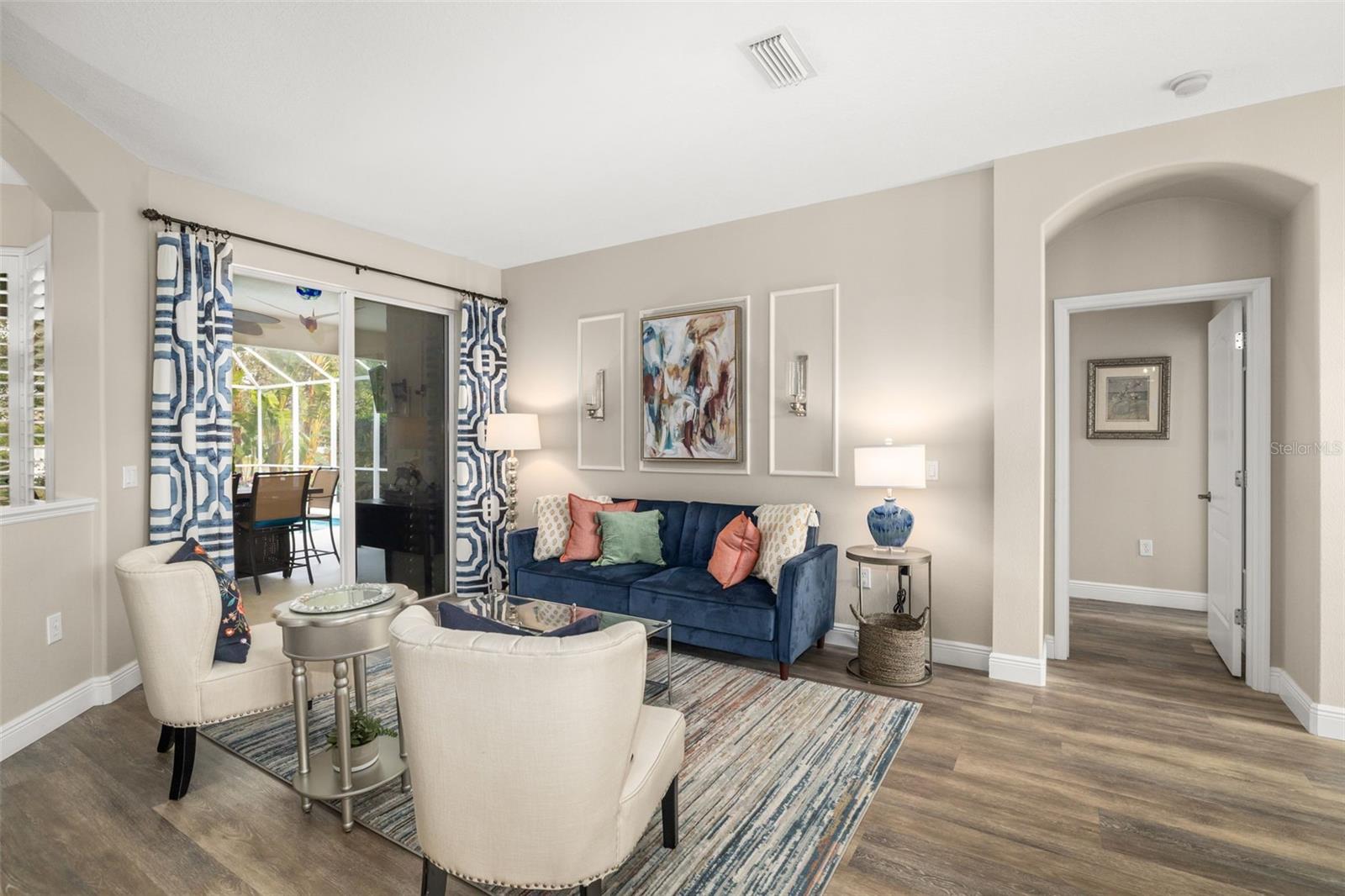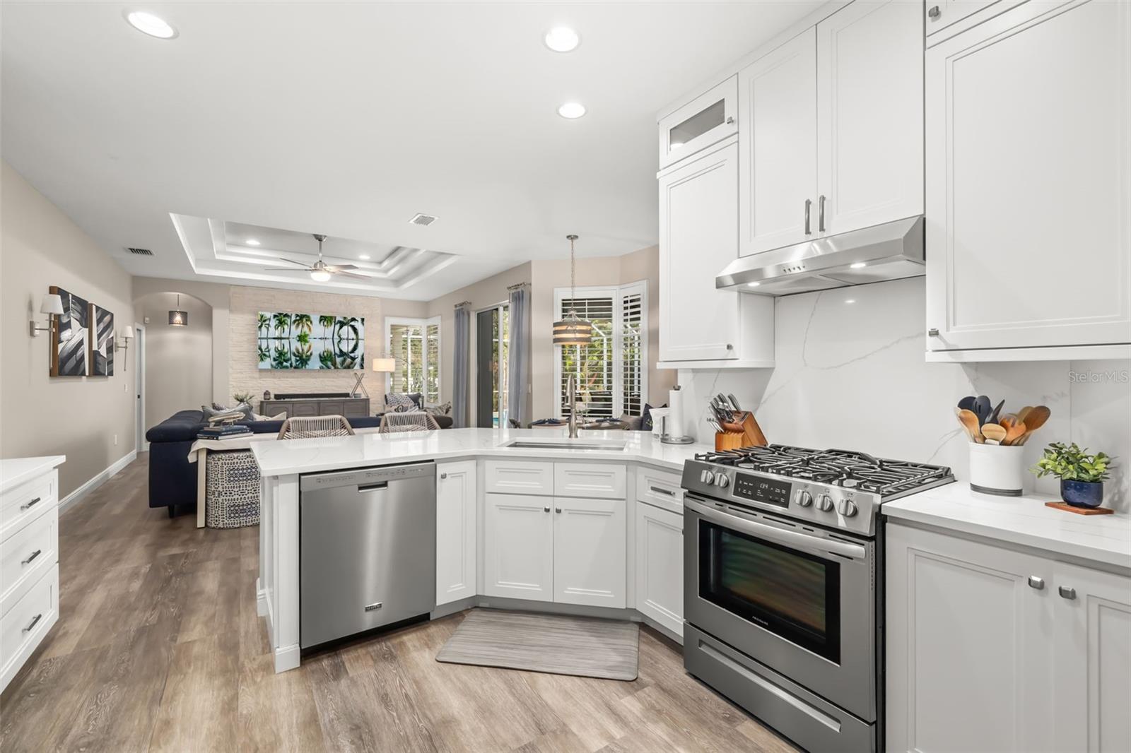 Nestled in the highly desirable Greenbrook neighborhood of Lakewood Ranch, this completely updated 4-bedroom home offers the perfect blend of modern luxury and serene comfort. With every inch thoughtfully renovated, this residence feels brand new and is ready to impress.Step inside to discover all-new luxury vinyl plank flooring throughout, paired with fresh, neutral paint that creates a welcoming atmosphere. The heart of the home is the stunning kitchen, fully renovated with 42" soft-close cabinets and drawers, gorgeous quartz countertops, and a matching backsplash. Equipped with new stainless steel appliances, including a gas cooktop with a vented hood, this kitchen is a chef's dream. The breakfast nook, featuring an aquarium glass window, provides beautiful views of the pool and serene lake.The spacious great room boasts triple crown molding and a stacked stone accent wall, making it a perfect space for both relaxation and entertaining. The split floor plan ensures maximum privacy, with the 4th bedroom located at the rear of the home. This bedroom has its own separate bath, which conveniently doubles as the pool bath.Outside, you'll find a spectacular pool and spa, with an abundance of covered space for lounging and entertaining while overlooking the tranquil lake. The expansive backyard offers plenty of room to enjoy the outdoors, whether for recreation or relaxation.Additional upgrades include a roof replaced in 2023 and an AC unit installed in 2022, ensuring peace of mind for years to come. The home is located within close proximity to highly rated schools and a variety of shopping options, making it as convenient as it is beautiful.This meticulously updated home in Lakewood Ranch's Greenbrook neighborhood offers everything you could want--luxury, privacy, and a fantastic location. Greenbrooks Adveture park offers ball fields, inline skating, dog parks, walking trails, playgrounds, pickleball/tennis and a pavillion. The neighborhood has incredibly low HOA fees-less than $10 a month-and is conveniently located within lakewood ranch-close to Main ST, Waterside, restaurants, shopping and is just a short drive to Sarasota's crystal clear beaches, including Siesta Key, Anna Maria Island and Longboat Key.
