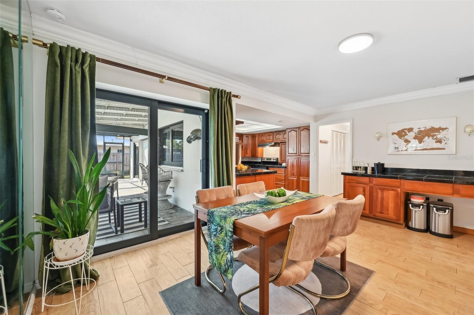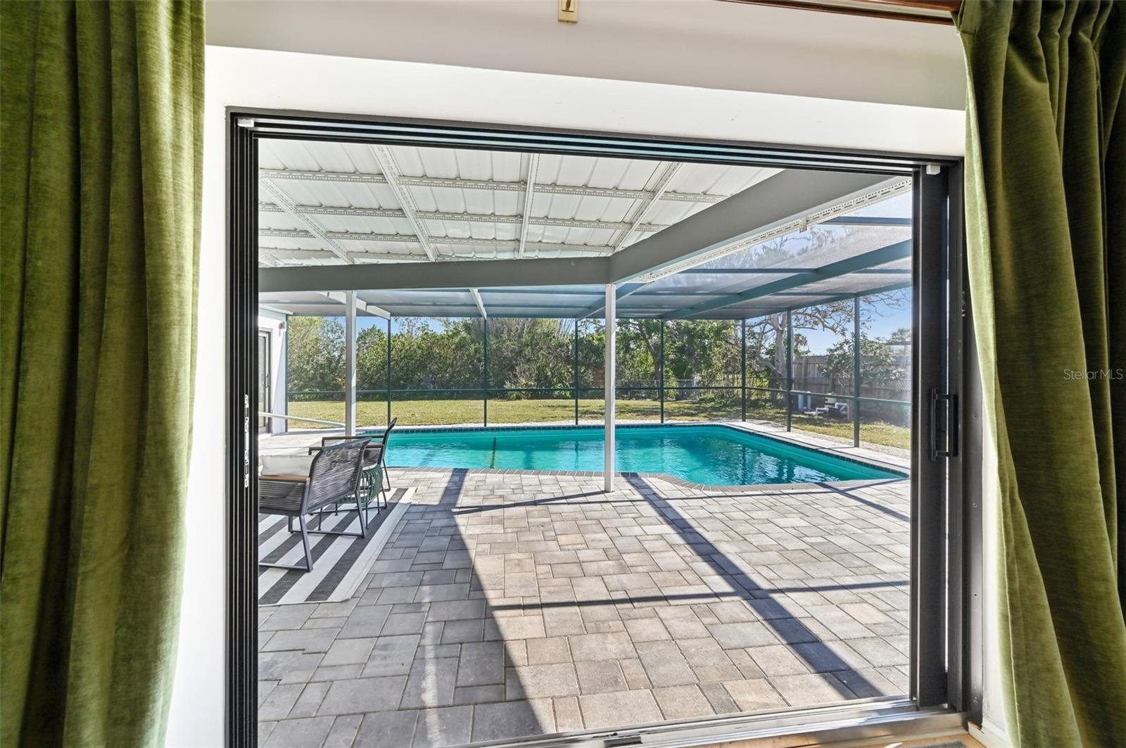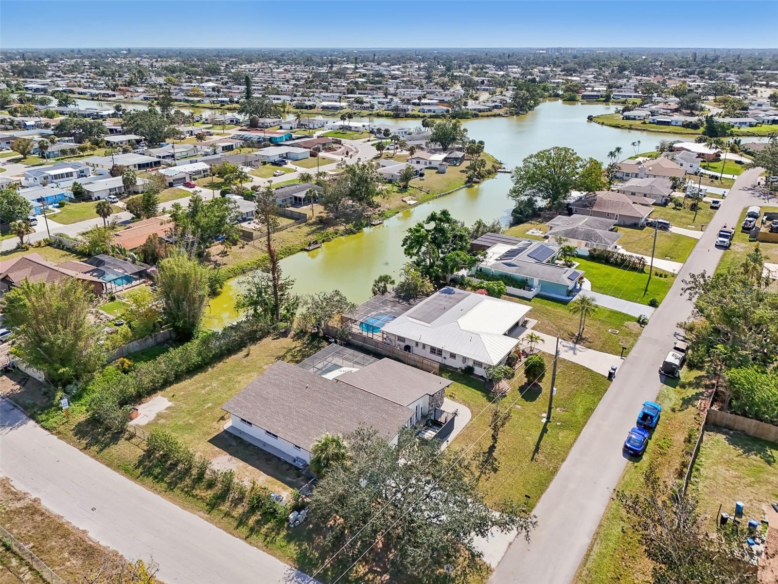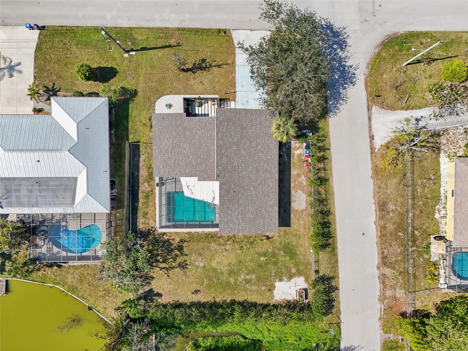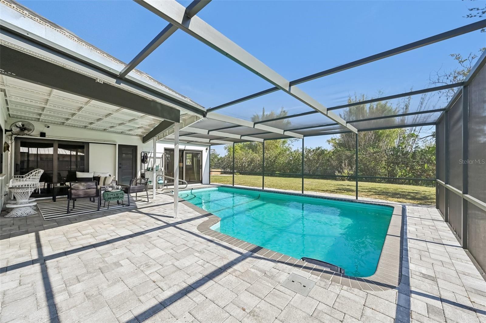 Stunning Lakefront Home with Pool & Countless Upgrades. This four-bedroom two-bath home is situated on an oversized corner lot in the heart of Venice. This spacious and meticulously maintained residence features a private front patio with pavers and a bright, inviting living room with newer floor-to-ceiling windows. The desirable split floor plan offers privacy, with the primary suite positioned to the right of the kitchen, featuring his-and-her walk-in closets and an en-suite bath. On the left side of the home, a cozy eat-in area with additional sliders to the lanai and a built-in desk/bar leads to a versatile bonus room, ideal for a home office. Down the hall, three spacious guest bedrooms offer ample closet space, including one with direct pool access, while the second bathroom conveniently features an exterior door to the pool area. At the center of the home, the beautifully updated kitchen boasts cherry cabinets, stainless steel appliances, a breakfast bar, and a passthrough window to the lanai, making it perfect for entertaining. Adjacent to the kitchen, the dining area opens to the lanai through sliding glass doors, seamlessly blending indoor and outdoor living. The outdoor space is a true retreat, designed for relaxation and entertaining. A large screened lanai with updated pavers (2022) overlooks the heated pool and fully fenced backyard, which leads to a private deck with lake access. Lush custom desert landscaping enhances the tranquil setting. This home has been thoughtfully updated with a new roof (2020), hurricane-impact sliders and pool lanai door (2024), new windows (2021) with N60 heat-control film, a 200-amp electrical service and panel (2021), a whole-home surge protector, and a complete SimpliSafe security system ($4,000). Additional updates include a refrigerator and dishwasher (2022), a Wi-Fi-enabled hot water heater (2022), a generator/RV hookup, and an updated A/C system (2017). With no HOA restrictions, this property provides exceptional flexibility for boat or RV owners. Ideally located in central Venice, residents enjoy easy access to top-rated restaurants, shopping, recreation, and Venice Island's beautiful beaches. Optional membership in the Venice Gardens Civic Association offers access to a community pool, park, playground, and events for just $165 annually. Best of all, this home is NOT in a flood zone. Don't miss this rare gem--schedule your showing today!