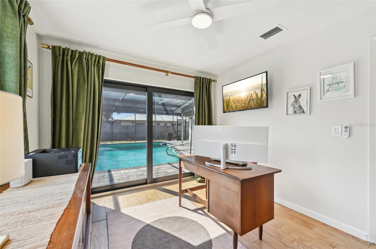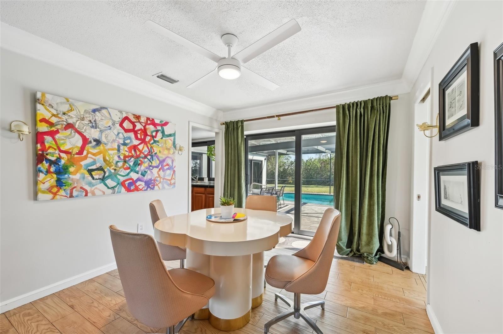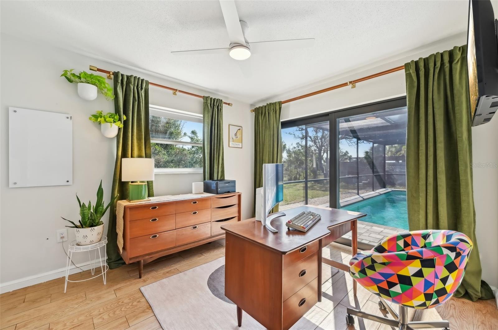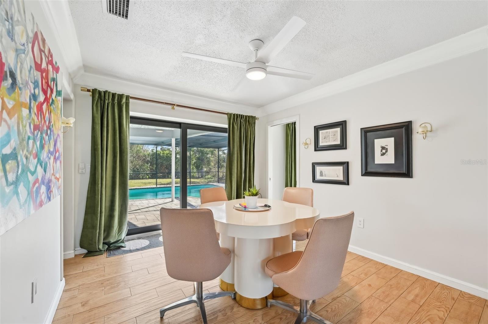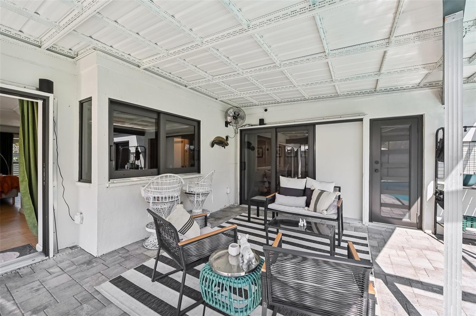 Stunning Lakefront Home with Pool & Countless Upgrades. This four-bedroom two-bath home is situated on an oversized corner lot in the heart of Venice. This spacious and meticulously maintained residence features a private front patio with pavers and a bright, inviting living room with newer floor-to-ceiling windows. The desirable split floor plan offers privacy, with the primary suite positioned to the right of the kitchen, featuring his-and-her walk-in closets and an en-suite bath. On the left side of the home, a cozy eat-in area with additional sliders to the lanai and a built-in desk/bar leads to a versatile bonus room, ideal for a home office. Down the hall, three spacious guest bedrooms offer ample closet space, including one with direct pool access, while the second bathroom conveniently features an exterior door to the pool area. At the center of the home, the beautifully updated kitchen boasts cherry cabinets, stainless steel appliances, a breakfast bar, and a passthrough window to the lanai, making it perfect for entertaining. Adjacent to the kitchen, the dining area opens to the lanai through sliding glass doors, seamlessly blending indoor and outdoor living. The outdoor space is a true retreat, designed for relaxation and entertaining. A large screened lanai with updated pavers (2022) overlooks the heated pool and fully fenced backyard, which leads to a private deck with lake access. Lush custom desert landscaping enhances the tranquil setting. This home has been thoughtfully updated with a new roof (2020), hurricane-impact sliders and pool lanai door (2024), new windows (2021) with N60 heat-control film, a 200-amp electrical service and panel (2021), a whole-home surge protector, and a complete SimpliSafe security system ($4,000). Additional updates include a refrigerator and dishwasher (2022), a Wi-Fi-enabled hot water heater (2022), a generator/RV hookup, and an updated A/C system (2017). With no HOA restrictions, this property provides exceptional flexibility for boat or RV owners. Ideally located in central Venice, residents enjoy easy access to top-rated restaurants, shopping, recreation, and Venice Island's beautiful beaches. Optional membership in the Venice Gardens Civic Association offers access to a community pool, park, playground, and events for just $165 annually. Best of all, this home is NOT in a flood zone. Don't miss this rare gem--schedule your showing today!