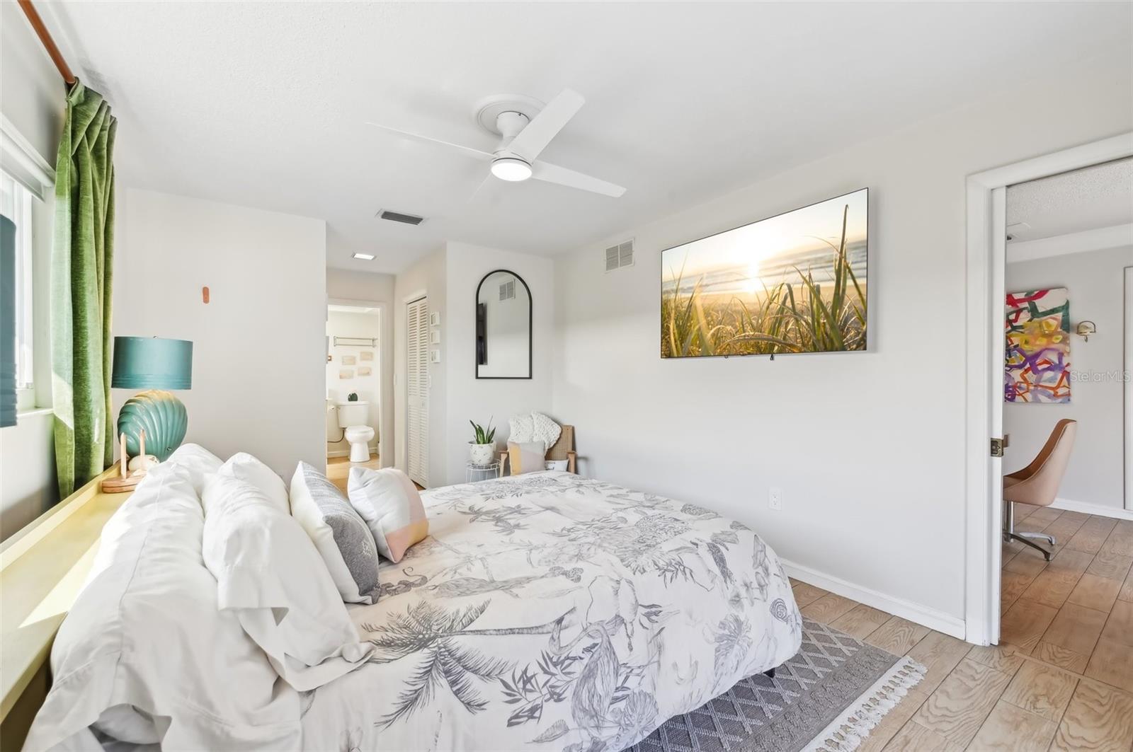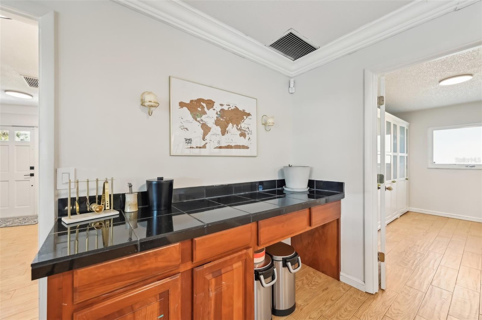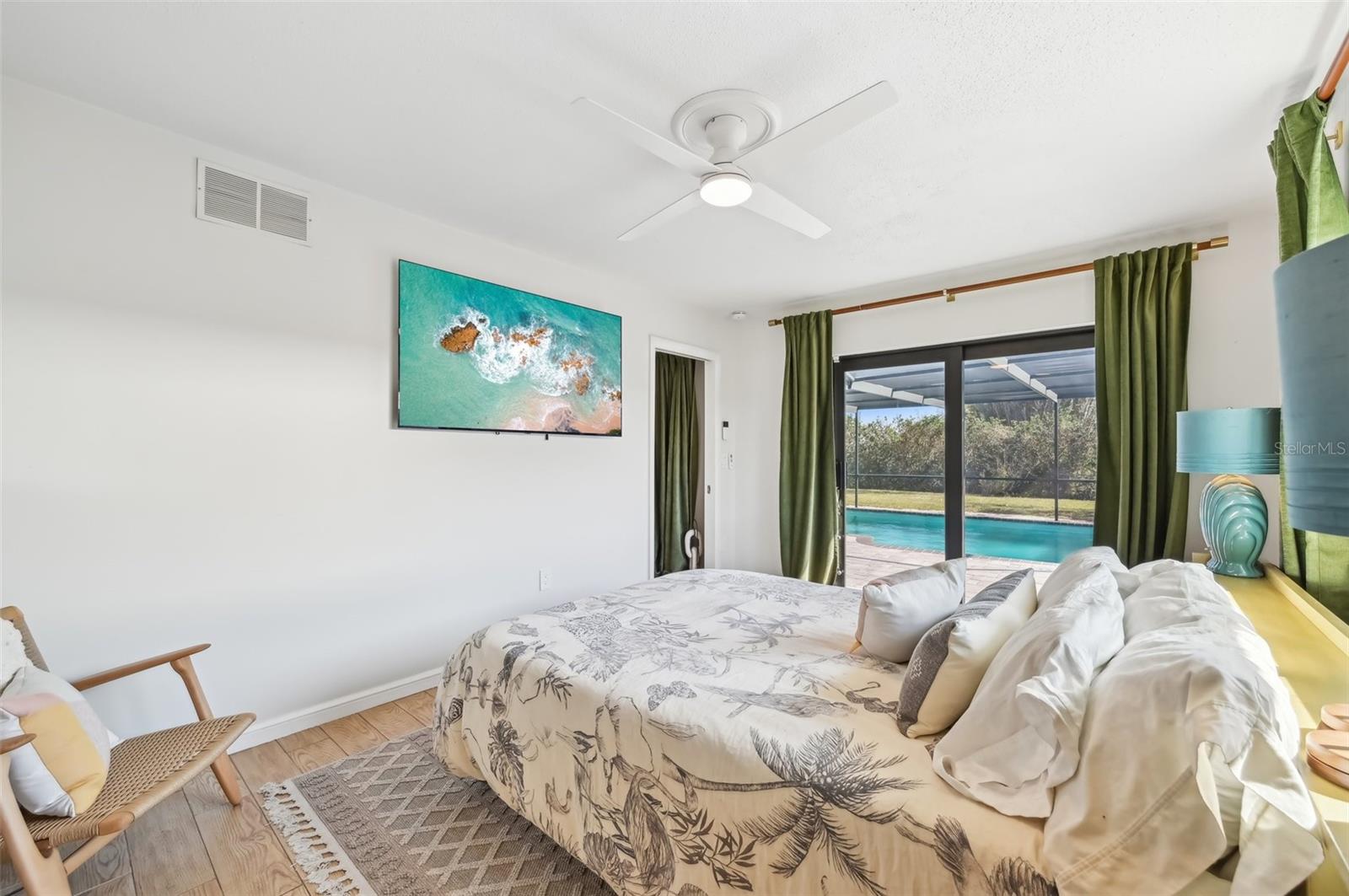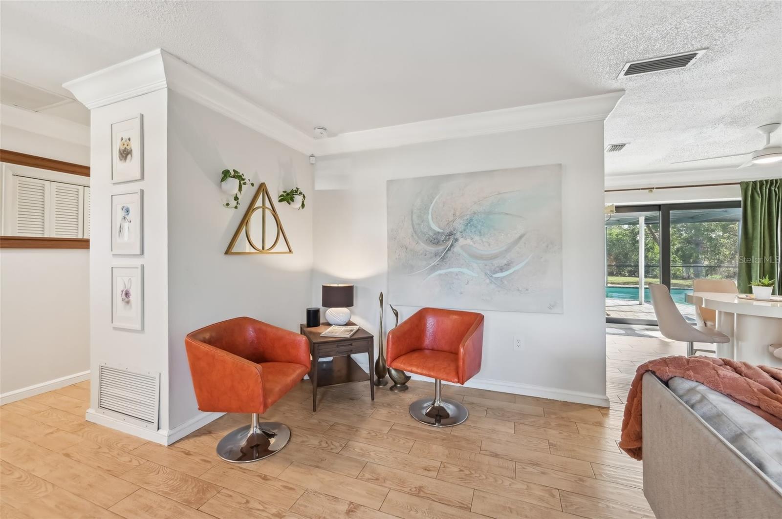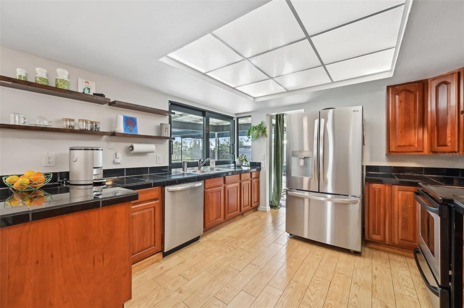 Stunning Lakefront Home with Pool & Countless Upgrades. This four-bedroom two-bath home is situated on an oversized corner lot in the heart of Venice. This spacious and meticulously maintained residence features a private front patio with pavers and a bright, inviting living room with newer floor-to-ceiling windows. The desirable split floor plan offers privacy, with the primary suite positioned to the right of the kitchen, featuring his-and-her walk-in closets and an en-suite bath. On the left side of the home, a cozy eat-in area with additional sliders to the lanai and a built-in desk/bar leads to a versatile bonus room, ideal for a home office. Down the hall, three spacious guest bedrooms offer ample closet space, including one with direct pool access, while the second bathroom conveniently features an exterior door to the pool area. At the center of the home, the beautifully updated kitchen boasts cherry cabinets, stainless steel appliances, a breakfast bar, and a passthrough window to the lanai, making it perfect for entertaining. Adjacent to the kitchen, the dining area opens to the lanai through sliding glass doors, seamlessly blending indoor and outdoor living. The outdoor space is a true retreat, designed for relaxation and entertaining. A large screened lanai with updated pavers (2022) overlooks the heated pool and fully fenced backyard, which leads to a private deck with lake access. Lush custom desert landscaping enhances the tranquil setting. This home has been thoughtfully updated with a new roof (2020), hurricane-impact sliders and pool lanai door (2024), new windows (2021) with N60 heat-control film, a 200-amp electrical service and panel (2021), a whole-home surge protector, and a complete SimpliSafe security system ($4,000). Additional updates include a refrigerator and dishwasher (2022), a Wi-Fi-enabled hot water heater (2022), a generator/RV hookup, and an updated A/C system (2017). With no HOA restrictions, this property provides exceptional flexibility for boat or RV owners. Ideally located in central Venice, residents enjoy easy access to top-rated restaurants, shopping, recreation, and Venice Island's beautiful beaches. Optional membership in the Venice Gardens Civic Association offers access to a community pool, park, playground, and events for just $165 annually. Best of all, this home is NOT in a flood zone. Don't miss this rare gem--schedule your showing today!