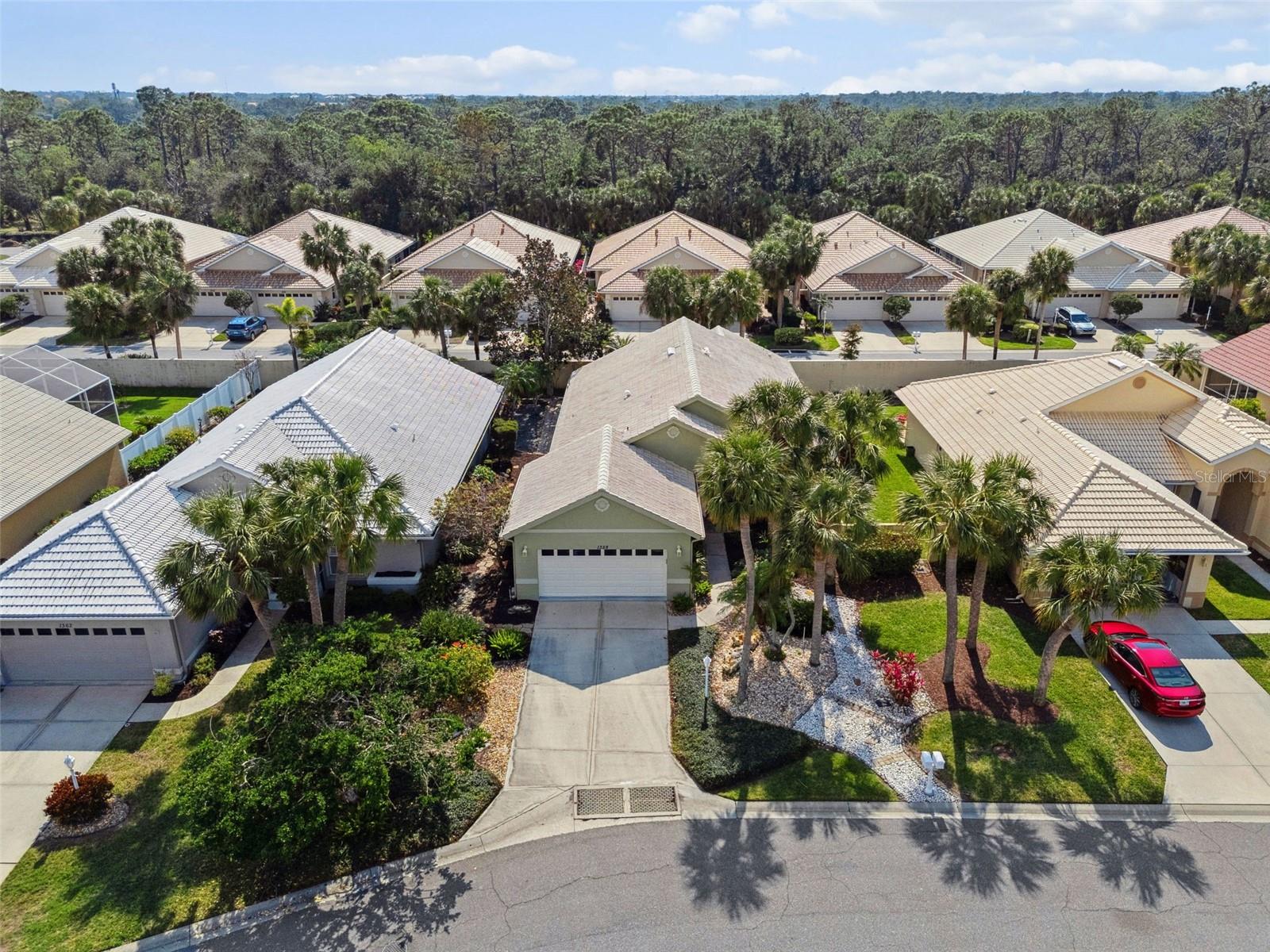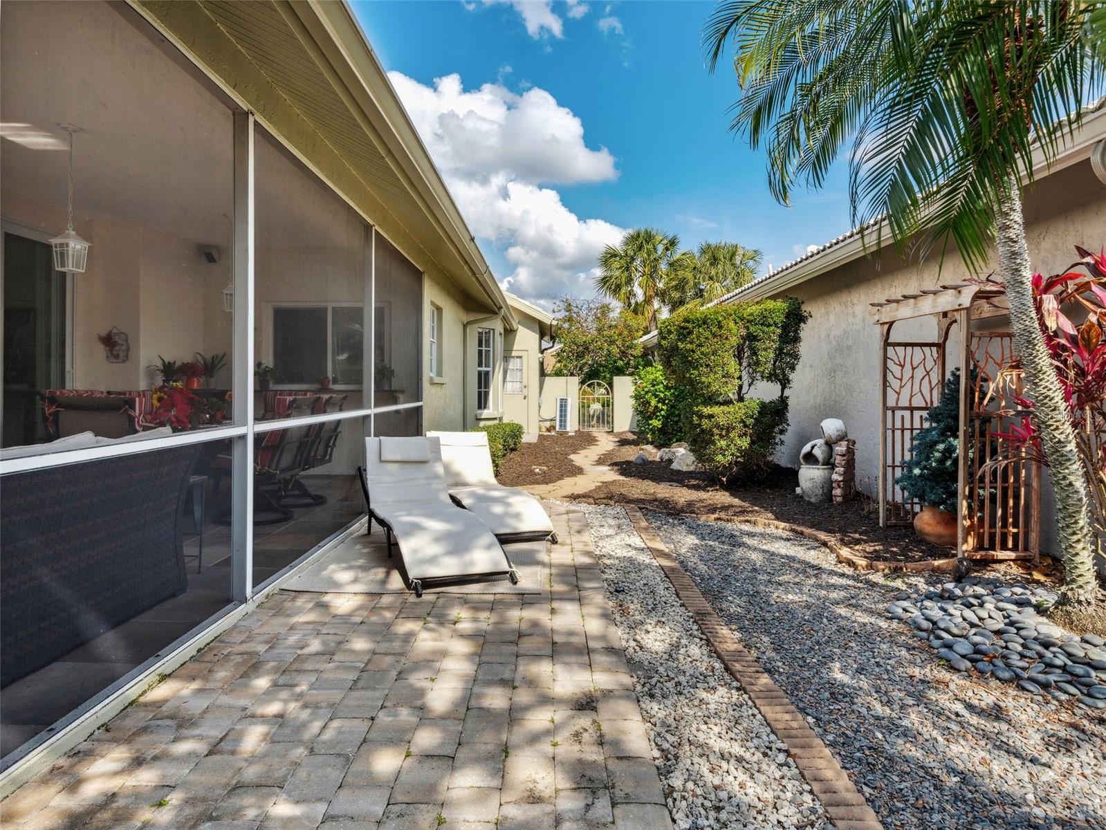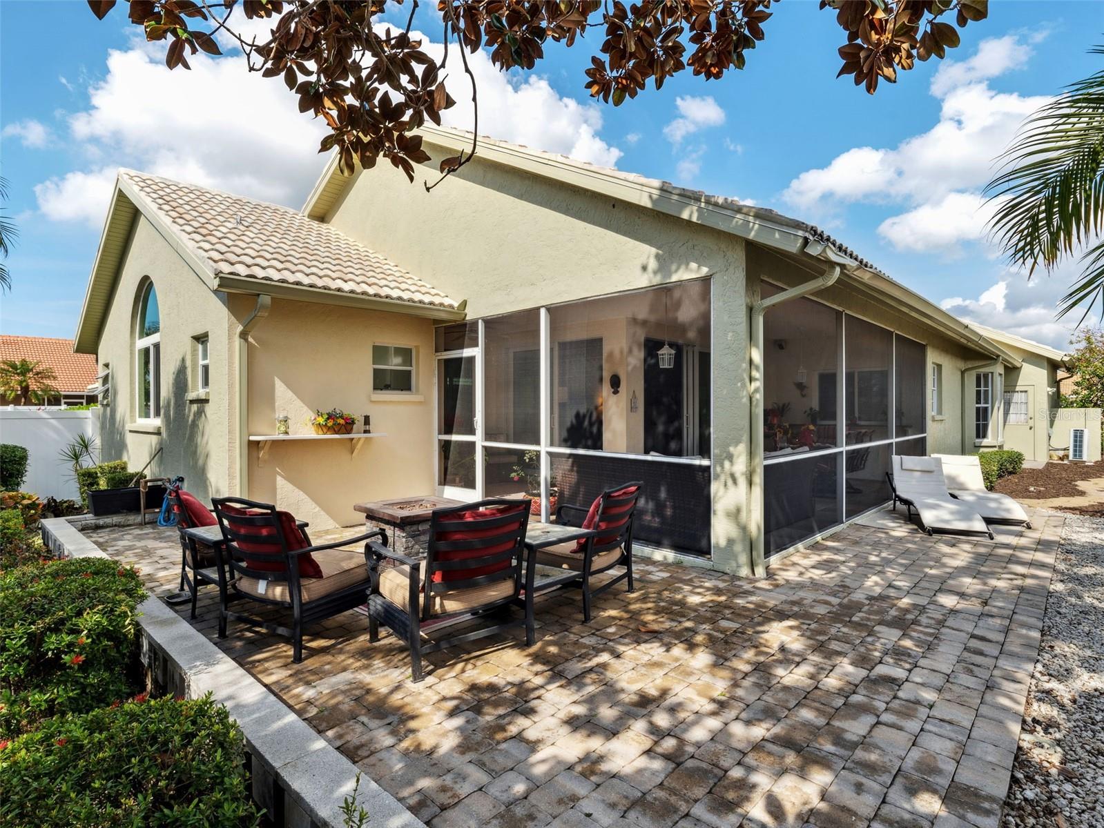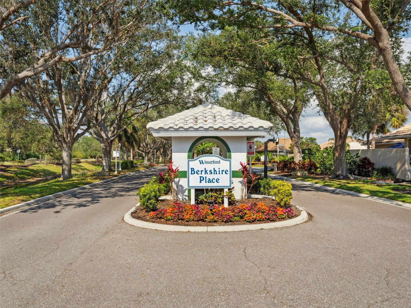This well-built and meticulously cared-for Waterford Carina model offers spacious living, abundant natural light, and exceptional outdoor space in a quiet, gated community of just 39 homes. Located in maintenance-free Berkshire Place, this 1,796 sq. ft. home features 2 bedrooms, 2 baths, and a versatile den--ideal for a home office or guest space.Designed for comfort and functionality, the open floor plan showcases cathedral ceilings, pocket doors, and a seamless mix of engineered hardwood, tile, and laminate flooring. The kitchen offers quartz countertops, a tile backsplash, refinished cabinetry, a stainless-steel double sink, and a large pantry. A pass-through window connects to the lanai, making entertaining effortless.The primary suite is a private retreat with a custom walk-in closet and impact-resistant sliding doors to the lanai. The en-suite bath features granite countertops, a walk-in shower with seamless glass doors, a garden tub, and cathedral ceilings. A well-appointed guest bedroom and bath provide comfortable accommodations for visitors.Outdoor living is a highlight, with a spacious covered lanai and wraparound stone patio, extending the outdoor space to 2,100 sq. ft. Enjoy ceiling fans, tile flooring, ambient lighting, and an extended quartz counter with cabinetry--perfect for relaxing or entertaining. Impact windows and doors provide peace of mind and energy efficiency.Low HOA fees cover lawn care, tree trimming, irrigation, and access to Waterford's exclusive amenities, including a Jr. Olympic-sized pool, Har-Tru tennis courts, fitness center, clubhouse, and social activities. With no CDD fees or capital contribution at closing, this home is an excellent value.Centrally located near Venice's beaches, Wellen Park, I-75, Legacy Trail, Sarasota Memorial Hospital, shopping, dining, and golf, this move-in-ready home is perfect as a primary residence or seasonal retreat.