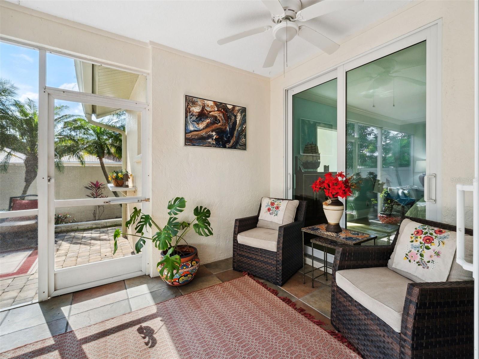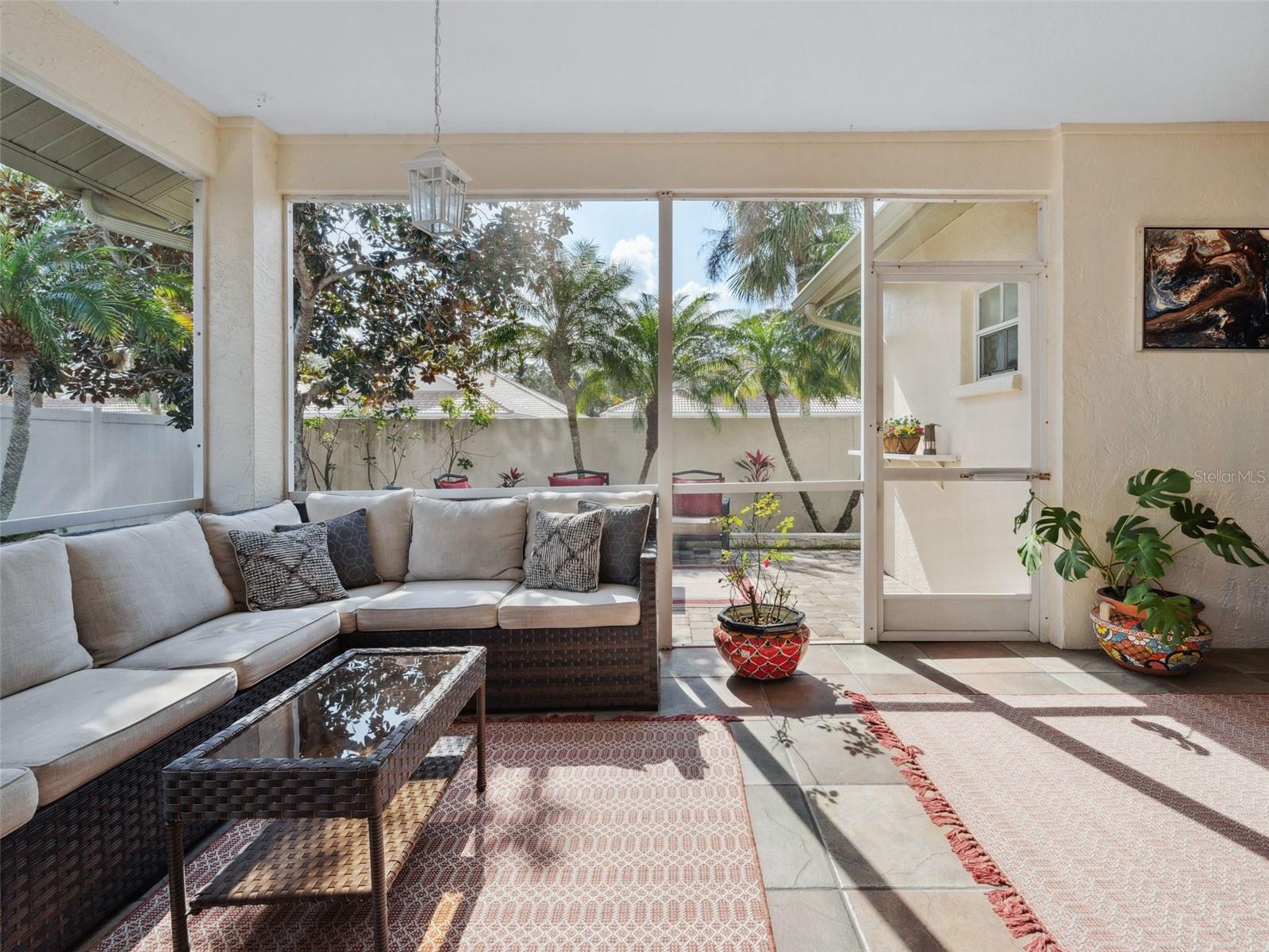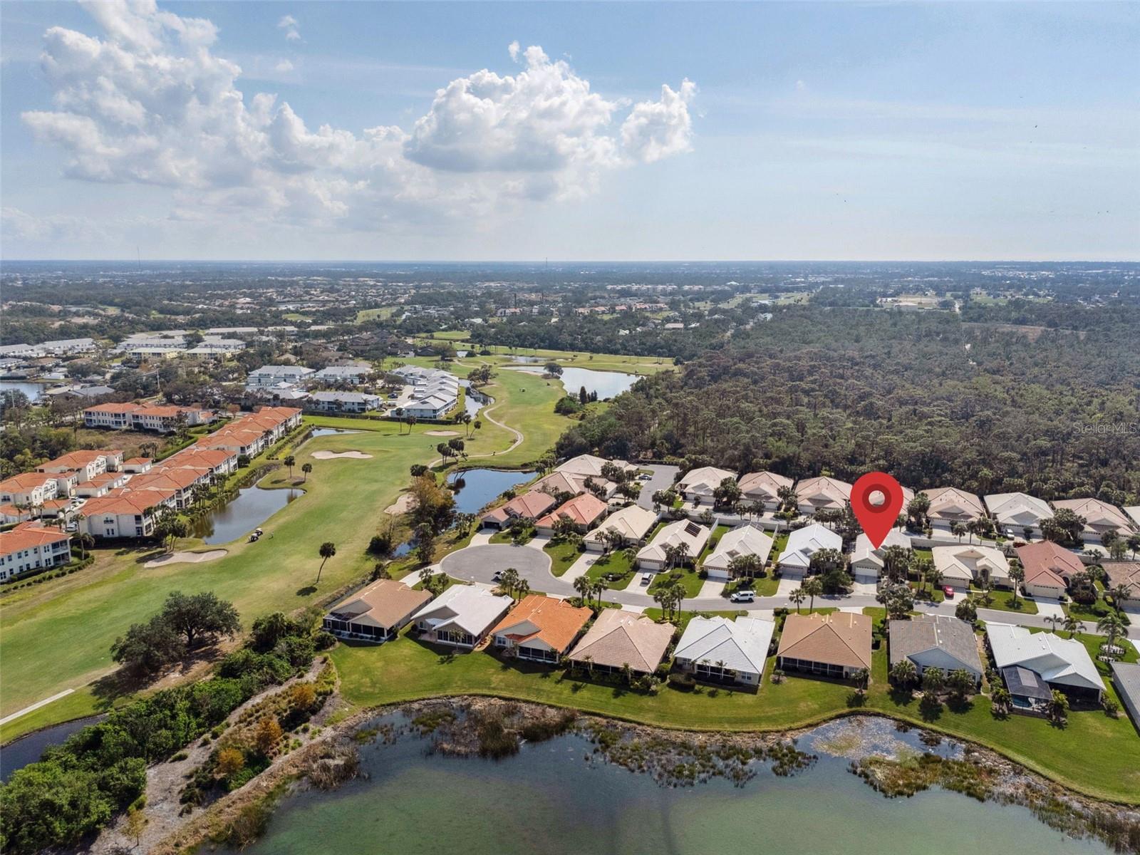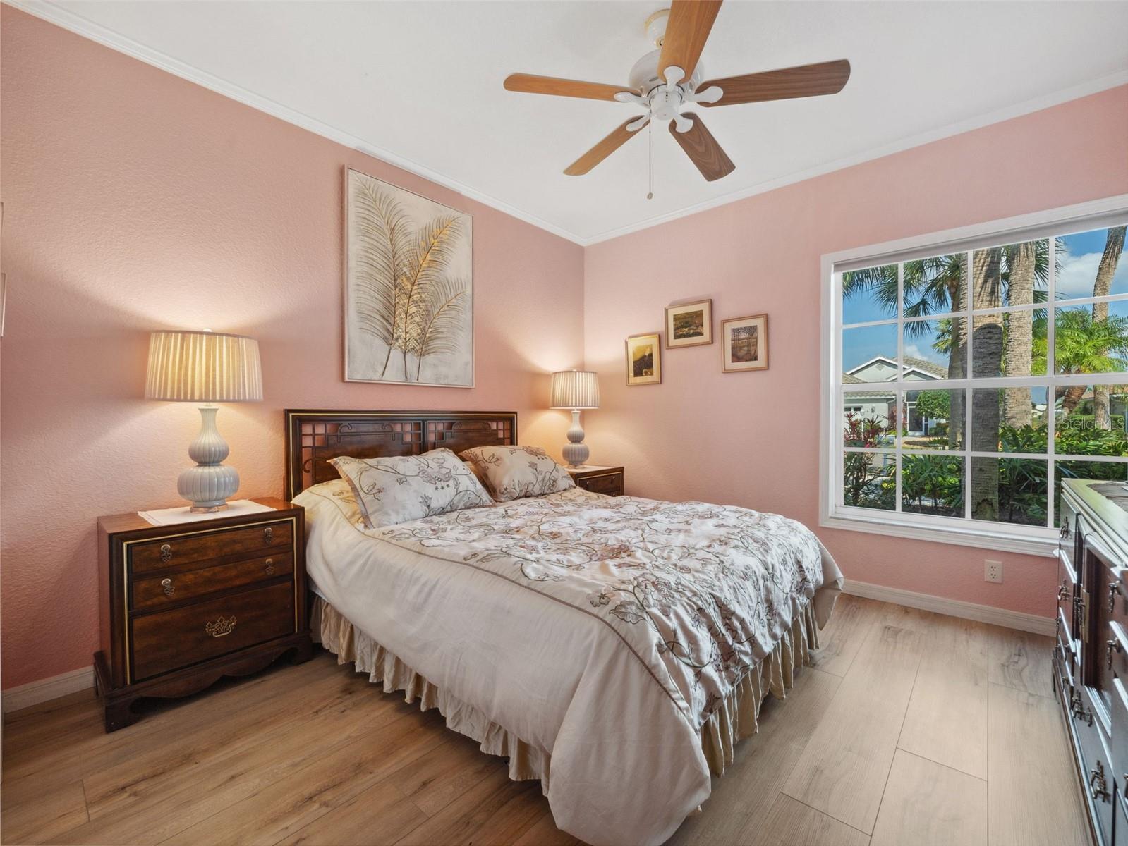 This well-built and meticulously cared-for Waterford Carina model offers spacious living, abundant natural light, and exceptional outdoor space in a quiet, gated community of just 39 homes. Located in maintenance-free Berkshire Place, this 1,796 sq. ft. home features 2 bedrooms, 2 baths, and a versatile den--ideal for a home office or guest space.Designed for comfort and functionality, the open floor plan showcases cathedral ceilings, pocket doors, and a seamless mix of engineered hardwood, tile, and laminate flooring. The kitchen offers quartz countertops, a tile backsplash, refinished cabinetry, a stainless-steel double sink, and a large pantry. A pass-through window connects to the lanai, making entertaining effortless.The primary suite is a private retreat with a custom walk-in closet and impact-resistant sliding doors to the lanai. The en-suite bath features granite countertops, a walk-in shower with seamless glass doors, a garden tub, and cathedral ceilings. A well-appointed guest bedroom and bath provide comfortable accommodations for visitors.Outdoor living is a highlight, with a spacious covered lanai and wraparound stone patio, extending the outdoor space to 2,100 sq. ft. Enjoy ceiling fans, tile flooring, ambient lighting, and an extended quartz counter with cabinetry--perfect for relaxing or entertaining. Impact windows and doors provide peace of mind and energy efficiency.Low HOA fees cover lawn care, tree trimming, irrigation, and access to Waterford's exclusive amenities, including a Jr. Olympic-sized pool, Har-Tru tennis courts, fitness center, clubhouse, and social activities. With no CDD fees or capital contribution at closing, this home is an excellent value.Centrally located near Venice's beaches, Wellen Park, I-75, Legacy Trail, Sarasota Memorial Hospital, shopping, dining, and golf, this move-in-ready home is perfect as a primary residence or seasonal retreat.