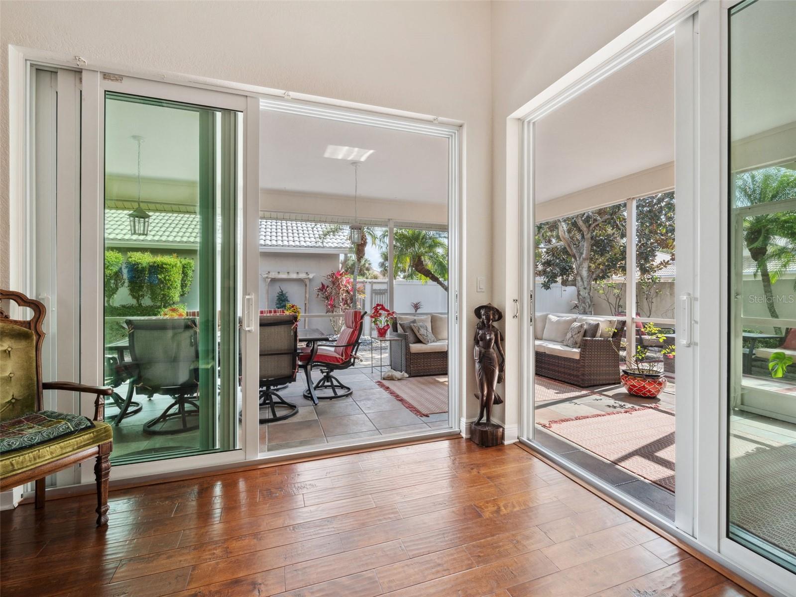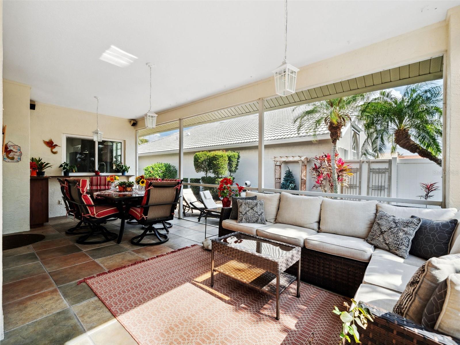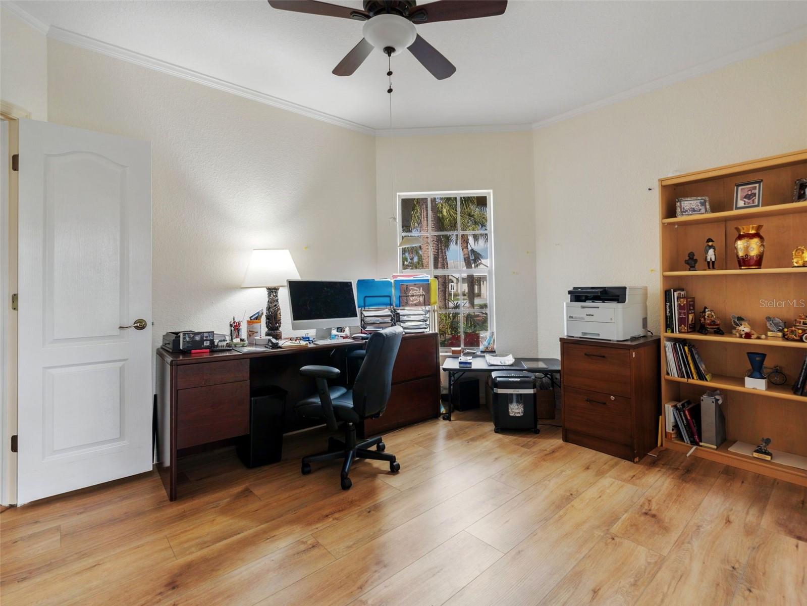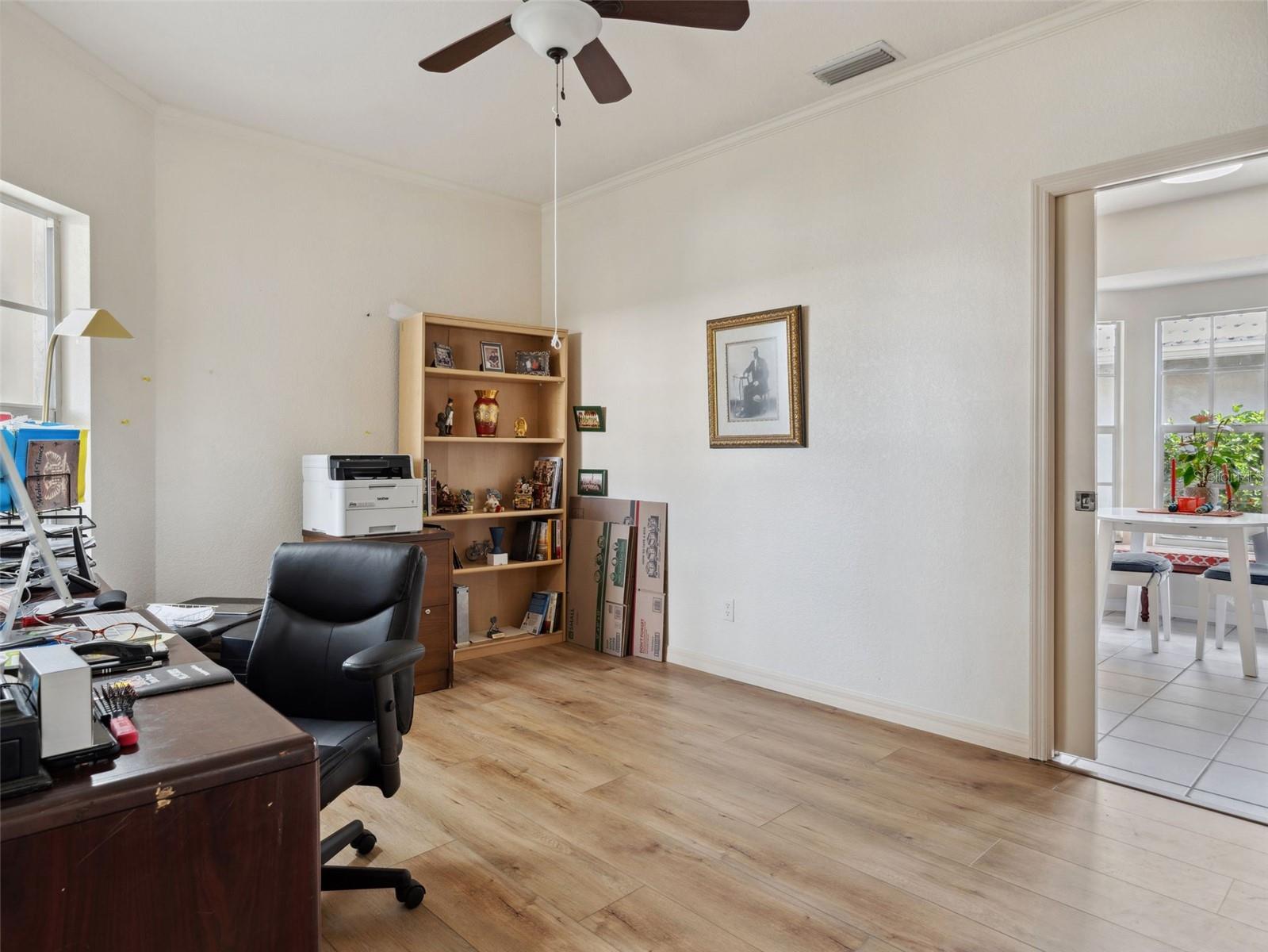 This well-built and meticulously cared-for Waterford Carina model offers spacious living, abundant natural light, and exceptional outdoor space in a quiet, gated community of just 39 homes. Located in maintenance-free Berkshire Place, this 1,796 sq. ft. home features 2 bedrooms, 2 baths, and a versatile den--ideal for a home office or guest space.Designed for comfort and functionality, the open floor plan showcases cathedral ceilings, pocket doors, and a seamless mix of engineered hardwood, tile, and laminate flooring. The kitchen offers quartz countertops, a tile backsplash, refinished cabinetry, a stainless-steel double sink, and a large pantry. A pass-through window connects to the lanai, making entertaining effortless.The primary suite is a private retreat with a custom walk-in closet and impact-resistant sliding doors to the lanai. The en-suite bath features granite countertops, a walk-in shower with seamless glass doors, a garden tub, and cathedral ceilings. A well-appointed guest bedroom and bath provide comfortable accommodations for visitors.Outdoor living is a highlight, with a spacious covered lanai and wraparound stone patio, extending the outdoor space to 2,100 sq. ft. Enjoy ceiling fans, tile flooring, ambient lighting, and an extended quartz counter with cabinetry--perfect for relaxing or entertaining. Impact windows and doors provide peace of mind and energy efficiency.Low HOA fees cover lawn care, tree trimming, irrigation, and access to Waterford's exclusive amenities, including a Jr. Olympic-sized pool, Har-Tru tennis courts, fitness center, clubhouse, and social activities. With no CDD fees or capital contribution at closing, this home is an excellent value.Centrally located near Venice's beaches, Wellen Park, I-75, Legacy Trail, Sarasota Memorial Hospital, shopping, dining, and golf, this move-in-ready home is perfect as a primary residence or seasonal retreat.
