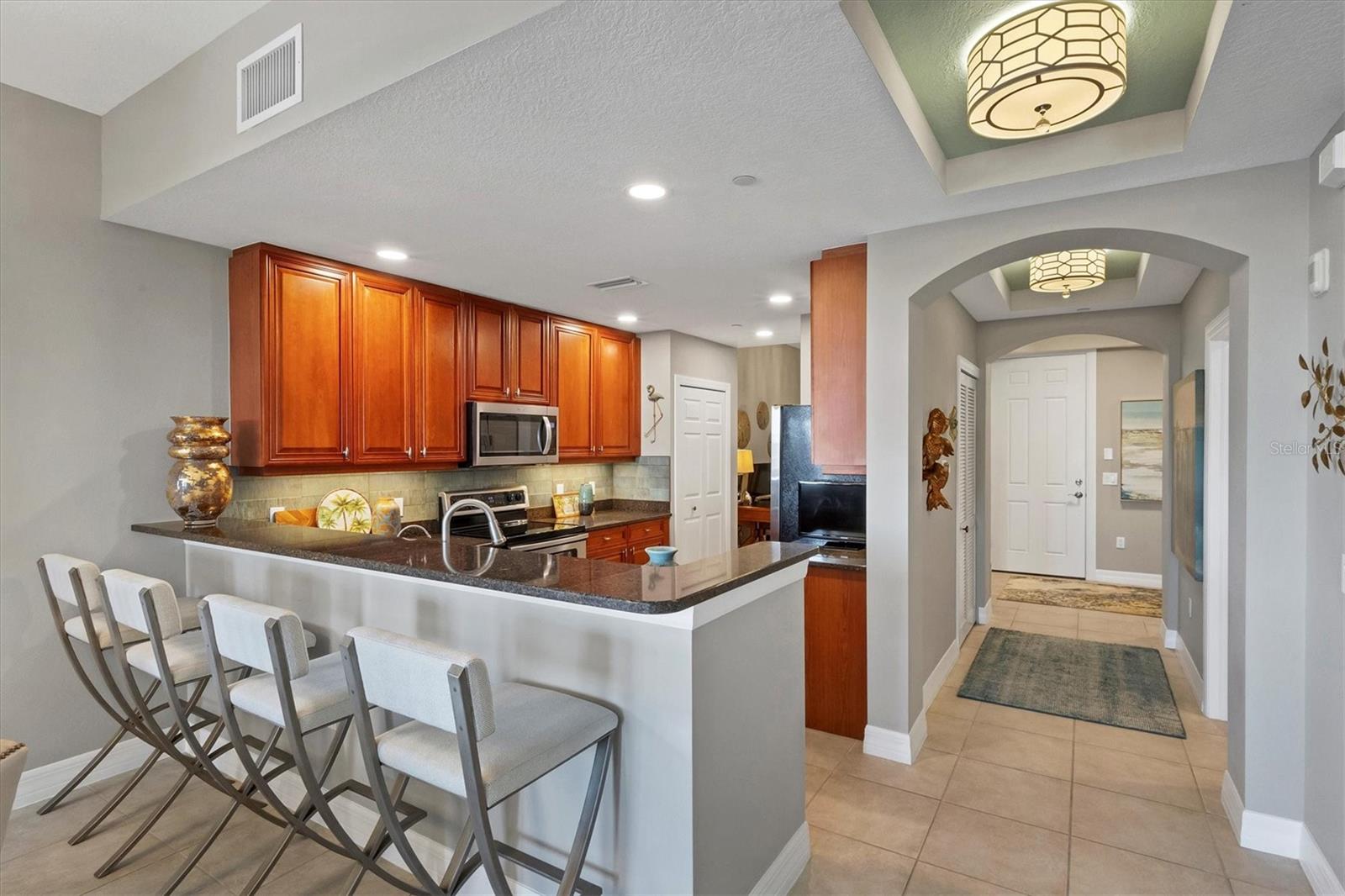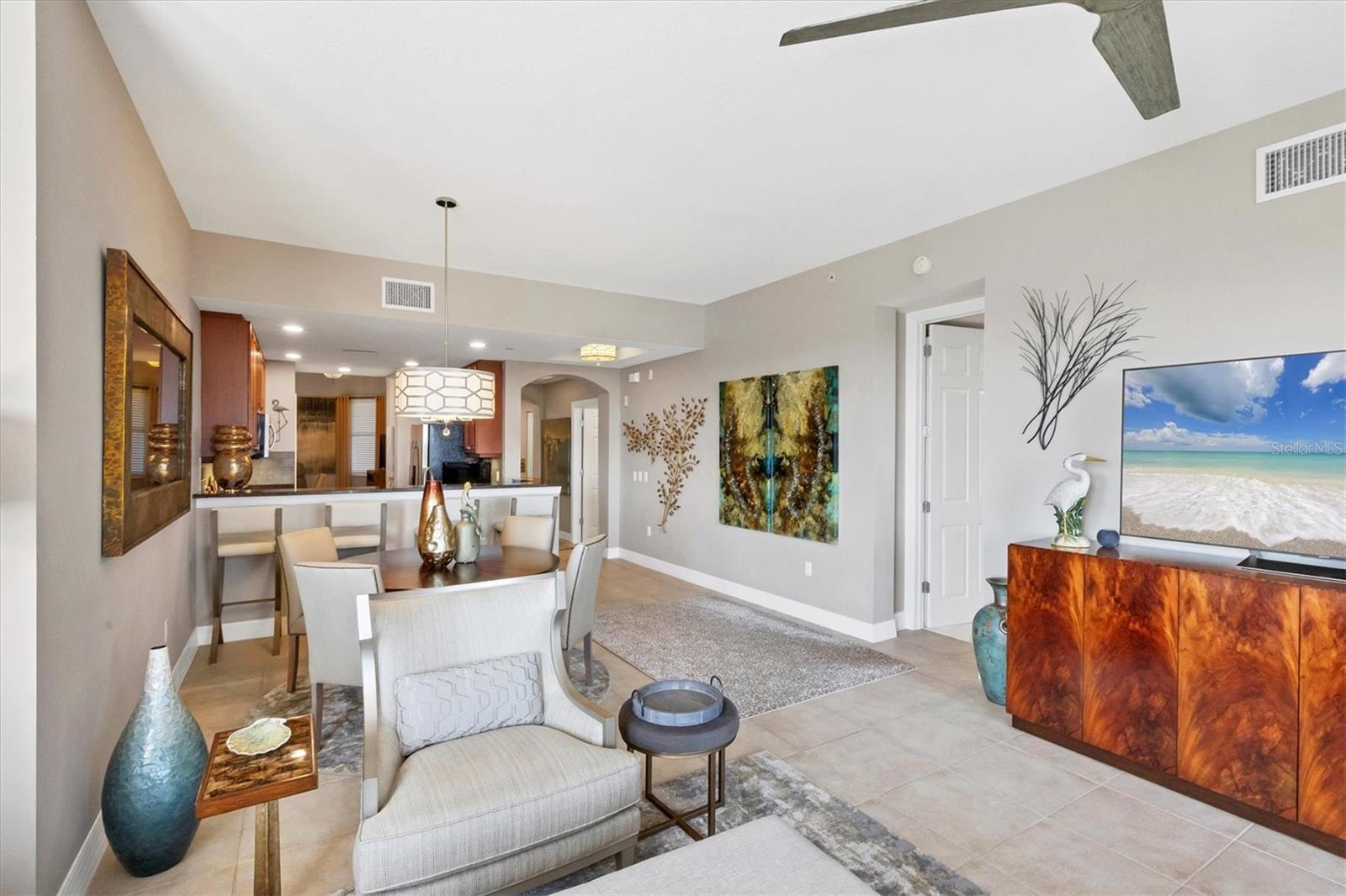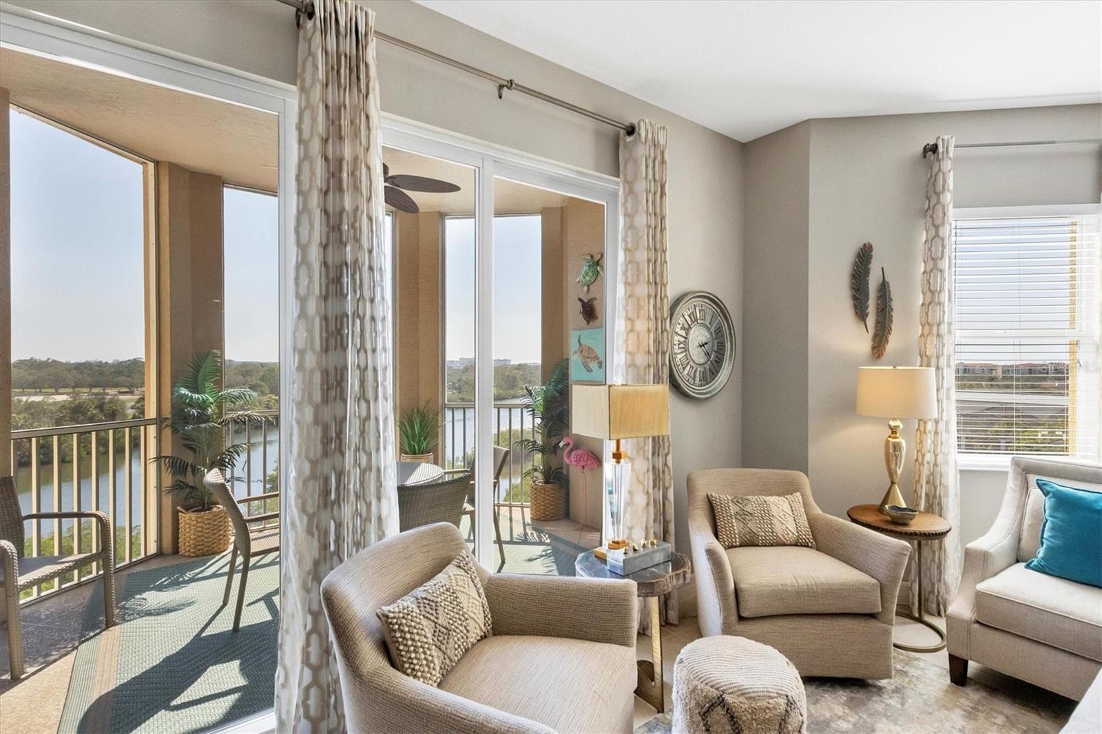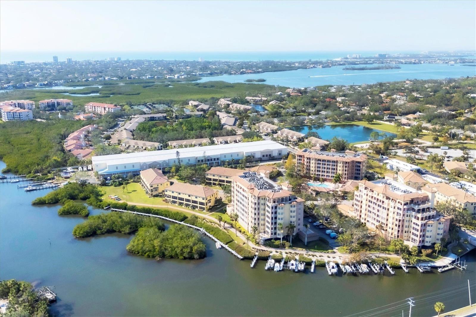 WATERFRONT CONDO!! Bring your offers...IMMACULATE and IMPRESSIVE, updated condo in the picturesque, gated, waterfront community of Phillippi Landings! This designer styled, TURNKEY furnished 2 bedroom, 2 bath condo with additional den/office space boasts panoramic views of Phillippi Creek, the Intracoastal waterway, Siesta Key and the Gulf waters! This ideal home is one of the few units with its own PRIVATE ELEVATOR entry into your foyer! Kitchen has all granite counters, new tiled back splash, SS appliances, solid wood cabinets, recessed lighting and an eat-in bar. There is beautiful tile throughout the main living areas accented with 5 1/2 inch baseboards, new ceiling fans, new light fixtures and has been styled with all Robb & Stucky and Norris furnishings that showcase timeless, luxury living... all included! Primary suite is spacious and has 2 walk-in closets, an elegant tray ceiling, and a private door to the screened-in lanai to relax and watch the boats go by, all the abundant nature, Phillippi Estate park and sunsets over Siesta Key and the Gulf waters. En-suite primary bath opens with an easy slide, new barn door, into your spa-like retreat with 2 separate granite vanities, updated walk-in shower and soaker tub. The flex room can be your office, den, craft room.. you decide! This desirable split floor plan has an elegant 2nd bedroom, updated full bath with granite vanity, and tiled tub/shower combo. Laundry closet is convenient and has extra storage cabinets. There is an assigned parking space under the building and your own storage room with electric, most do not have this extra feature. This building was built in 2006 to hurricane codes for peace of mind. The prime location of this community has incredible walkability to local restaurants, a short bike ride to Siesta Key, and a quick stroll over the bridge to the farmers market, art shows and free concerts at Phillippi Estate park. This a boaters paradise with optional docks available for lease or purchase, or store it at the marina next door. Location is amazing.. minutes out to the Intracoastal waterway, and Gulf to go fishing, visit area beaches and take in incredible sunsets! Like to kayak or paddle board? No problem.. storage is on-site with private launch area. Other top-notch amenities include a resort-style heated pool/spa, clubhouse to meet up with friends and play cards/games, full service catering kitchen, well-equipped fitness center, and dog park. WELCOME TO FLORIDA LIVING AT ITS FINEST!