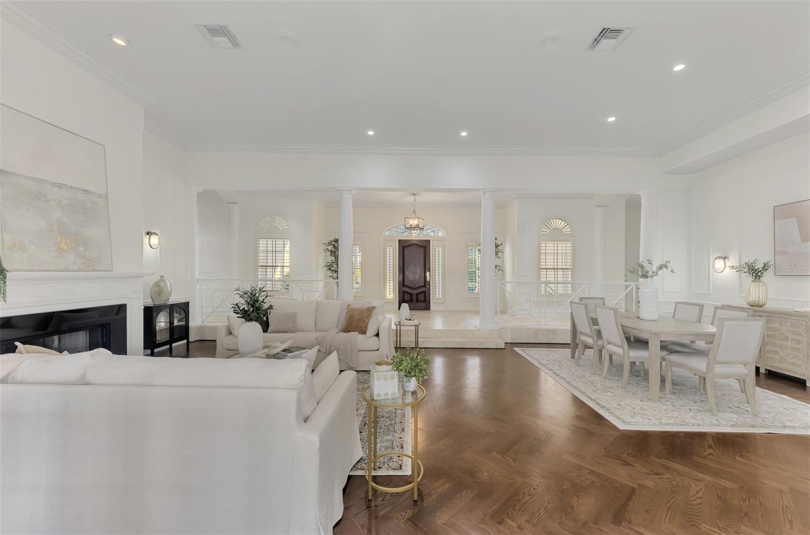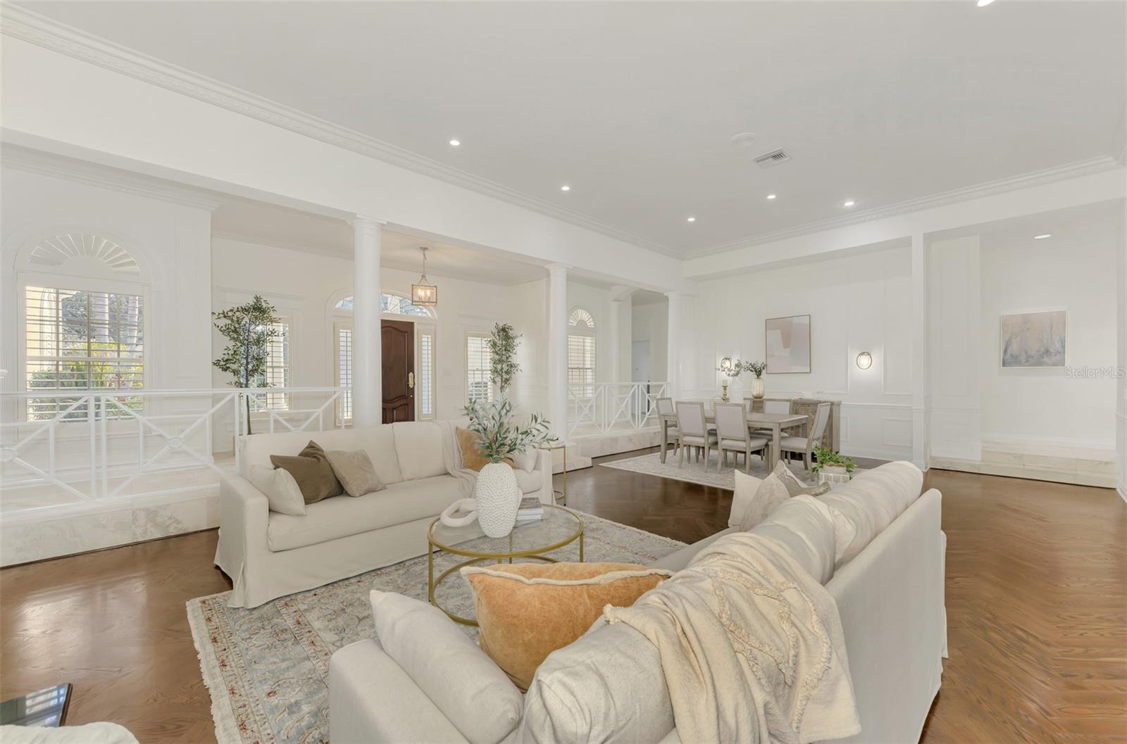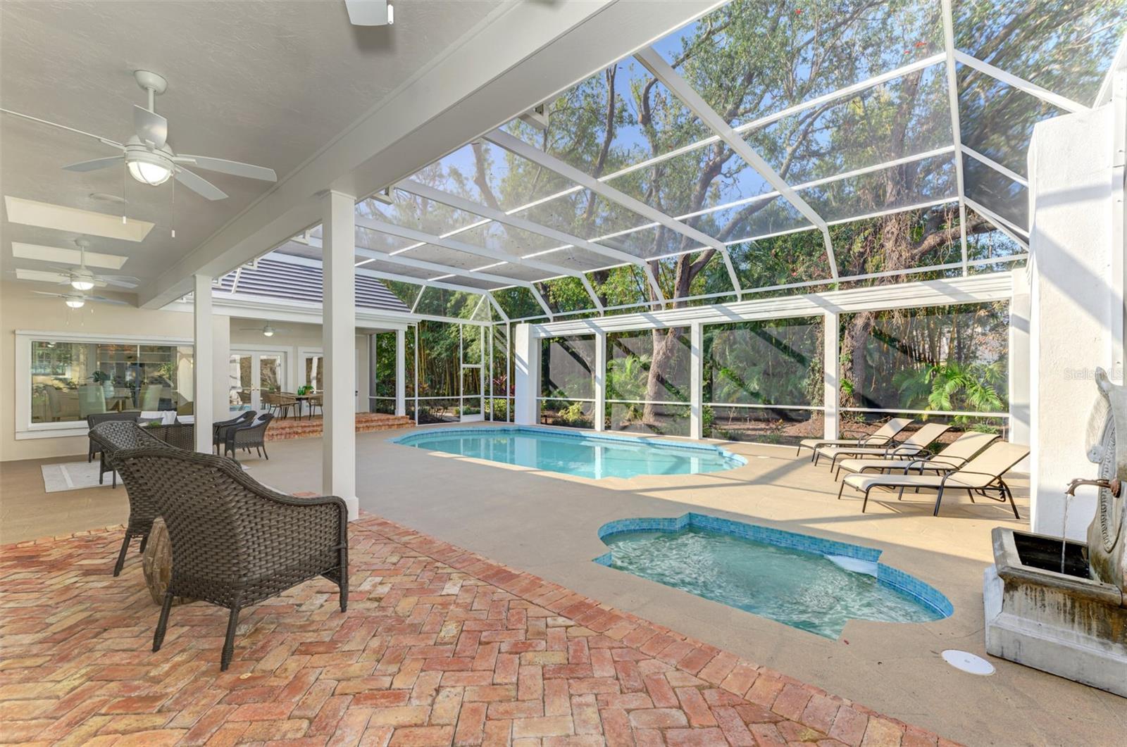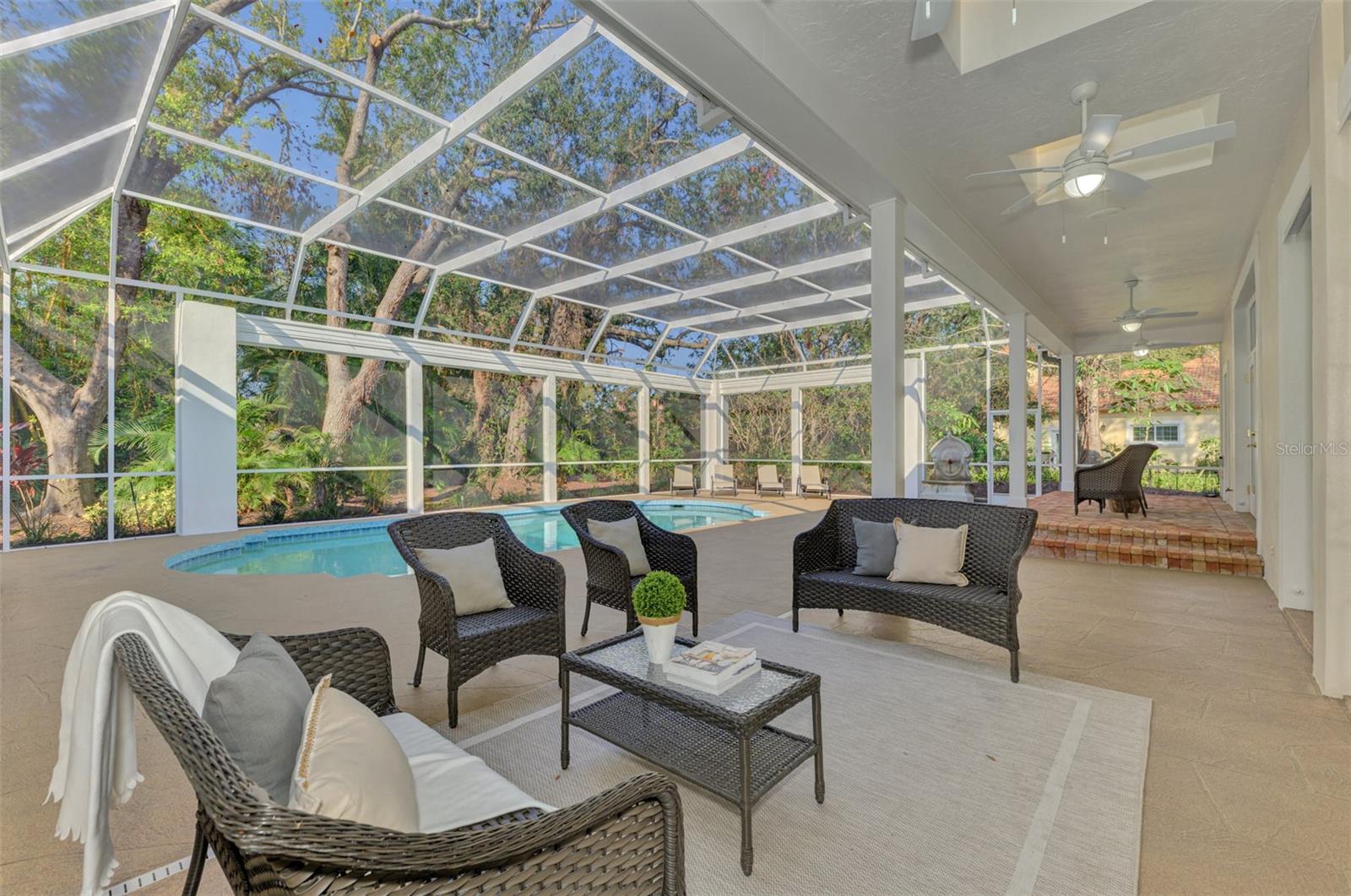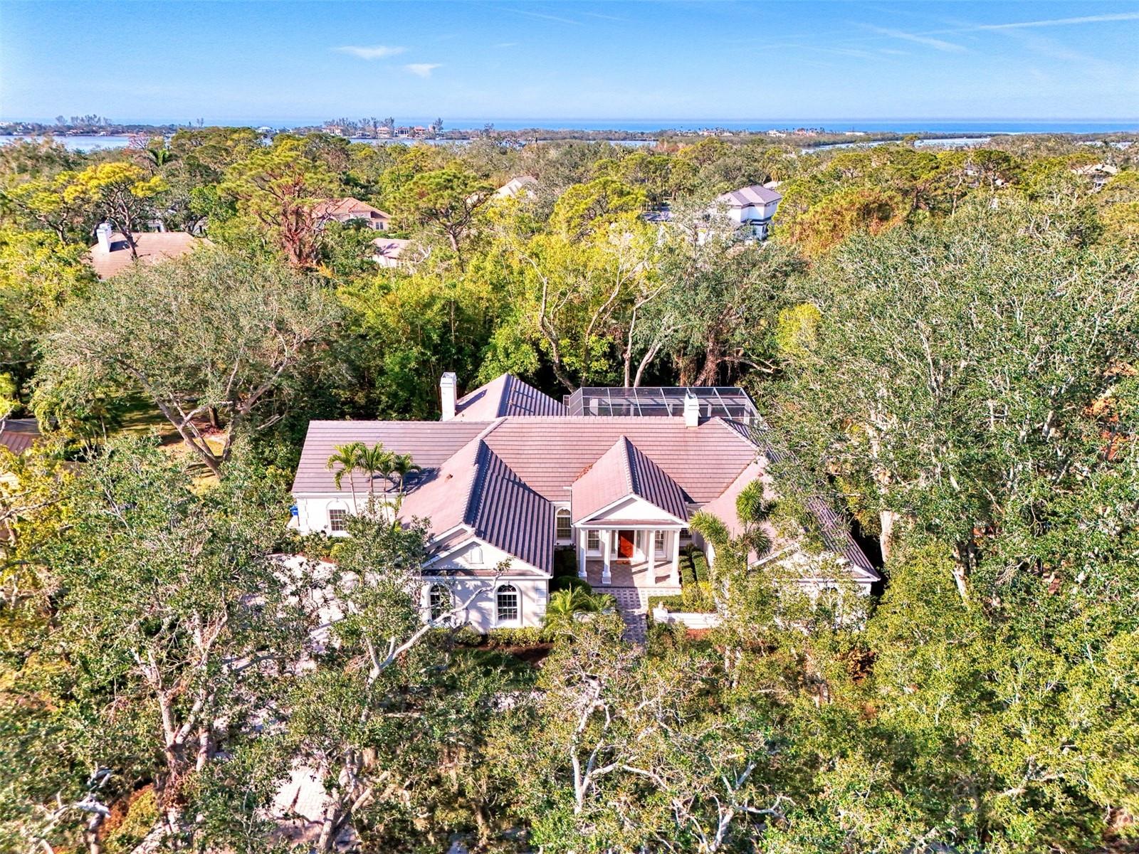 This is your rare chance to claim a spectacular estate in Sarasota's premier golf and country club community THE OAKS. This elegant home seamlessly blends timeless architecture with resort-style living. Beyond the private gates, step into over 4,000 square feet of refined interiors featuring dramatic ceilings, architectural columns, and panoramic views. The expansive layout includes 4 bedrooms, 5 bathrooms, formal and casual living spaces, and an executive Office/Den/Bourbon Tasting Room.The gourmet kitchen is perfectly equipped for culinary entertainment, with custom cabinetry, premium appliances, and a spacious island that flows into the family room. A luxurious owner's suite provides a private sanctuary with jetted bath, 3 walk-in closets, and direct access to the pool terrace.Outdoors, your personal retreat awaits: a heated pool and spa, covered dining and lounge areas, separate firepit area, and tropical landscaping. Membership to The Oaks Country Club is mandatory. You can decide on a Social Membership or a Full Golf Equity Membership. Details attached. Club amenities include: 36 holes of golf, tennis, pickleball, croquet, 3 dining options, fitness, community pool/spa. Situated minutes from world-class beaches, fine dining, and downtown Sarasota's cultural attractions. Make this your new home in Paradise!Crypto currency offers considered. Call for more information.