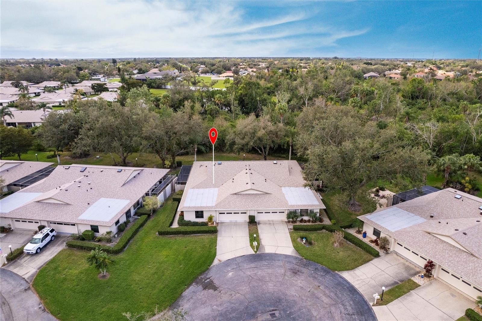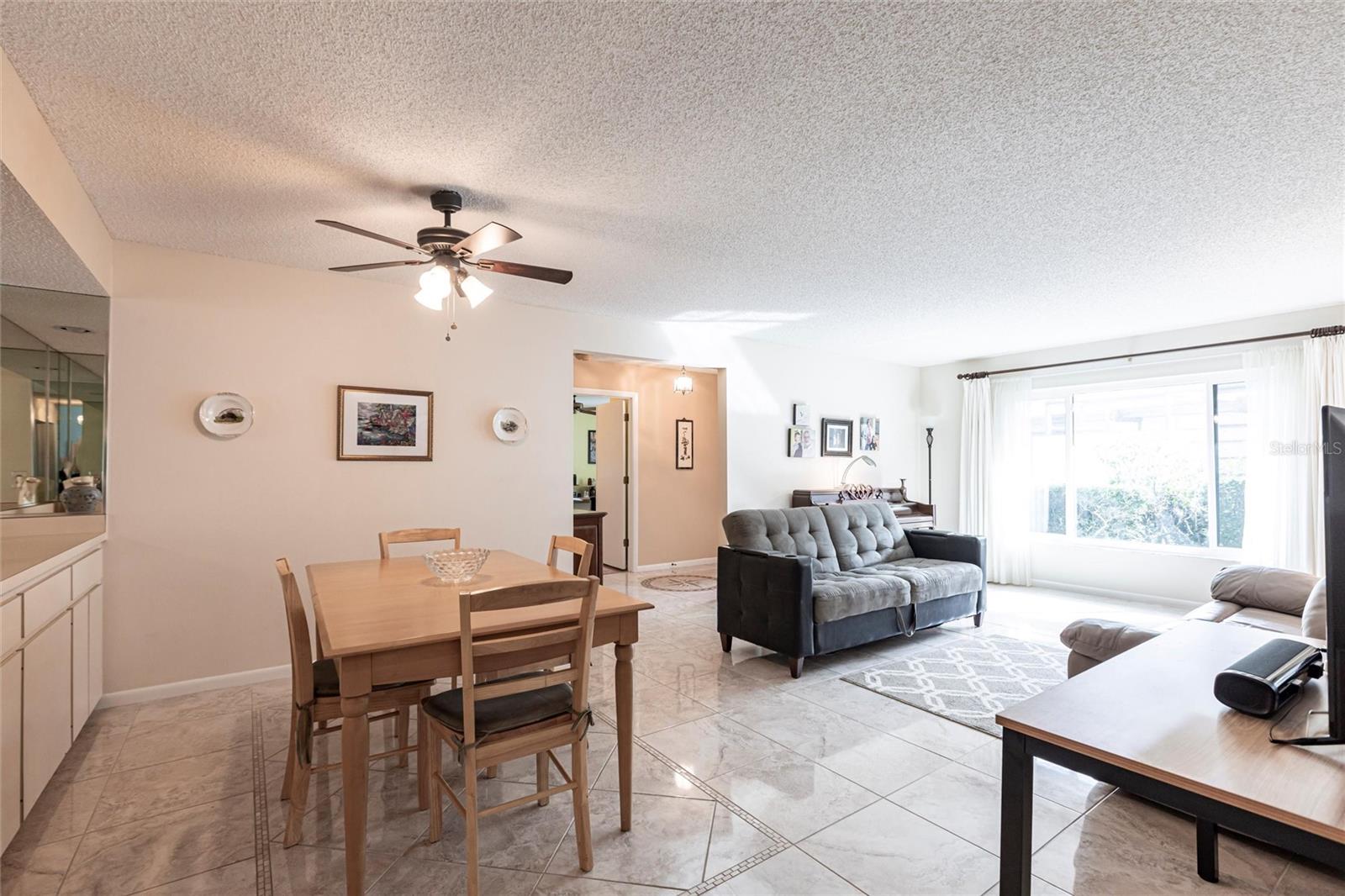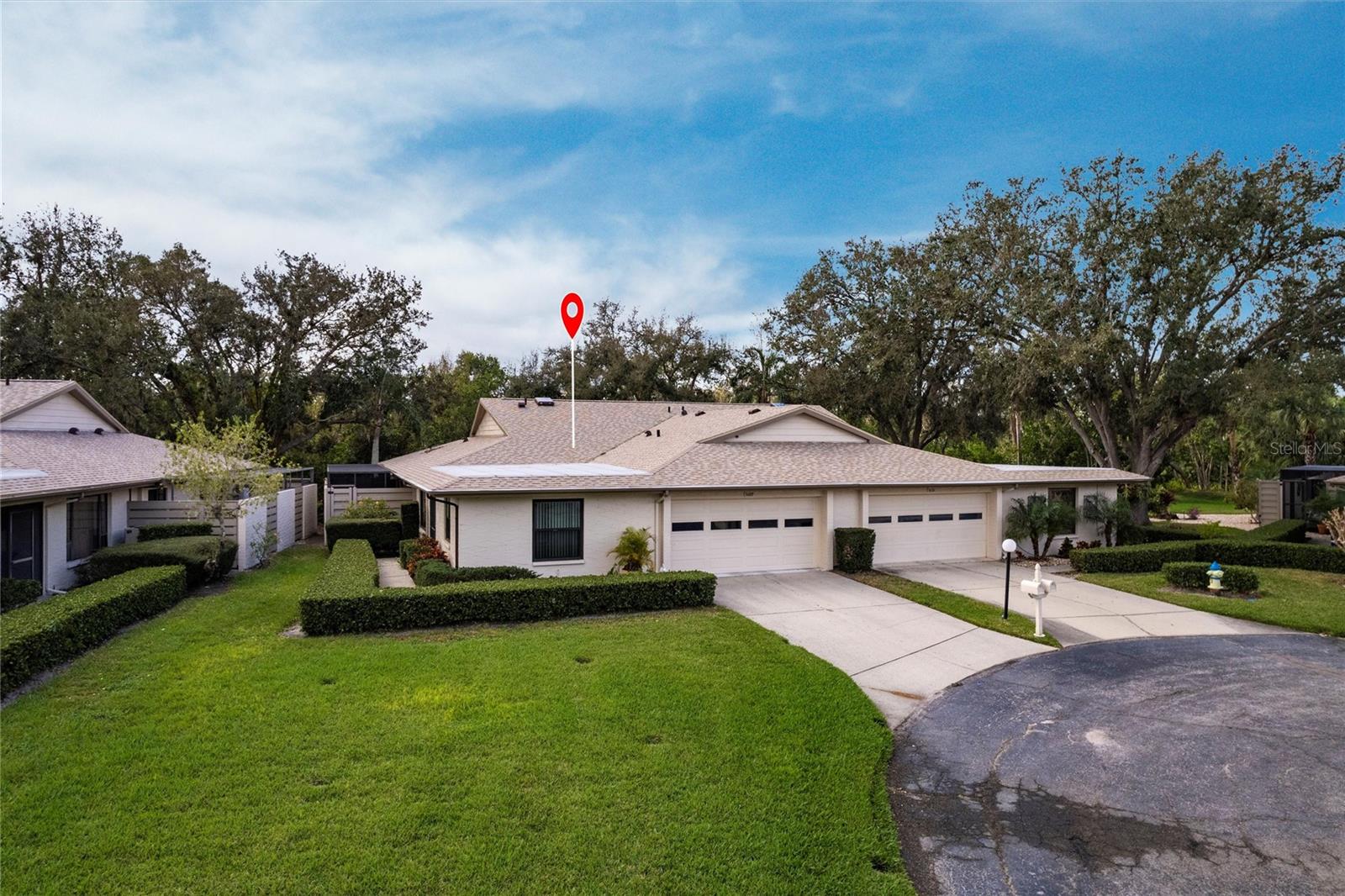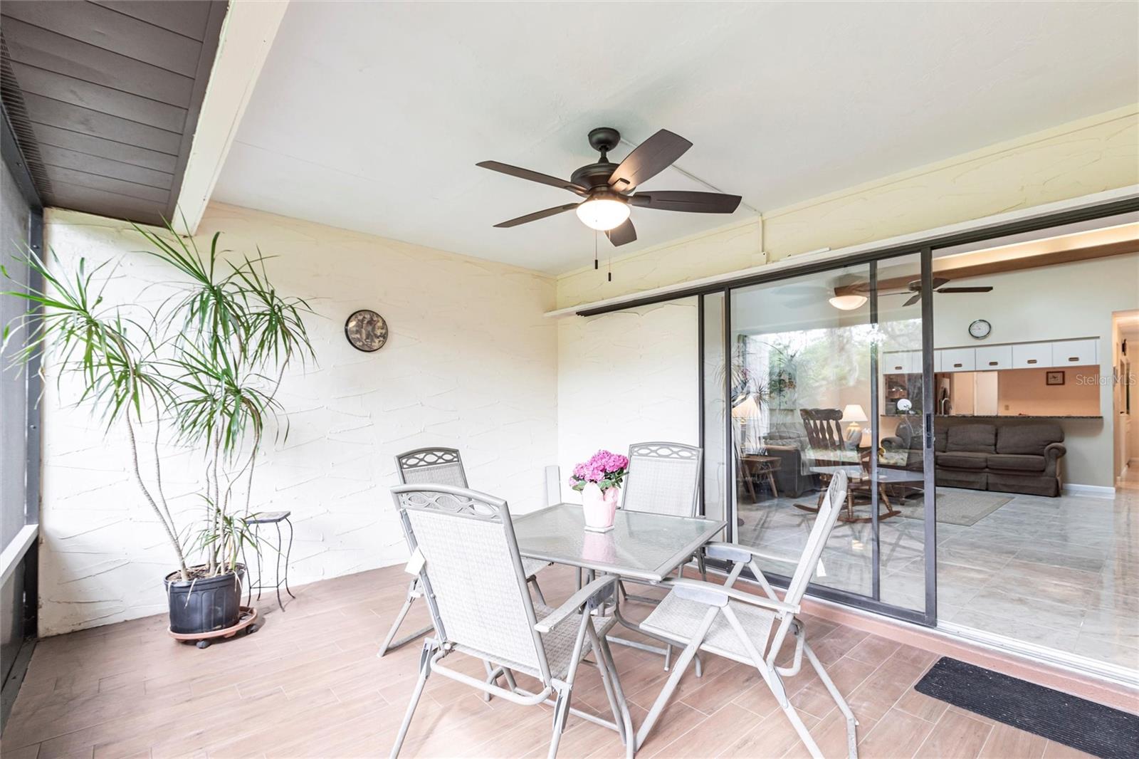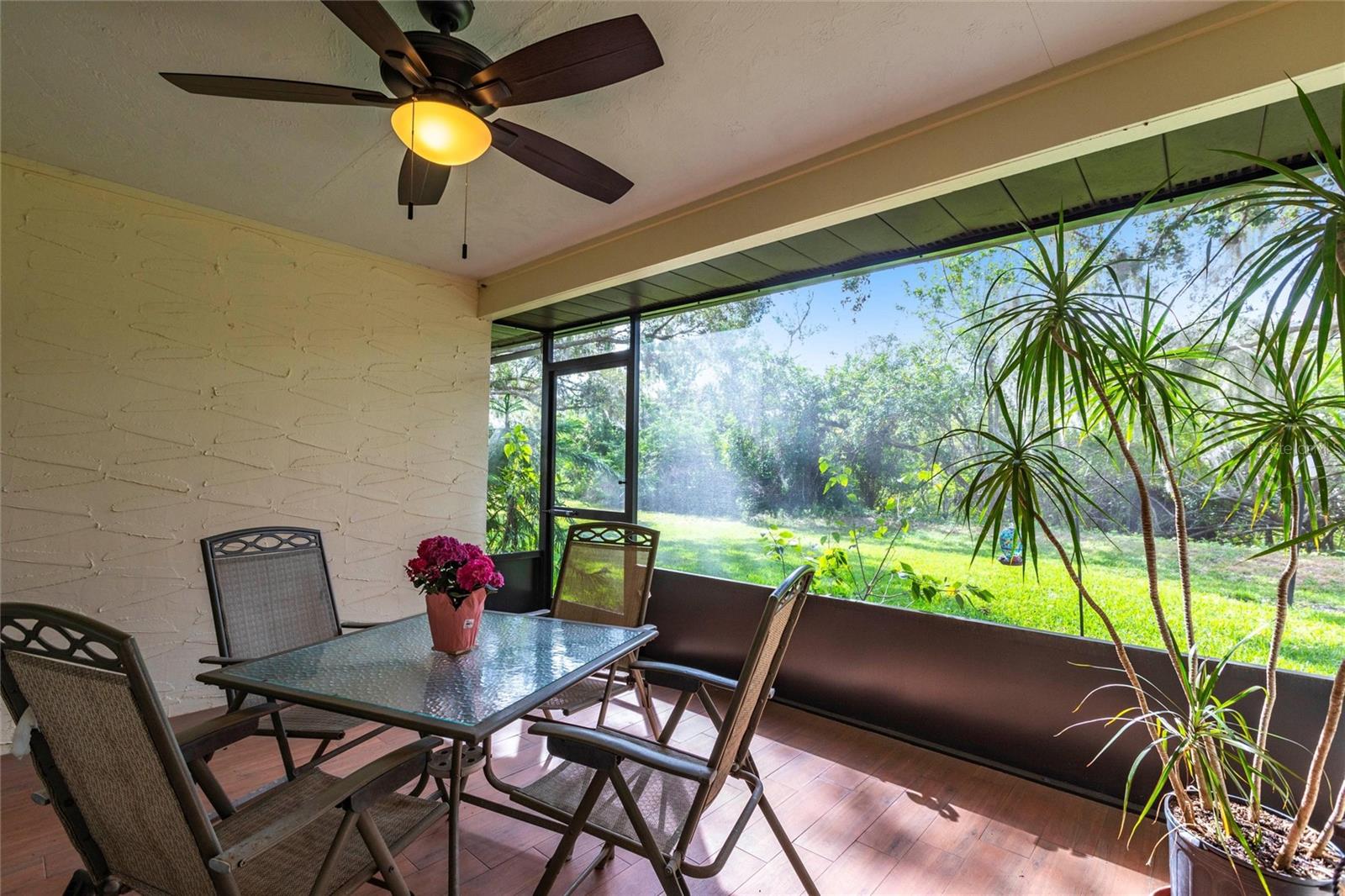 Lovingly updated and maintained, this is an incredible opportunity in Center Gate Estates with over 2000 sq ft of living space, located on a quiet cul-de-sac and close to the community pool. You'll have peace of mind with a new roof, hurricane windows, slider, and garage door. The kitchen was opened with pass-throughs to bring in natural light and ease of entertaining, while it also features updated appliances. The expansive primary suite features a walk-in closet, an ensuite bathroom with a double vanity, separate water closet with a bidet, and a sliding glass door to a private patio. The second bedroom is located conveniently next to the hall bathroom and has access to the patio via the sliding glass doors. French doors open into the third bedroom, which is currently used as a home office. The living room has a dining area, located handily beside the kitchen, and features a large picture window. The spacious family room has vaulted ceilings and skylights were added to welcome even more natural light. Relax on the screened porch with views of the lush greenspace, or open the sliding doors to expand your living area seamlessly. The laundry room features built-in cabinetry and is located off the two-car garage. Take advantage of maintenance-free living in Center Gate Estates, which is located close to shopping, restaurants, and just minutes to I-75.
