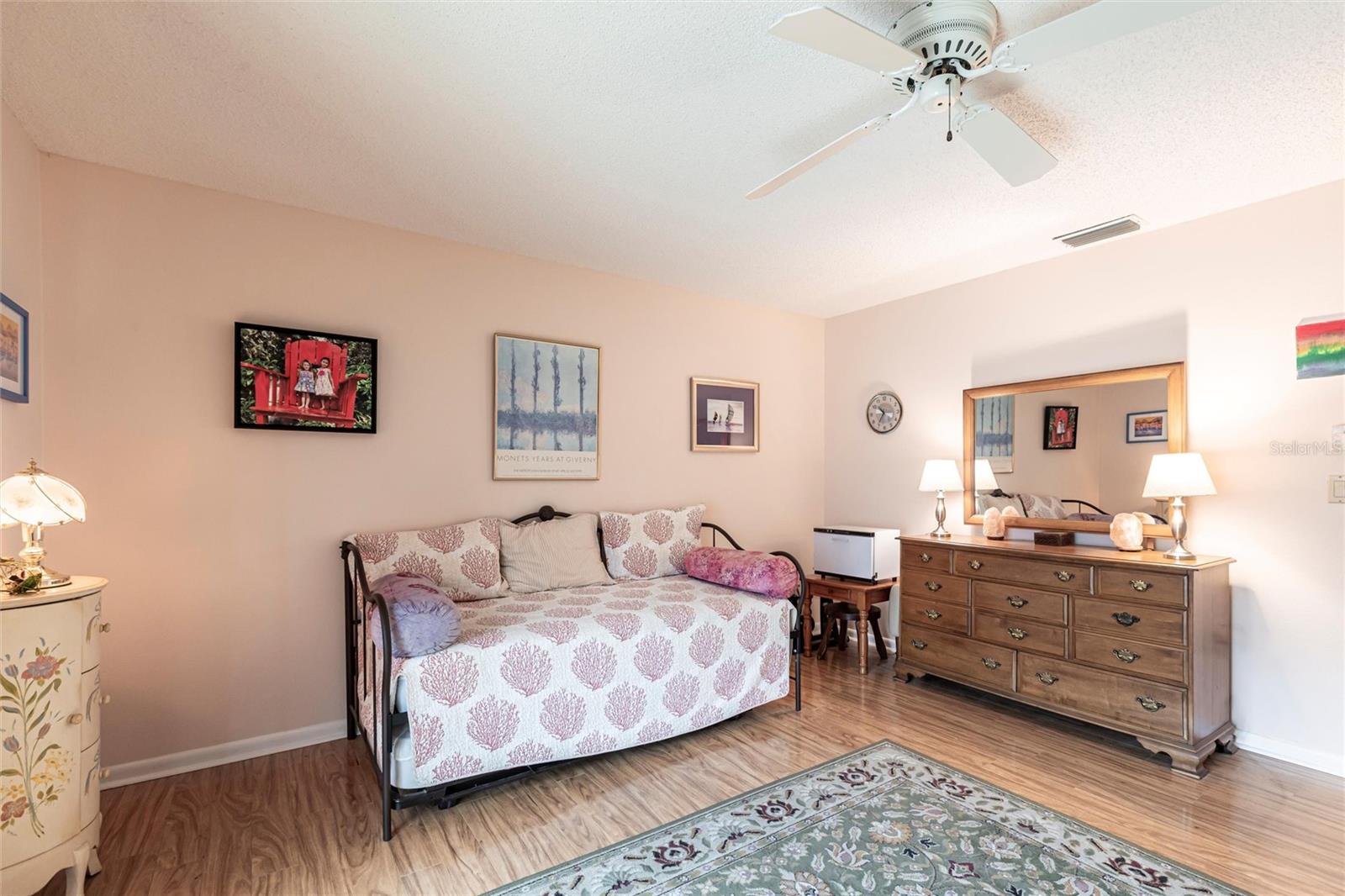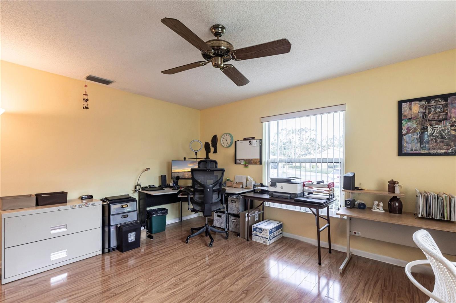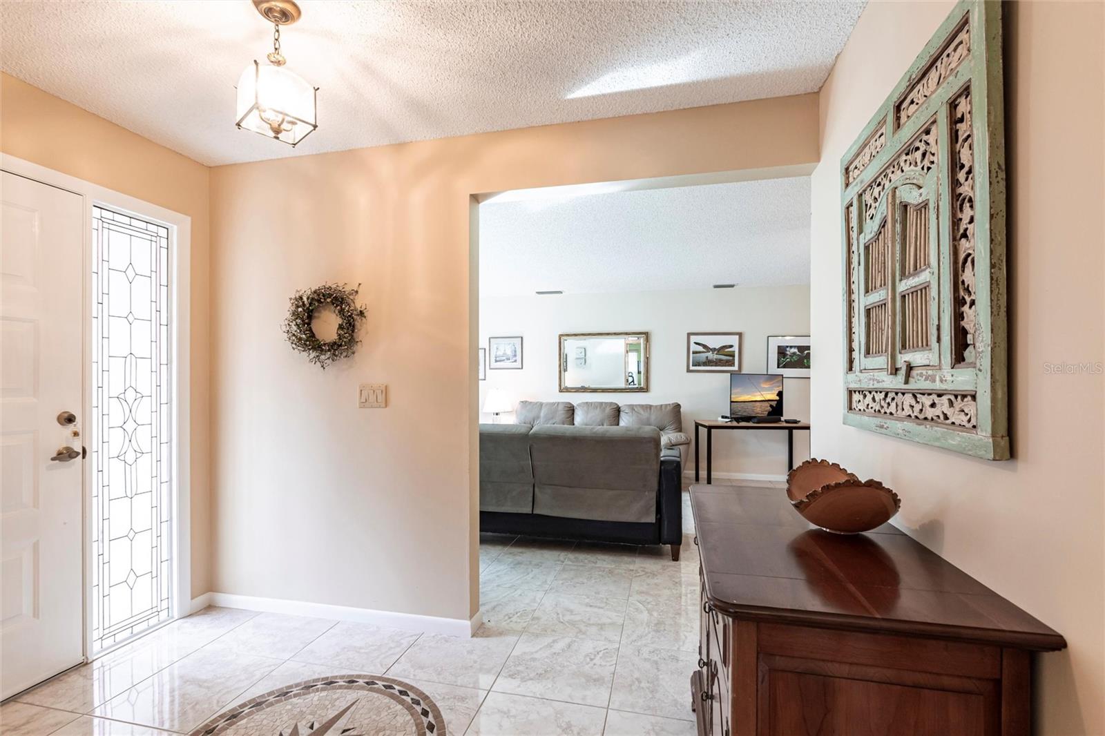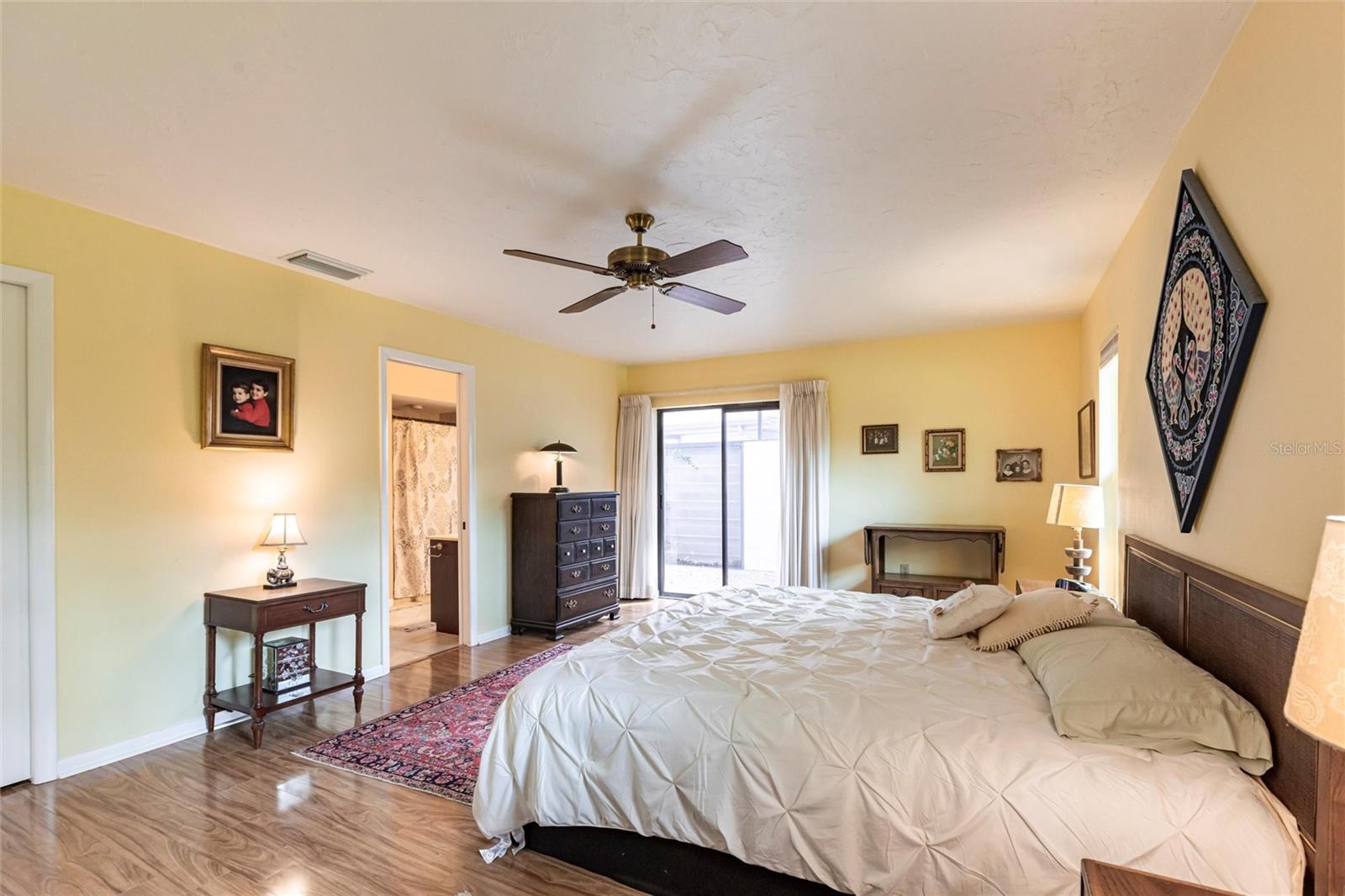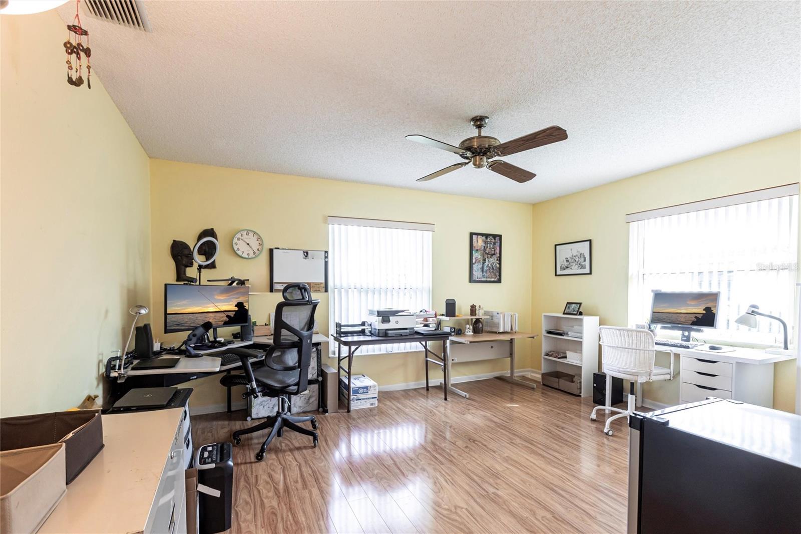 Lovingly updated and maintained, this is an incredible opportunity in Center Gate Estates with over 2000 sq ft of living space, located on a quiet cul-de-sac and close to the community pool. You'll have peace of mind with a new roof, hurricane windows, slider, and garage door. The kitchen was opened with pass-throughs to bring in natural light and ease of entertaining, while it also features updated appliances. The expansive primary suite features a walk-in closet, an ensuite bathroom with a double vanity, separate water closet with a bidet, and a sliding glass door to a private patio. The second bedroom is located conveniently next to the hall bathroom and has access to the patio via the sliding glass doors. French doors open into the third bedroom, which is currently used as a home office. The living room has a dining area, located handily beside the kitchen, and features a large picture window. The spacious family room has vaulted ceilings and skylights were added to welcome even more natural light. Relax on the screened porch with views of the lush greenspace, or open the sliding doors to expand your living area seamlessly. The laundry room features built-in cabinetry and is located off the two-car garage. Take advantage of maintenance-free living in Center Gate Estates, which is located close to shopping, restaurants, and just minutes to I-75.