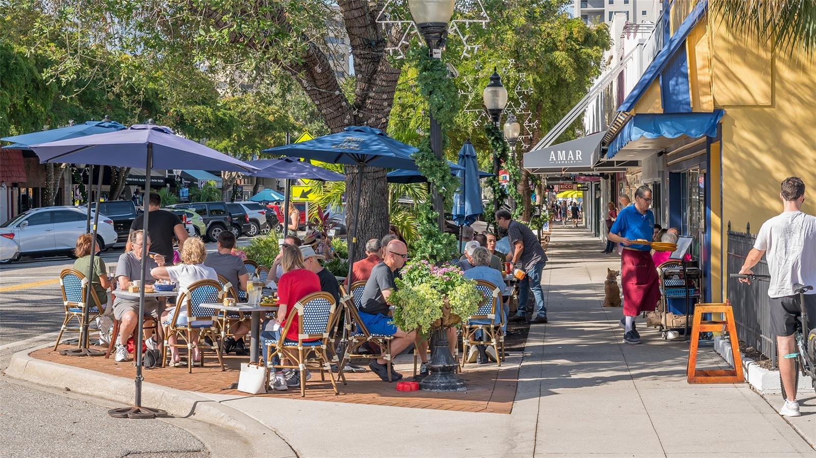 Discover an incredible opportunity to own a stunning townhouse in the heart of Sarasota's historic Laurel Park District. Step through the gated, low-maintenance front yard overlooking the community fountain, and you will enter a foyer that leads to the luxury of a private elevator providing effortless access to every level of the home. Designed for both comfort and entertaining, the expansive living area features an open-concept kitchen that seamlessly flows into the dining and living spaces. The kitchen is a chef's dream, with stainless appliances, solid stone countertops, and a stunning designer tile backsplash. Adjacent to the main living area you will find a half bath for you and your guest's convenience. The 3rdlevel of the home is dedicated to the owner's primary suite offering a spa-like bathroom featuring a large walk-in shower, a beautiful double sink vanity with extraordinary counter space and cabinets, elegant tile work, and a custom walk-in closet. Just steps from the primary suite, there is a well-appointed laundry area complete with a washer, dryer, and a large wash sink for added convenience. Adjacent to the primary suite, you will find a space perfect for a small office, TV area, playroom, or even a small library. The top level offers two additional en-suite bedrooms, providing ample space for guests or family. Beautiful engineered hardwood floors run throughout, complemented by beautiful tile in all the bathrooms along with a neutral color palette that suits any style. As an end unit, this home is filled with natural light, thanks to additional windows adorned with custom wood and fabric blinds. Every level features two balconies, creating a seamless blend of indoor and outdoor living. This exceptional downtown residence also includes a private two-car garage, and a large storage closet. Embrace the best of downtown living in this low-maintenance home, ideally situated within walking distance of Sarasota's vibrant Main Street, the Bayfront, top-rated restaurants, art galleries, unique boutiques, close proximity to the airport, and three grocery stores. Enjoy the benefit of the Legacy Trail with miles of scenic views, several parks--including Laurel Park and Payne Park, which offers opportunities for amazing dog walks and a dog park--several tennis courts, a well-equipped play area for children, and much more. This home, with low HOA fees, also offers the benefit of being located close to Sarasota's renowned beaches, including Siesta Key and Lido Beach. You do not want to miss this amazing opportunity to experience city living at its finest--right at your doorstep.