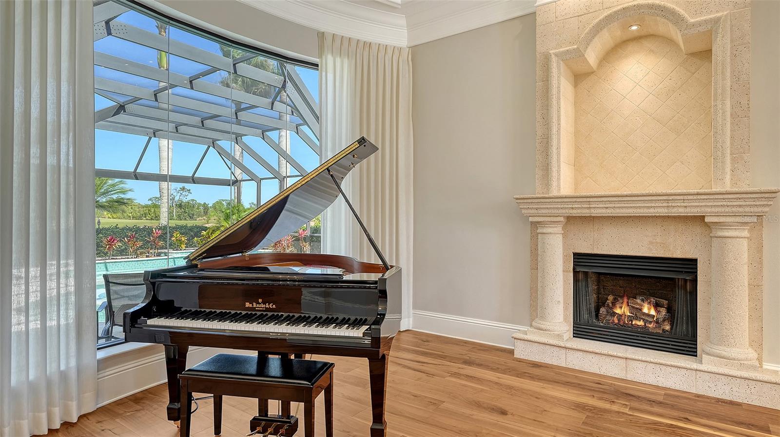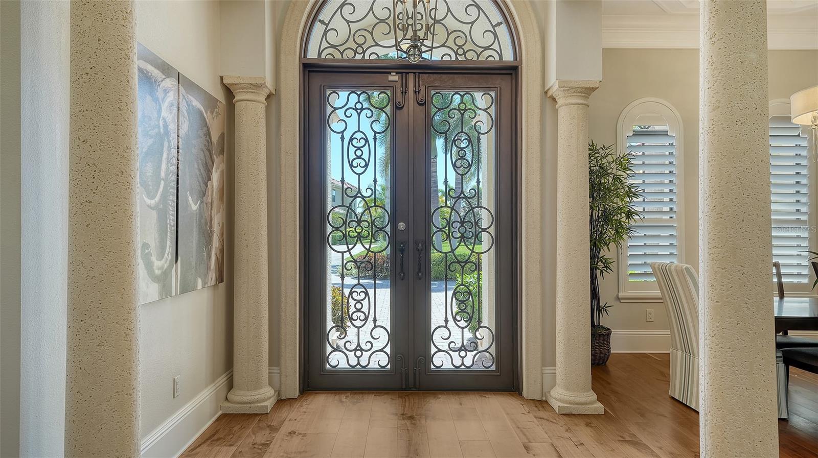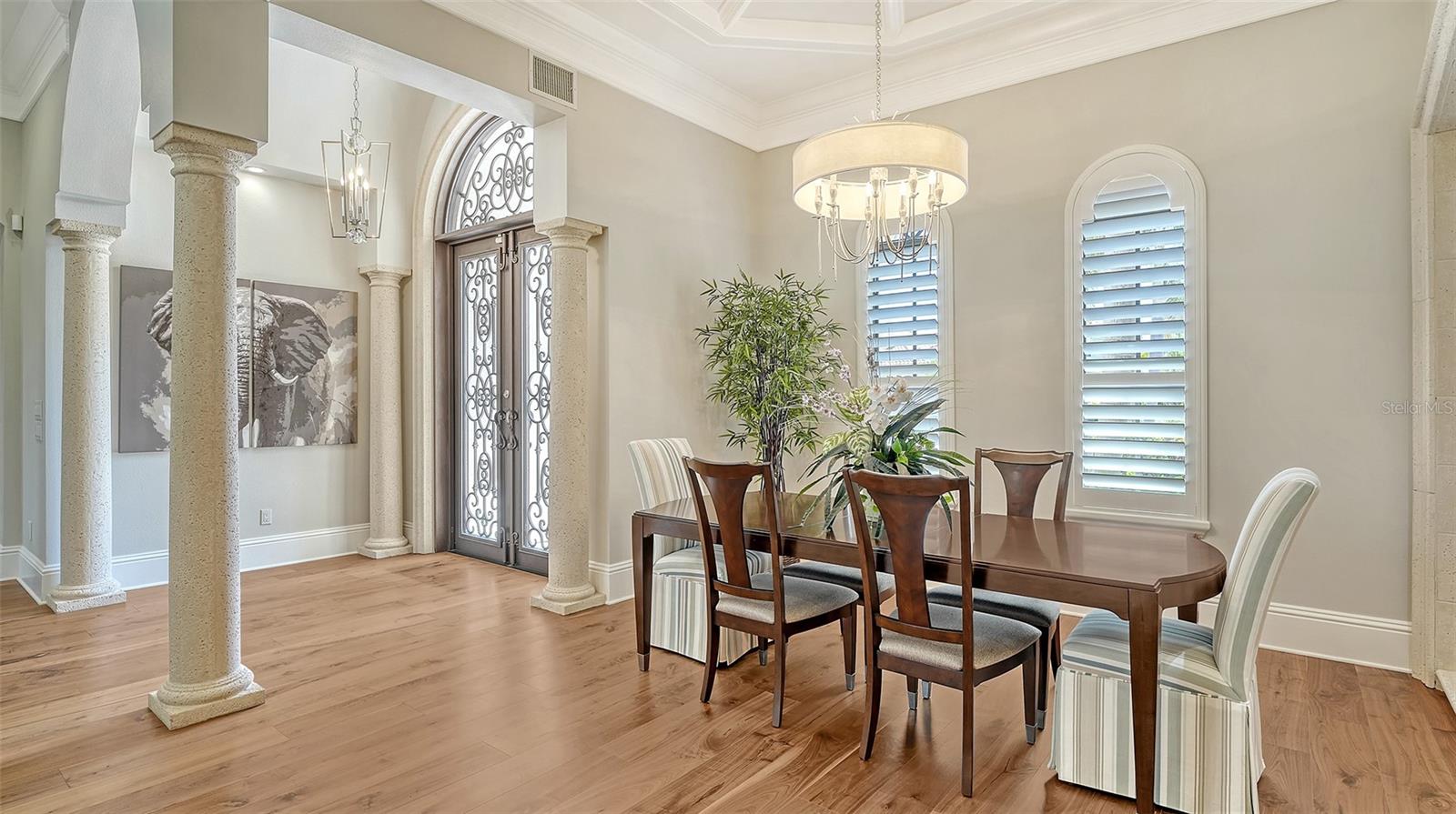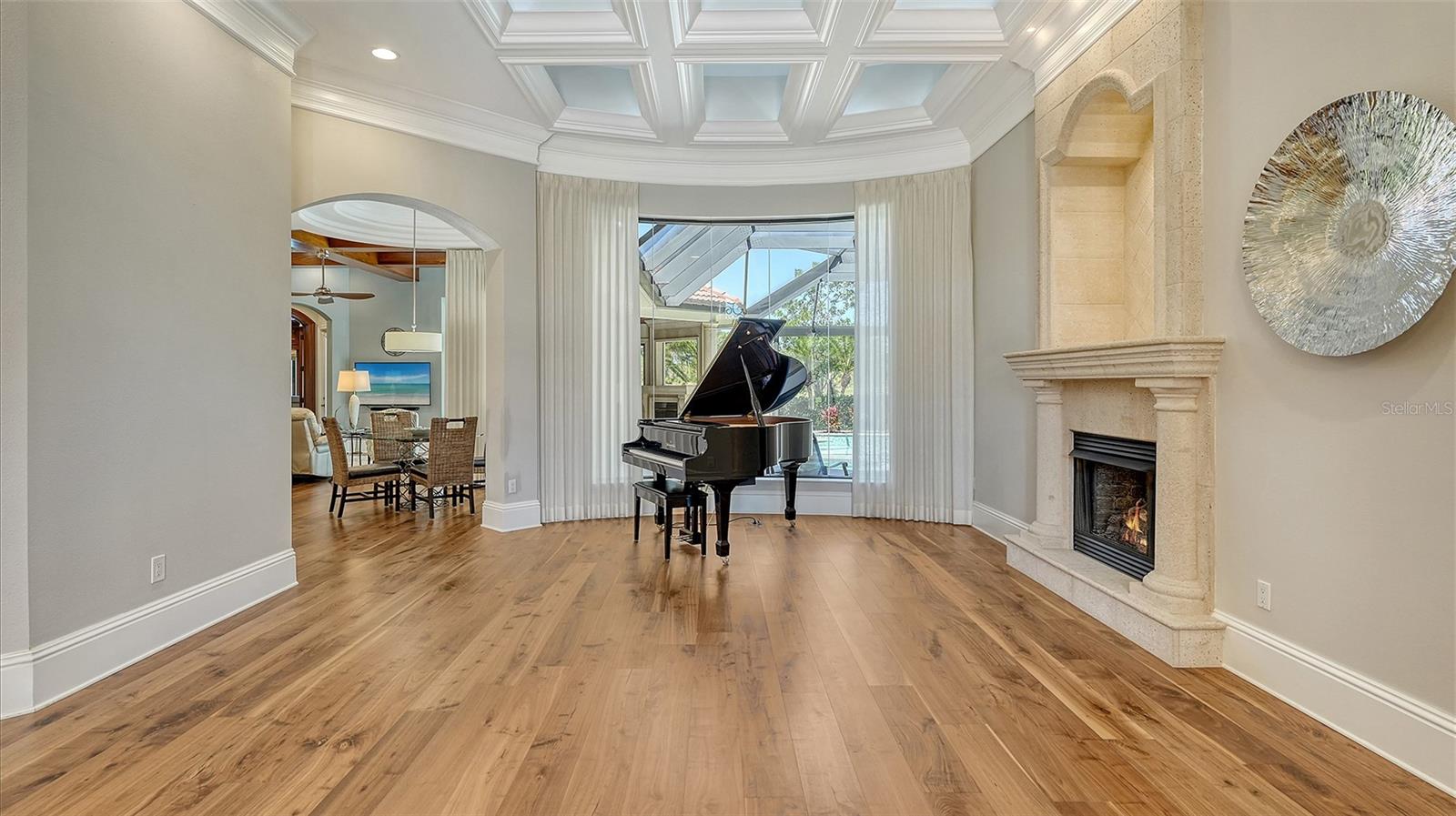 Unparalleled elegance and design on a stunning golf course setting! Perfectly positioned on one of Lakewood Ranch Country Club's premier homesites this tastefully updated Lee Wetherington home offers unobstructed lake and golf course views of the 14th fairway on the King's Dunes Course. Upon entering the massive iron and glass double doors you will notice the soaring coffered ceilings, beautiful aquarium windows framing picturesque views of the pool and golf course, warm walnut hardwood flooring throughout the main living areas, and elegant cast stone fireplace adorning the living room. The great room boasts high ceiling with wood timber beams and provides abundant space and natural light for hosting family and friends. Massive, disappearing sliding-glass, impact rated doors bring the outdoors in, providing open access to the amazing pool and outdoor entertaining spaces! Sharing this space is the large gourmet kitchen showcasing refinished cabinetry with under and over-cabinet lighting, a floating island, warm granite countertops, a discrete walk-in pantry, a GE Monogram gas 6 burner cooktop, a beverage cooler and a new oversized GE Monogram refrigerator. Beyond the great room you will find huge solid wood doors that lead to the state of the art, sound engineered movie theatre with remote blackout shades, wood paneling from floor to ceiling, plus an artful ceiling detail with custom lighting. The 3 incredibly sized additional guest bedrooms provide a quiet domain for family visits while ensuring privacy from the main house. The owner's suite boasts amazing views to the lanai, pool and golf course while disappearing sliding doors bring in an abundance light and beautiful Florida breezes. The primary suit also offers 2 spacious walk-in closets with custom built-ins, a spa-like bath, including dual vanities, a soaking tub and a walk-in shower, all recently renovated. A soothing garden shower brings in natural light and offers beauty and privacy for those thrilling outdoor showers.The enormous lanai displays design perfection complete with abundant space to relish the perfect outdoor setting. Travertine pavers adorn the entire lanai, and the glass enclosed outdoor entertaining space offers a fully equipped outdoor kitchen, with an ice maker, stainless steel Lynx gas grill, beverage refrigerator and sink. The refreshing saltwater pool and a spa are framed by the panoramic screening to enjoy the obstructed gorgeous golf course, lake and preserve views. This amazing home also features double 2-car garages with additional storage, 2 gas hot water heaters, and the added bonus of air-conditioning for one of the garages. ** This home is being sold with furnishings presented, as a convenience to the Seller at no added value, except the recliner in the movie theater. **Lakewood Ranch Country Club offers the ultimate Florida lifestyle with a private country club with 3 luxurious clubhouses, 4 golf courses, 18 Hard-Tru lighted tennis courts, pickleball courts, state of the art fitness center, aquatic center, parks, walking trails and so much more. Membership is optional and no waitlist. All within minutes of the UTC Mall, fabulous dining and shops, Lakewood Ranch Main Street, polo fields, Benderson Park, and the much-anticipated new home for Mote Marine Aquarium. Plus, don't forget you're only a short drive to the world's top-rated beaches! This is truly luxury at its finest, schedule your private showing today.