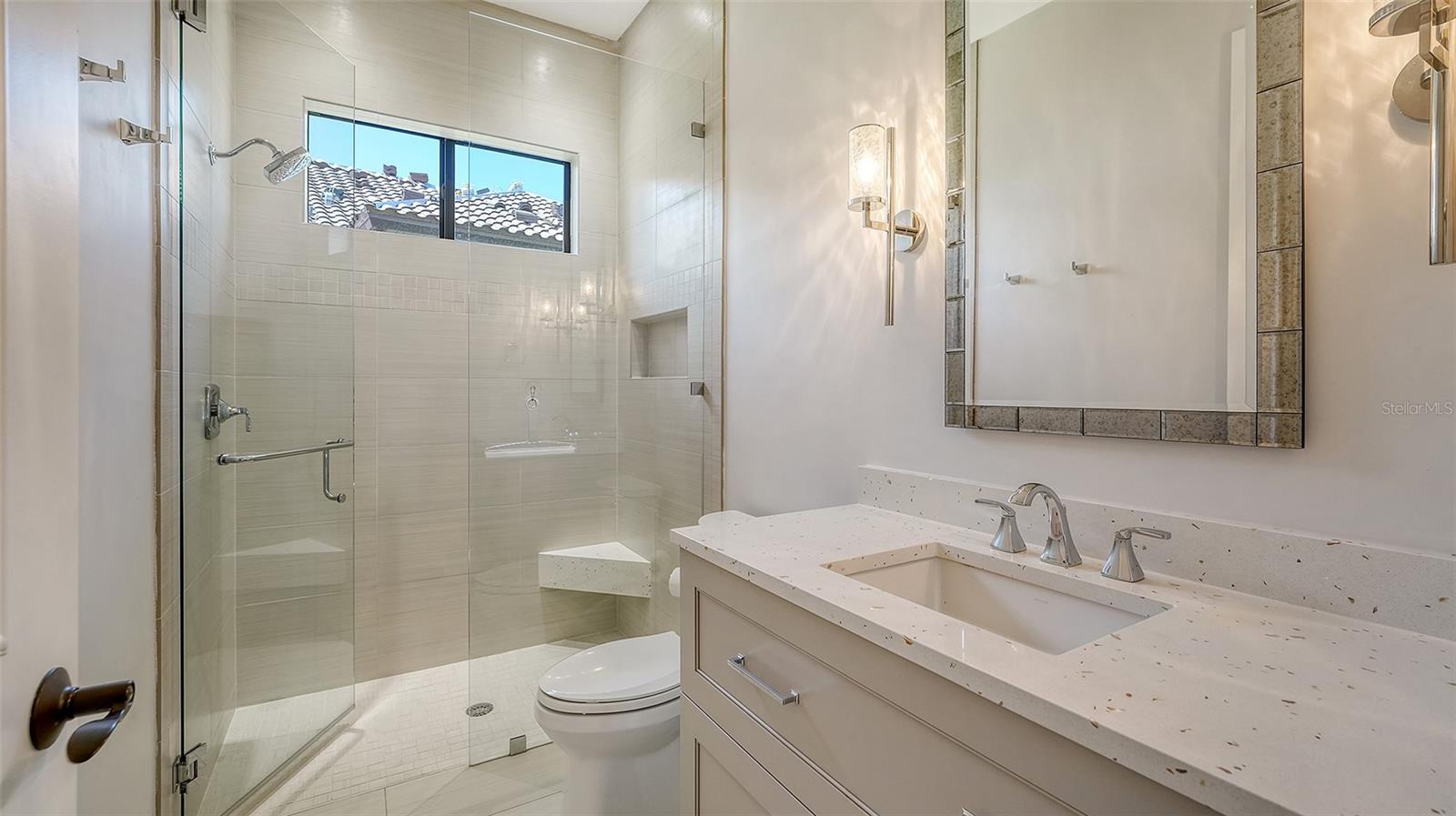 - Exterior: Irrigation System, Lighting, Outdoor Grill, Outdoor Kitchen, Outdoor Shower, Rain Gutters, Sliding Doors