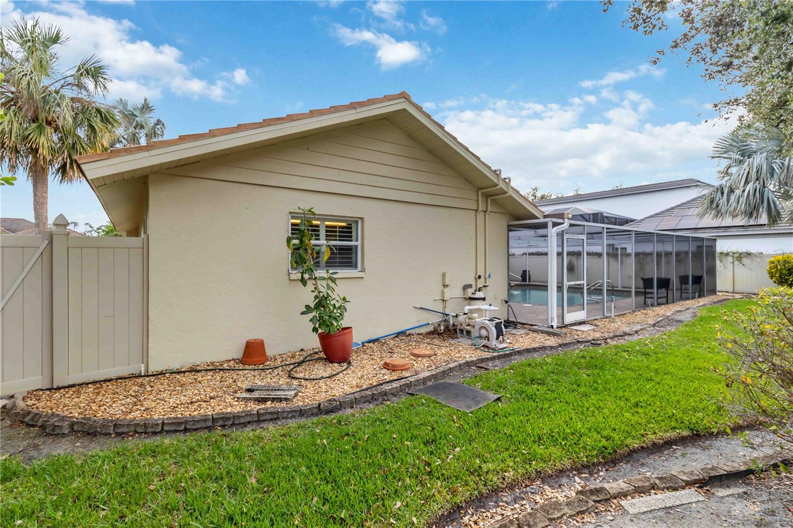 - Exterior: Hurricane Shutters, Irrigation System, Lighting, Outdoor Grill, Outdoor Kitchen, Outdoor Shower, Private Mailbox, Rain Barrel/Cistern(s), Rain Gutters, Shade Shutter(s), Sidewalk, Sliding Doors, Tennis Court(s)