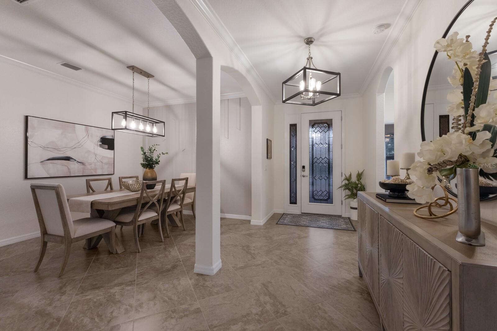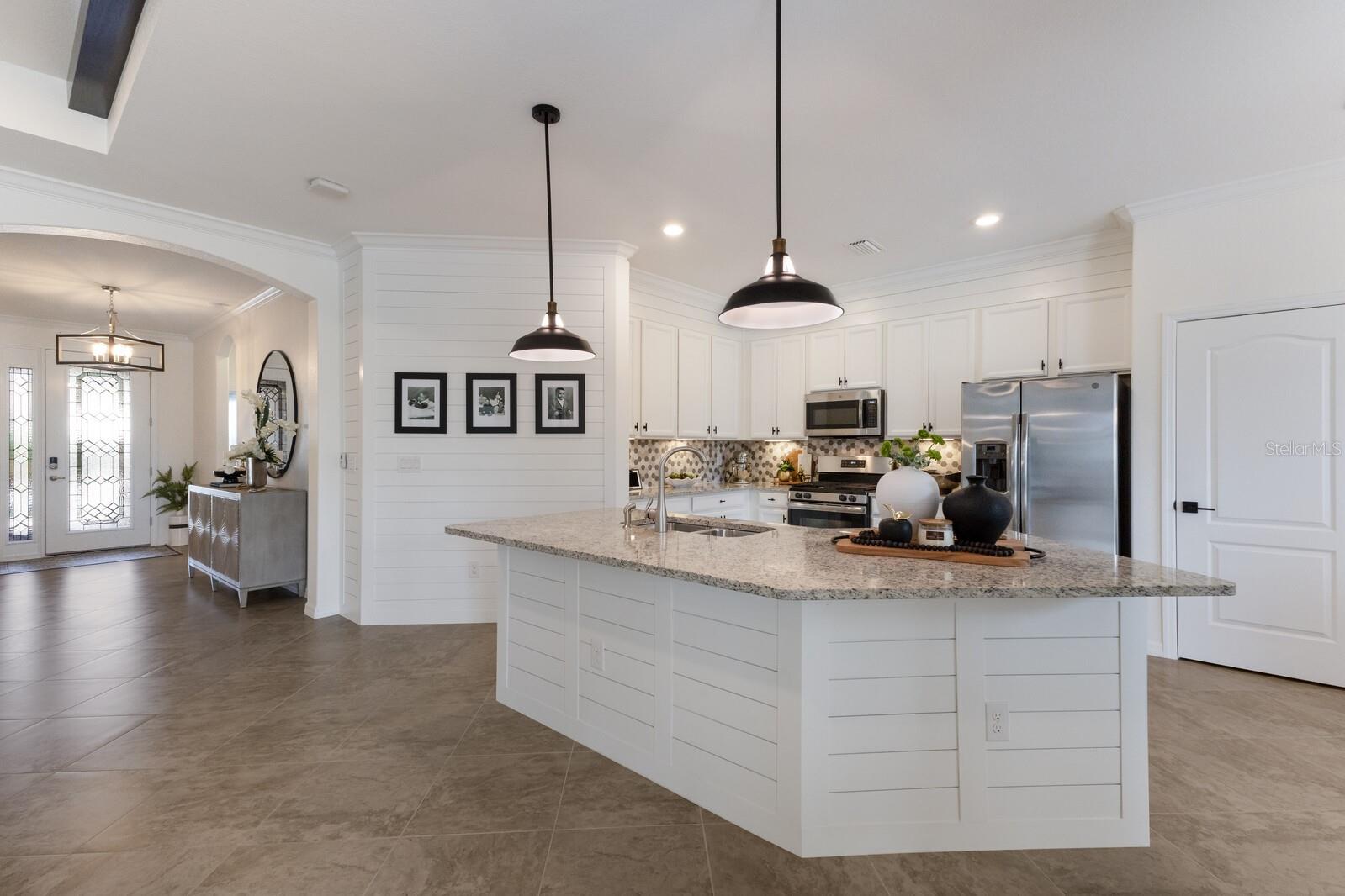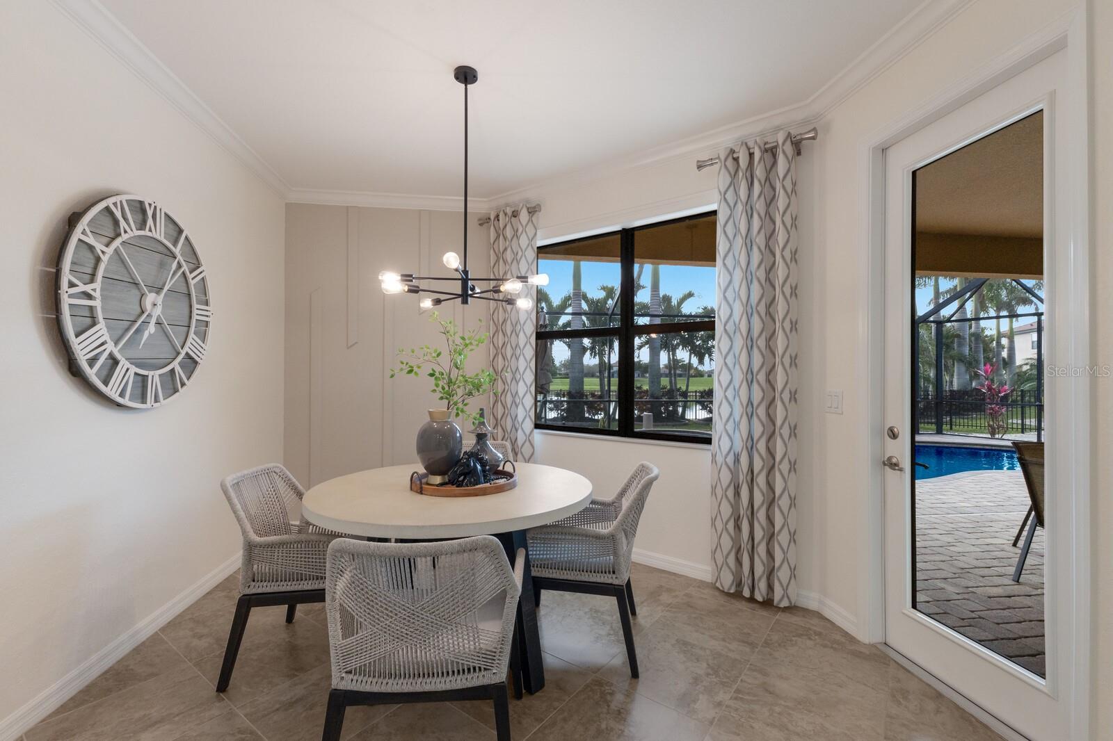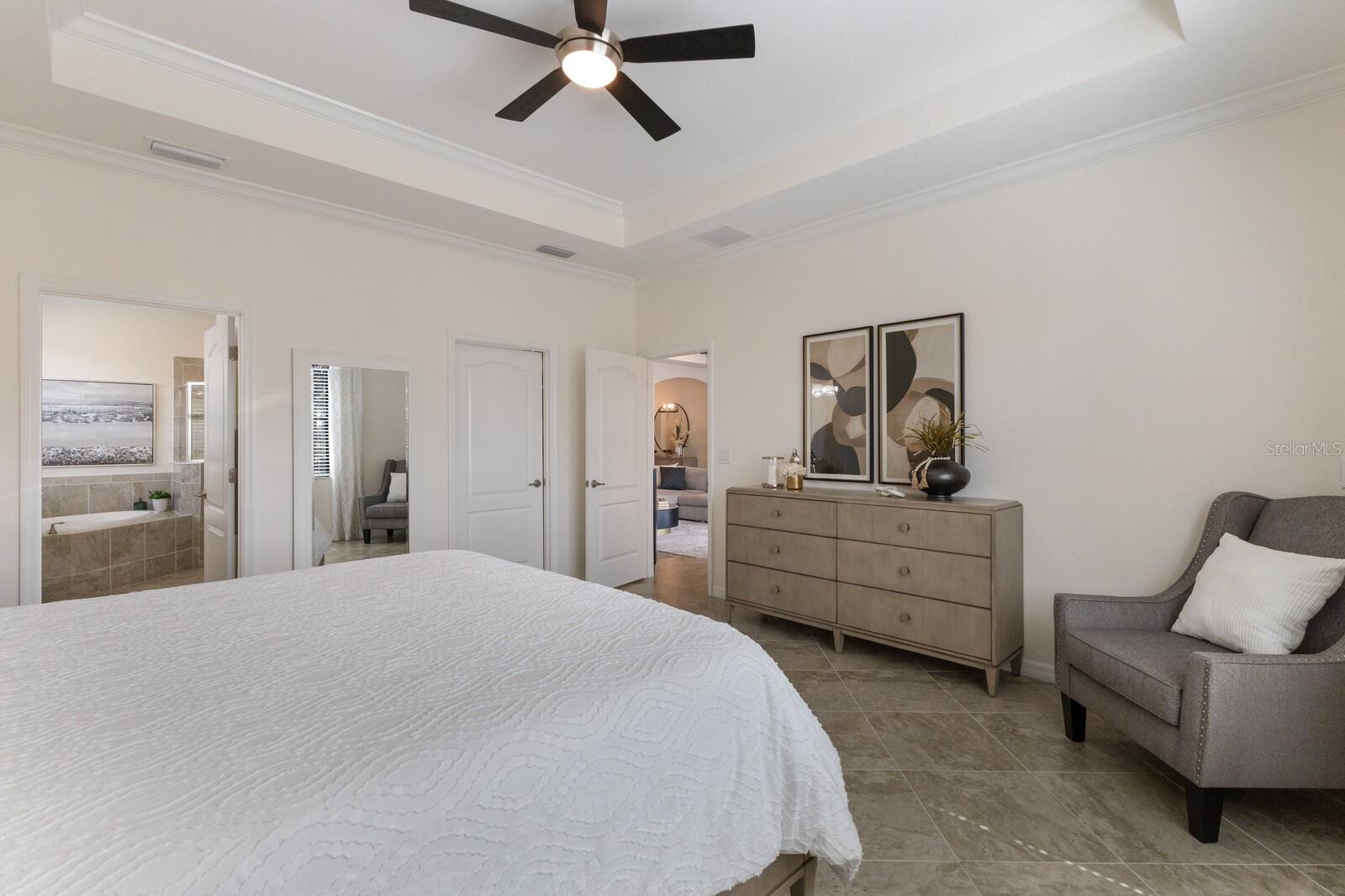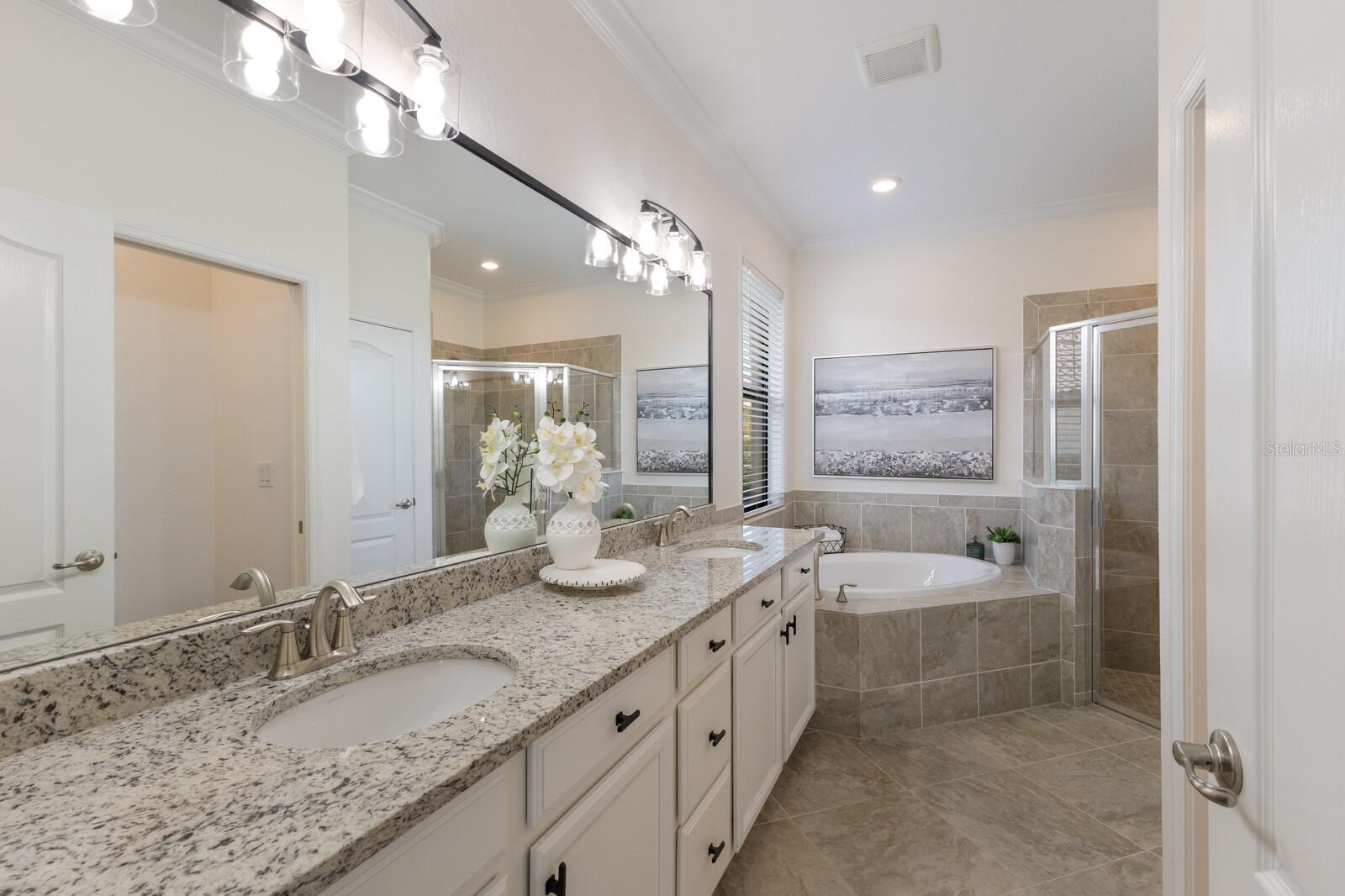 Absolutely STUNNING and FULLY FURNISHED!!! This 4 bedroom, 2 bath, 3 car garage POOL home by Lennar is nestled in the highly sought after community of Savanna in Lakewood Ranch!! This BEAUTIFUL home offers an open floor plan filled with upgrades and CUSTOM details throughout. As you step inside, you are greeted by elegant archways leading into the dining room, creating a warm and inviting ambiance. The kitchen is a chef's dream, featuring wood cabinetry with UPGRATED molding, a stylish tile backsplash, granite countertops, stainless steel appliances, and shiplap decorative wood accents. A large island with eat in space seamlessly flows into the spacious living room, where wood beams highlight the tray ceiling, and a decorative electric fireplace entertainment center provides the perfect setting for cozy movie nights. Large sliding doors open to the expansive lanai, offering breathtaking views of the pool and lake. The LUXURIOUS master bedroom features a tray ceiling, a walk in closet, and an ensuite bath complete with dual sinks, a garden tub, and a walk in tiled glass shower. For added privacy, three additional bedrooms are situated on the opposite side of the home, sharing a full bath with a tub/shower combo. The laundry room offers custom cabinetry and a sink for extra storage and convenience. Throughout the home, you'll find large tile flooring, tray ceilings, and ELEGANT crown molding. Step outside to your private outdoor oasis, where a screened in lanai with pavers surrounds a heated, saltwater pool and spa. The MODERN outdoor kitchen, complete with an electric cooktop, hood, and bar fridge, makes entertaining effortless. Enjoy serene lake views and stunning sunsets from your beautifully landscaped backyard, which features massive palm trees, rock borders, and an EXTENDED fenced in paver patio, which is perfect for children and pets to play safely. This home is a true gem in one of Lakewood Ranch's most desirable communities. Savanna offers LOW HOA resort-style amenities such as a clubhouse, swimming pool, state-of-the-art fitness center, basketball courts, playground, dog park and numerous walking paths. Lakewood Ranch is known for their A+ rated school system and is perfectly located just a short ride to downtown Sarasota, St. Pete, world class shopping, fine dining and the FAMOUS Gulf beaches! Don't wait to make this your home and begin your FLORIDA Lifestyle!