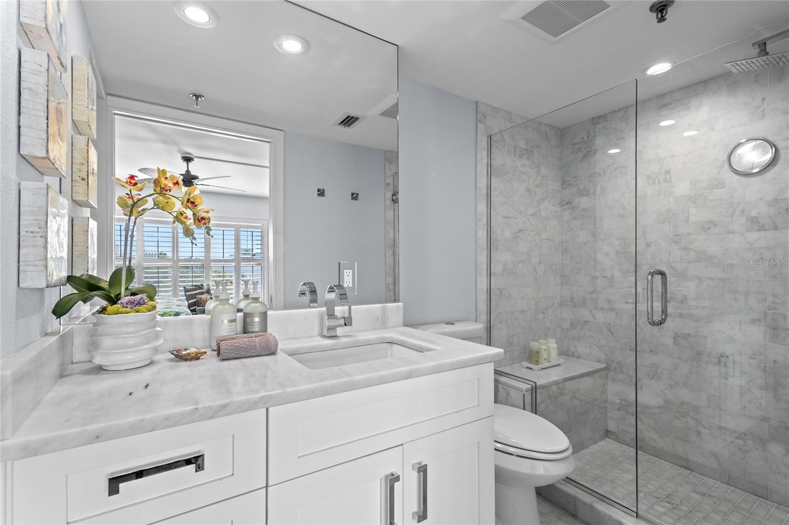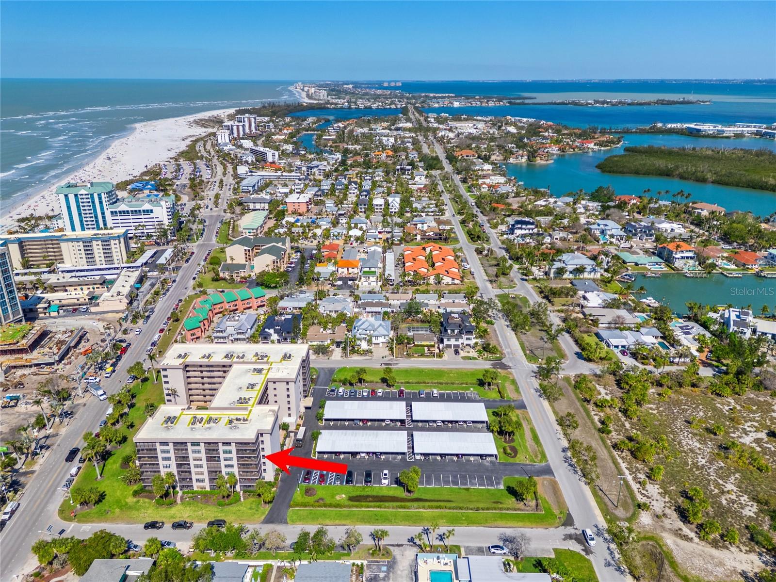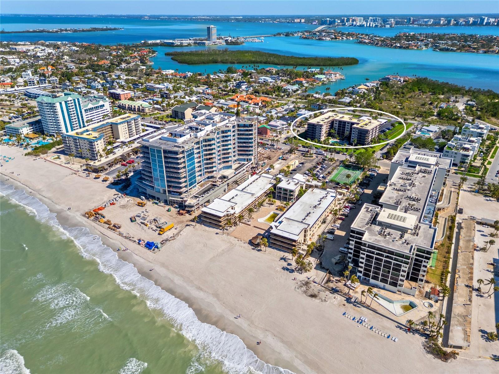You will fall in love from the moment you enter this stunning updated 5th-floor residence located at the well maintained Lido Towers on Lido Key. With private beach access to the beautiful Lido Beach, this unit has it all! Gorgeous renovated kitchen with wood cabinets, custom pull outs, soft close doors and drawers, granite countertops, the prettiest tiled backsplash, fabulous lighting that adds to the ambiance with under cabinet lighting, indirect lighting, and recessed lighting on adjustable dimmers, ceiling fan, large pantry, and a Culligan filtered water system. Relax on the private wrap around balcony that has wonderful views of the preserve and the downtown city lights. This open plan is light and bright. The luxurious master en-suite boasts a custom walk-in closet, updated vanity with marble counter top, marble shower with glass door, and marble flooring. You will appreciate all of the attention that was given to the details with the engineered wood flooring, plantation shutters through out, impact rated-windows and sliding glass doors, new screen door, plus the HVAC system had a UV light added in 2022. The guest bedroom en-suite has a walk-in custom closet and it's own entrance into the guest bathroom for privacy. Your guest will enjoy the exquisite finishes of the marble top vanity, marble glass enclosed shower, and marble flooring. This unit includes a covered parking space, plenty of guest parking, a storage closet, and community amenities consist of a large heated pool, nice sized hot tub, sauna, grills by the pool, and a club room that has a kitchen and plenty of tables and seating which is perfect for a party. Laundry facilities are located on each floor and includes a laundry sink. Owners are allowed one-month minimum rental twelve times a year. All milestone inspections are complete. Conveniently located to Ted Sparling Park, St. Armand's Circle which has a variety of restaurants and shops, golf courses, and downtown Sarasota.